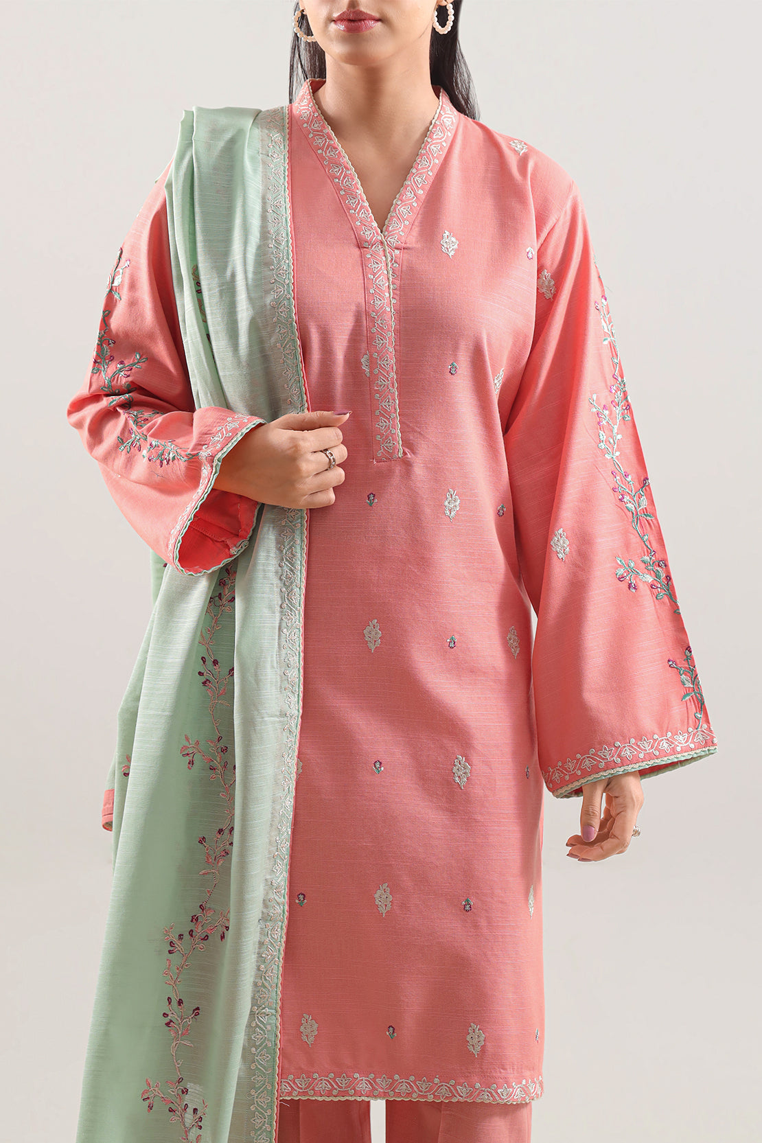 Enhance your wardrobe with this Solid Embroidered Cotton Viscose Stitched 3-Piece ensemble. Designed for elegance and comfort, this premium cotton-viscose outfit features delicate embroidery, ensuring a graceful look for any occasion. The soft, breathable fabric offers effortless wear, making it a must-have for your seasonal collection.