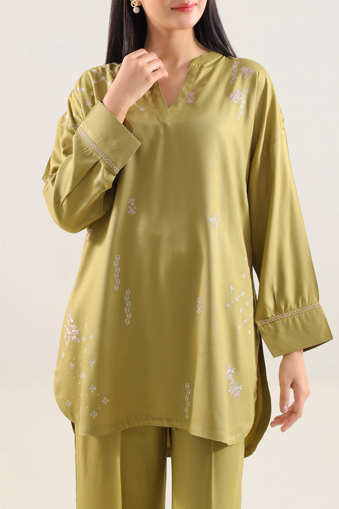 Solid Embroidered Dobby Crepe Stitched 2 Piece (Shirt/Trouser)