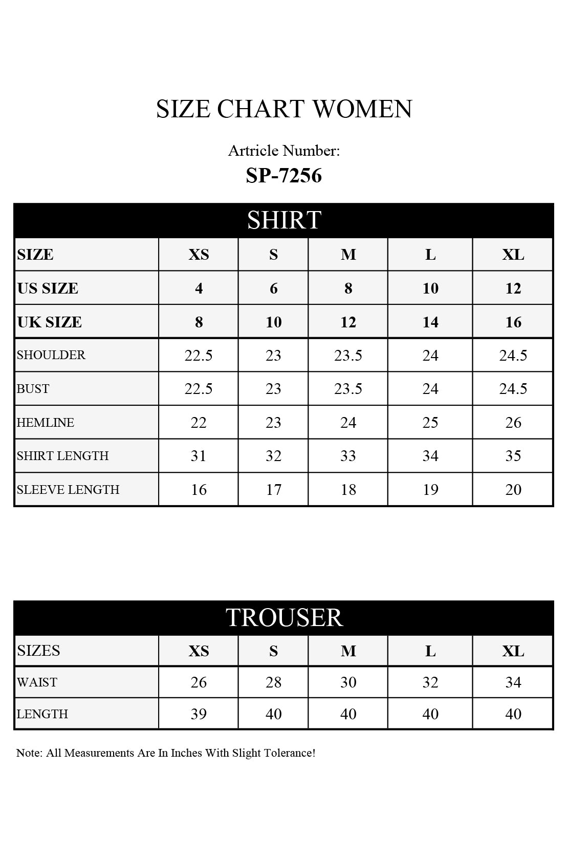 | Shirt Length | 0.5 | 44 | 44 | 45 | 45 | 46 |