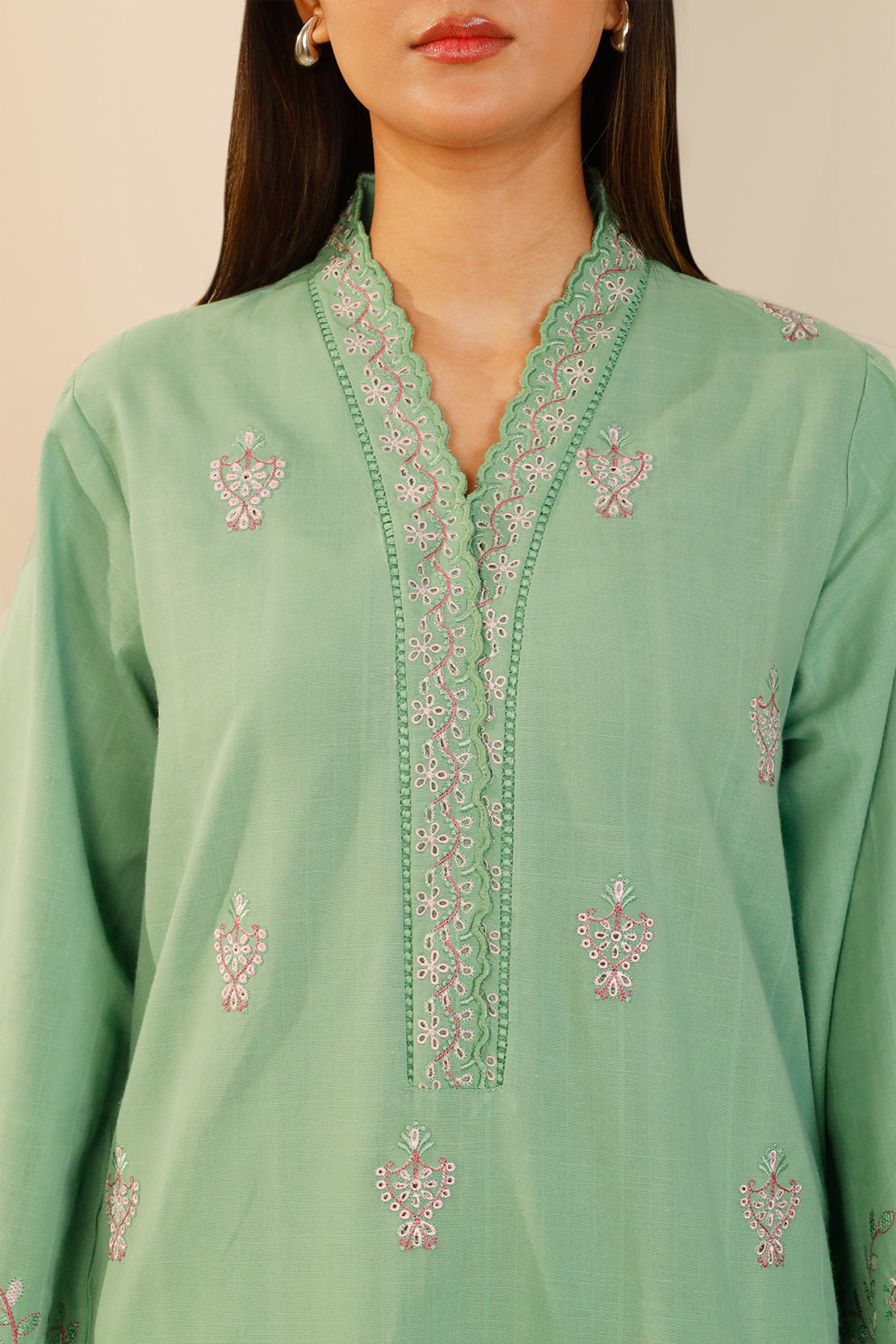 Ready To Wear Embroidered Slub Cotton Stitched Shirt