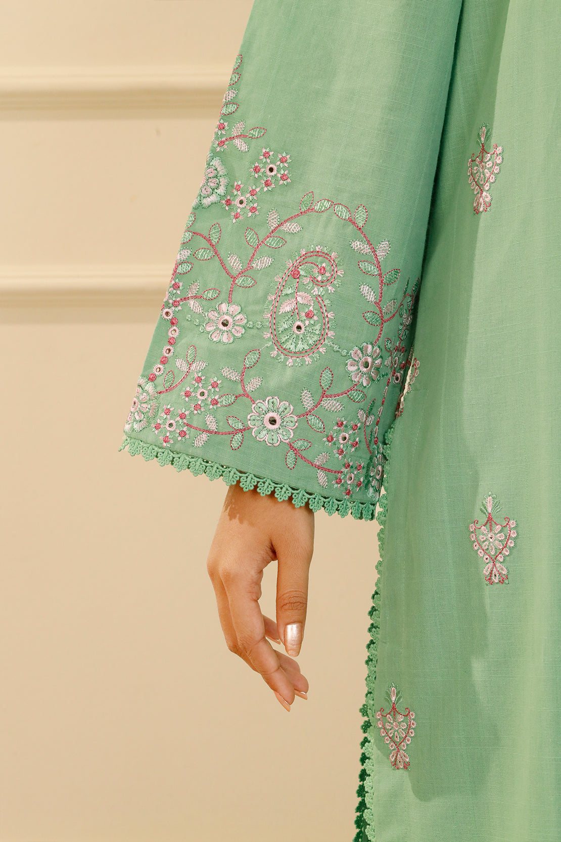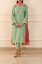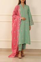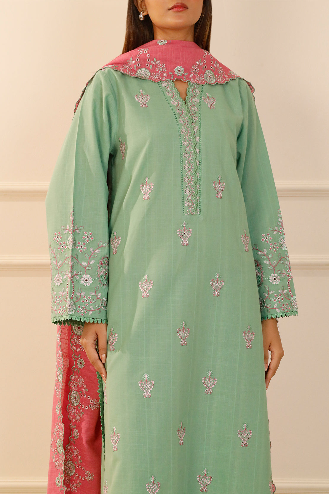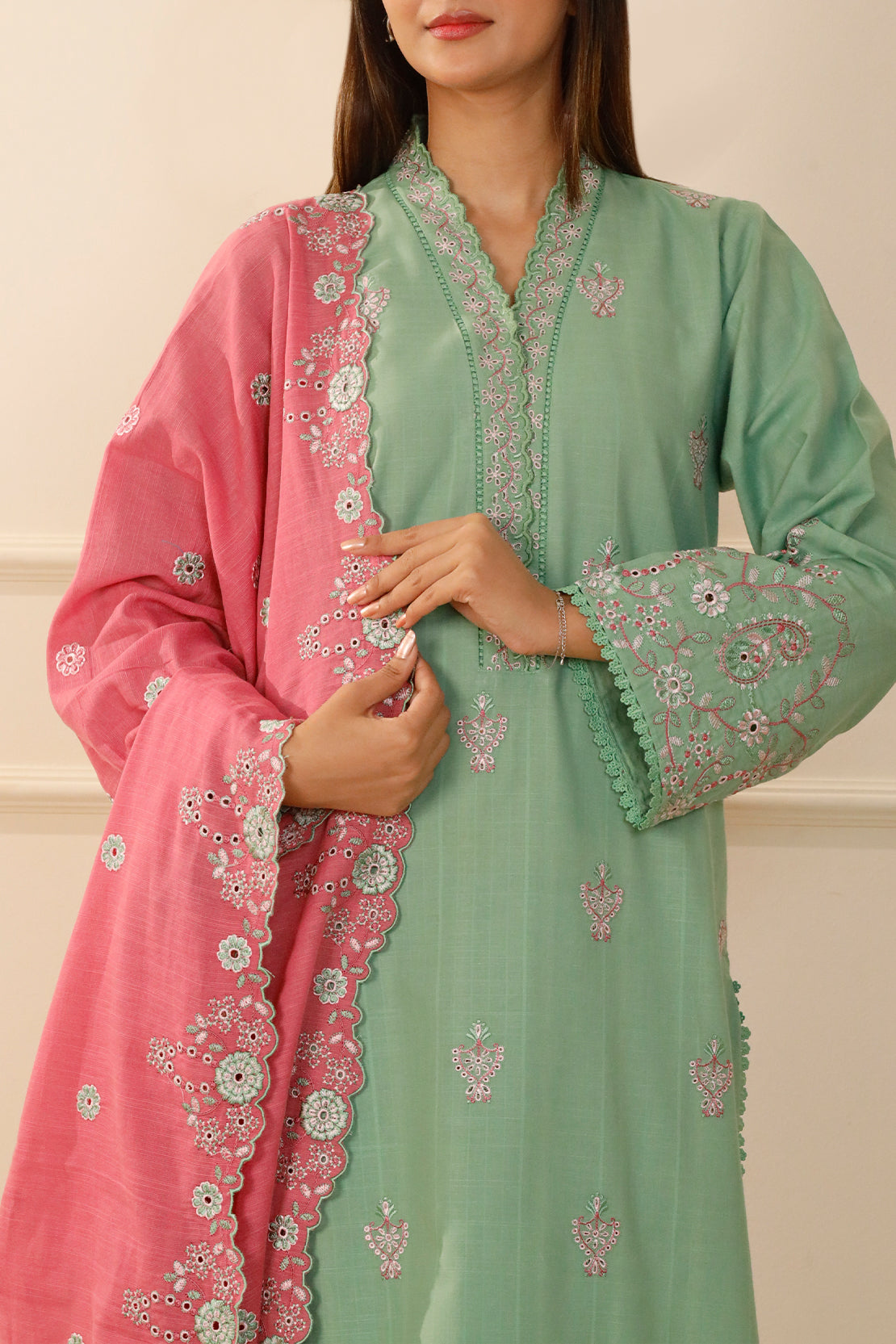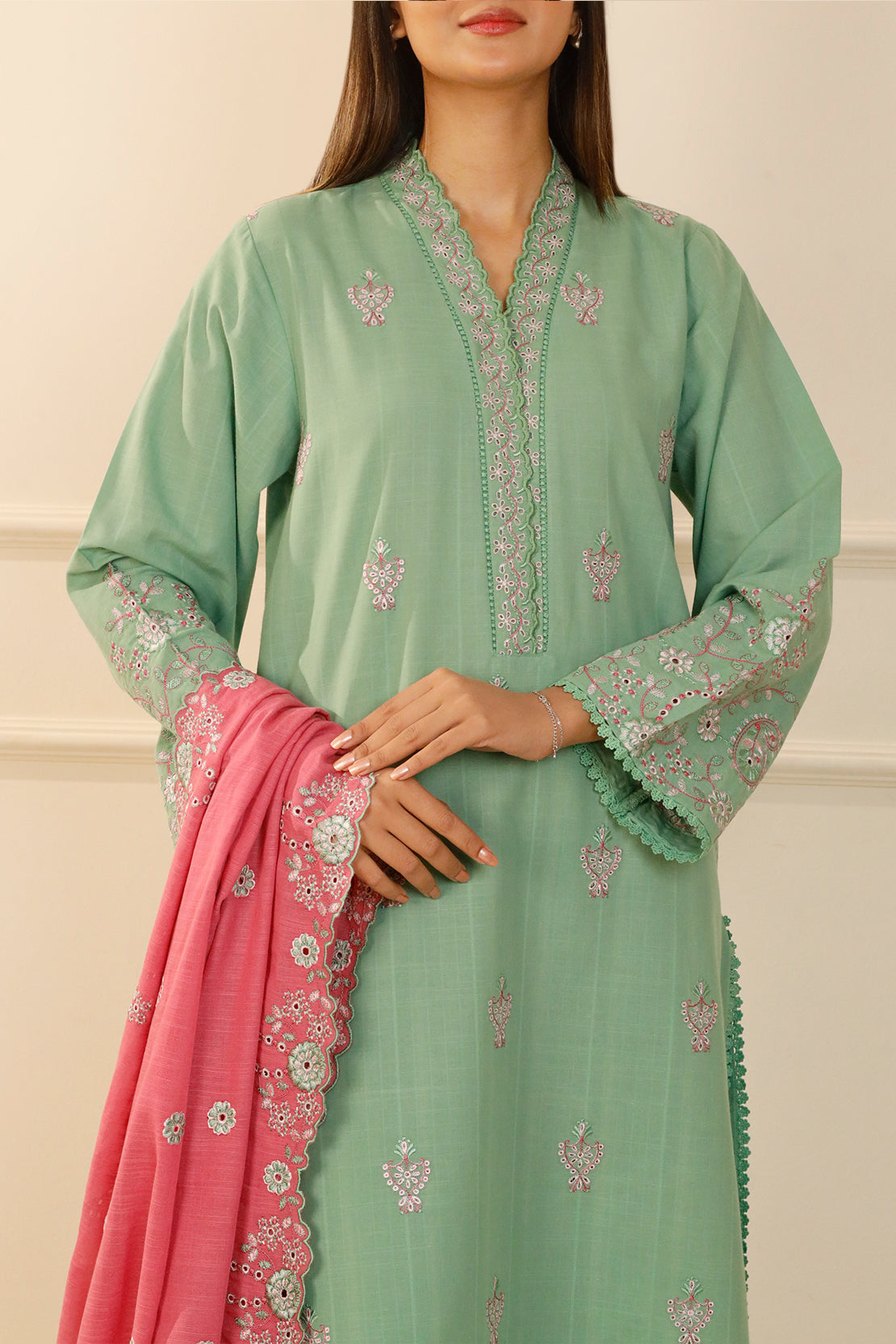 Solid Embroidered Slub Cotton Stitched 3 Piece
