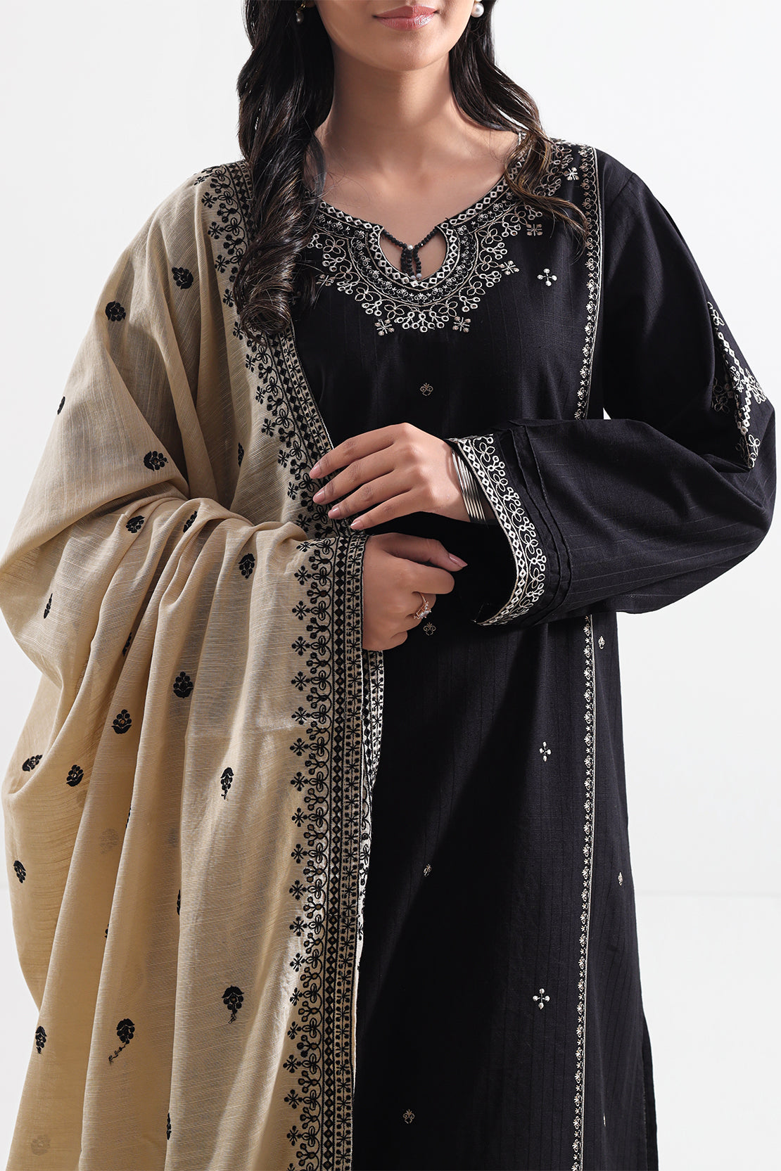 Step Into Timeless Elegance With This Solid Embroidered Slub Cotton Stitched 3-Piece By SAYA, Designed For Both Style And Comfort. The Outfit Features A Gracefully Embroidered Slub Cotton Shirt That Combines Delicate Detailing With A Modern Silhouette. A Coordinated Winter Cotton Dupatta Adds A Layer Of Sophistication, While The Matching Dyed Stitched Trouser Ensures A Flawless Finish. Perfect For Semi-Formal Events, Daytime Gatherings, Or Festive Occasions, This Ready-To-Wear Set Offers Effortless Grace And Versatility.