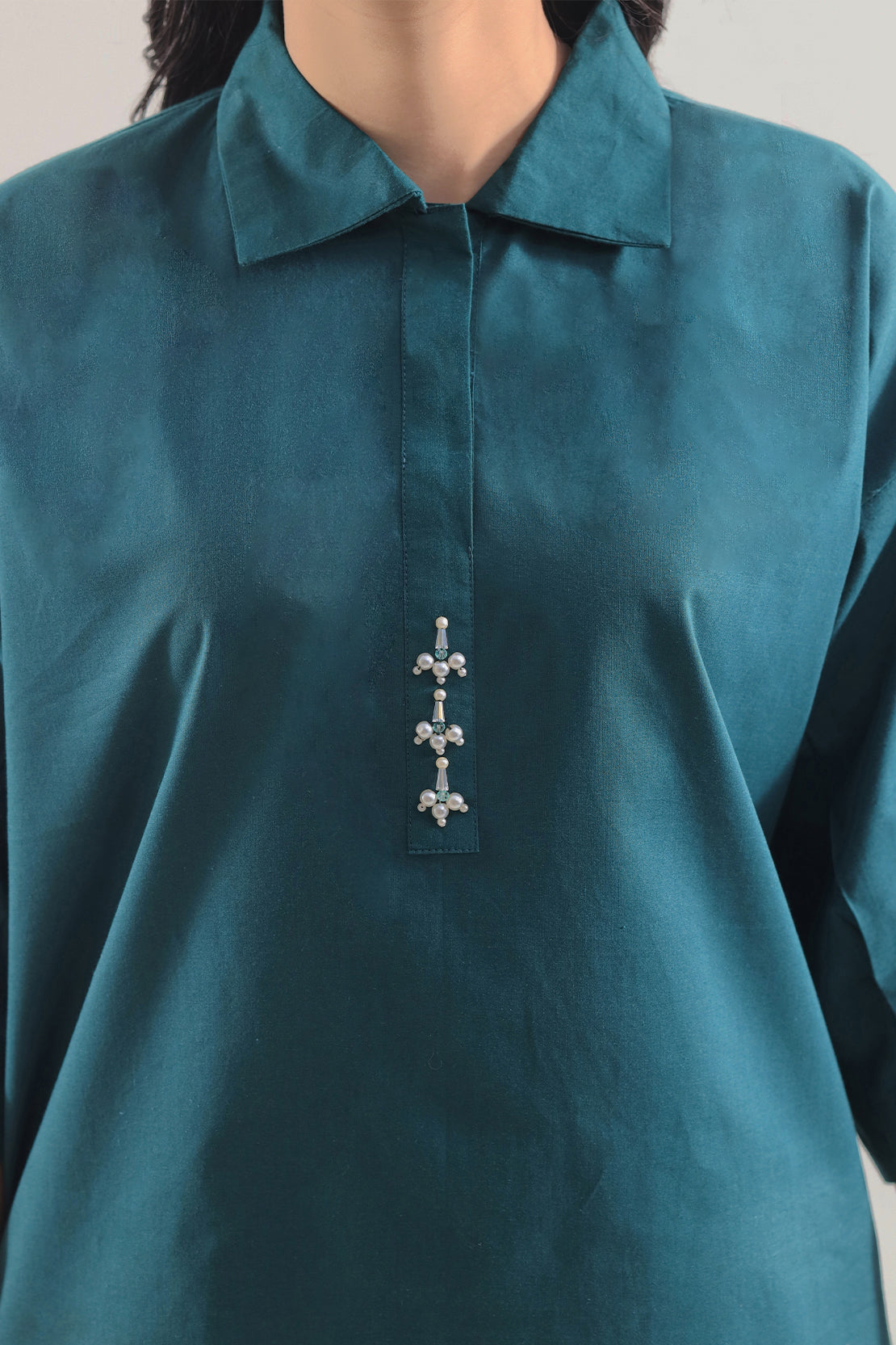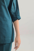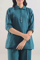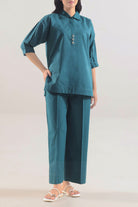 Solid Poplin Stitched 2-Piece By SAYA Shines In A Clean Sea Green Tone. Crafted From Crisp Poplin Fabric That Resists Wrinkles Yet Feels Soft Against The Skin, The Ready-To-Wear Shirt Features Precise Stitching, A Sharp Collar, And A Sleek Silhouette. The Matching Trouser Offers Structure And Ease Of Movement. Ideal For Office Affairs, Daytime Meetings, Or Smart Casual Looks — This Ensemble Merges Practicality, Elegance, And Minimal Effort.
