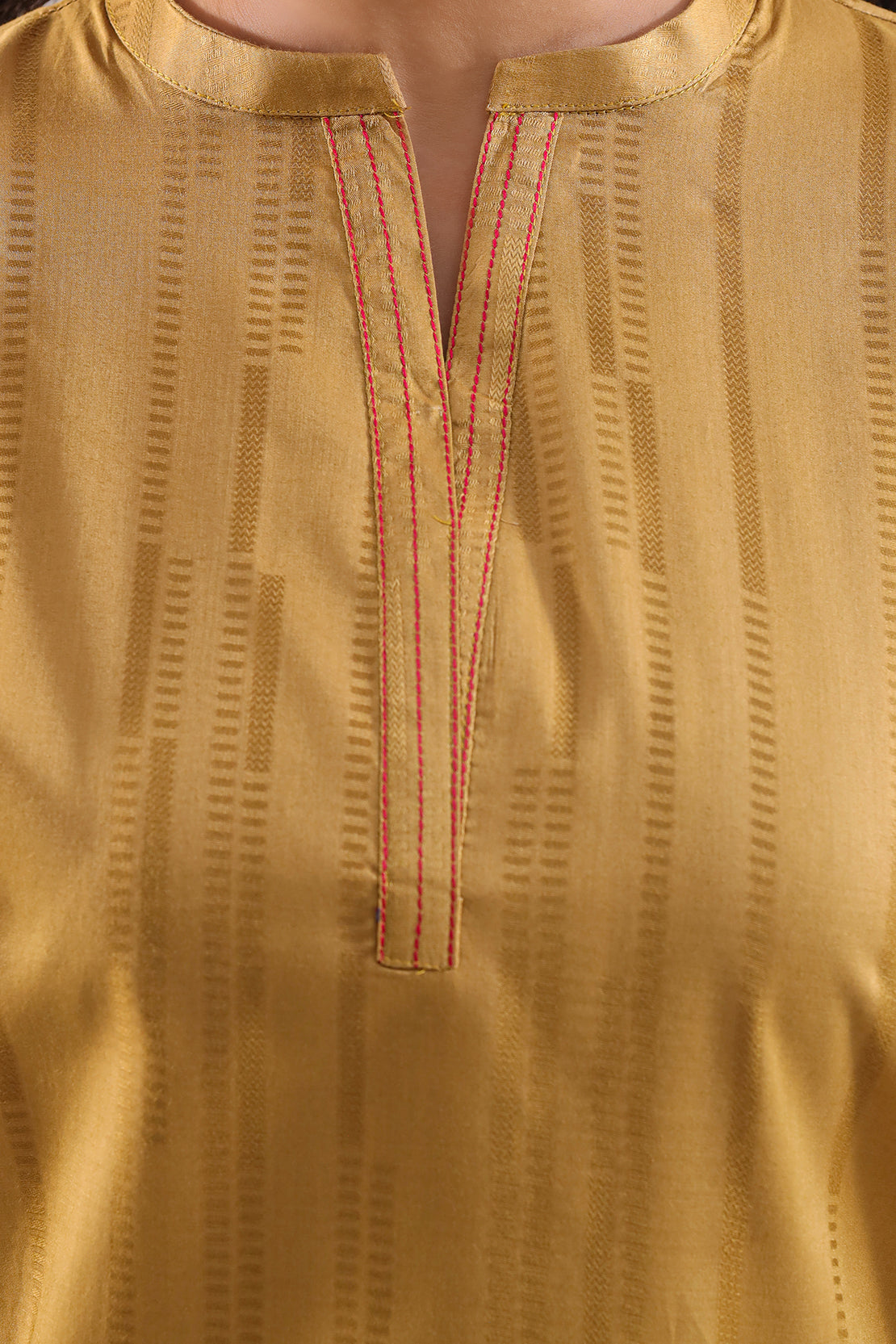 Elevate Your Wardrobe With The Stitched Self Jacquard 2-Piece Set By Saya Featuring A Shirt And Trouser Seamlessly Tailored For Modern Comfort. Crafted From Premium Self-Jacquard Fabric, The Texture Offers Understated Elegance With A Subtle Woven Pattern. The Ready-To-Wear Shirt Delivers A Polished Silhouette, Pairing Beautifully With A Coordinated Trouser That Balances Structure And Breathability. Perfect For Smart Casual Wear, Semi-Formal Events, Or Polished Daytime Styling, This Ensemble Offers A Refined Look That Marries Comfort With Contemporary Grace.