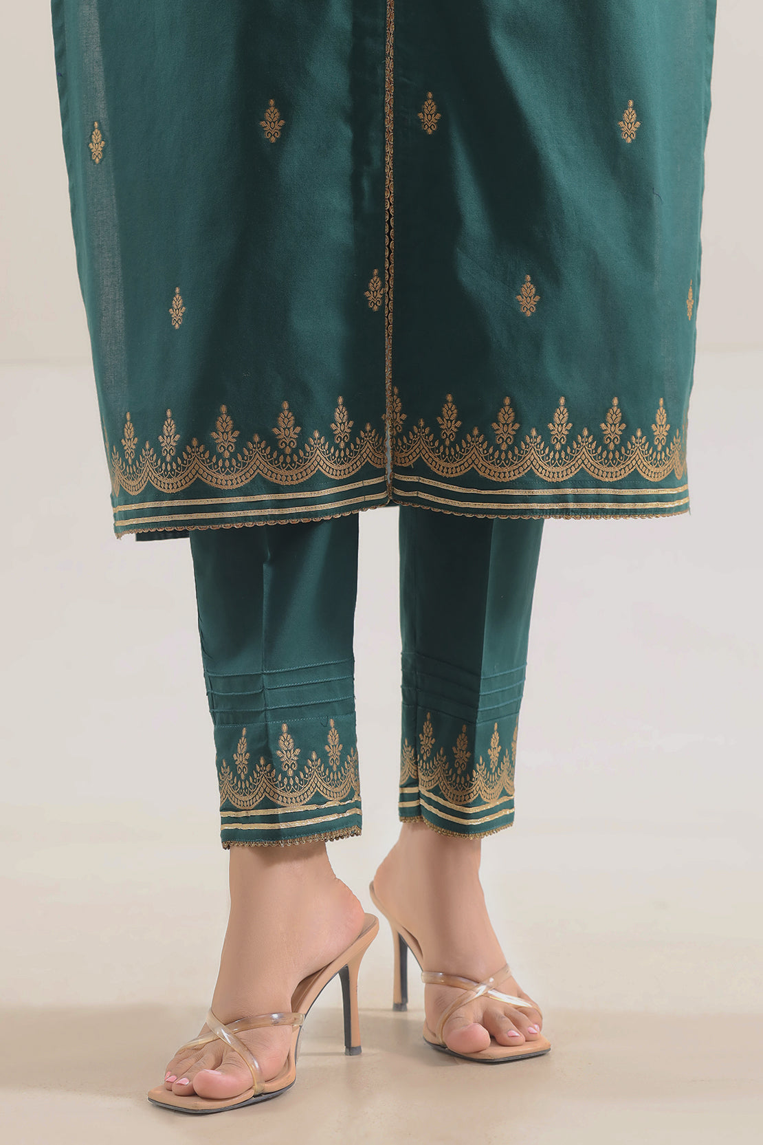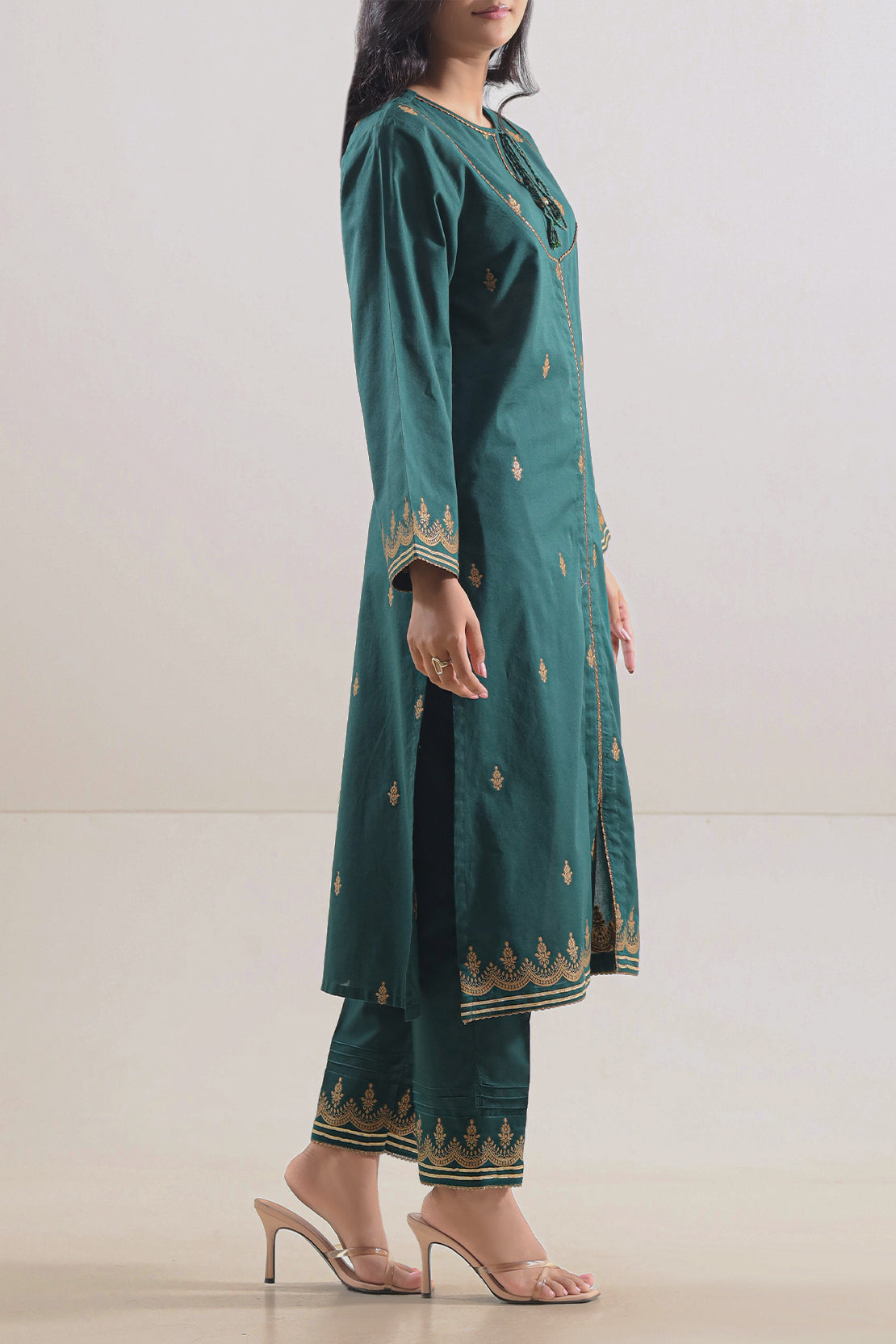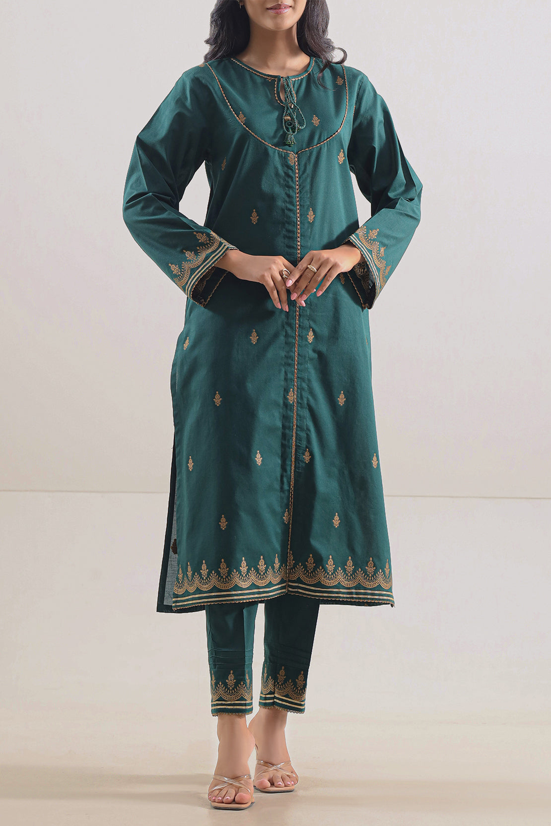 Solid Embroidered Cotton Stitched 2 Piece (Shirt/Trouser)