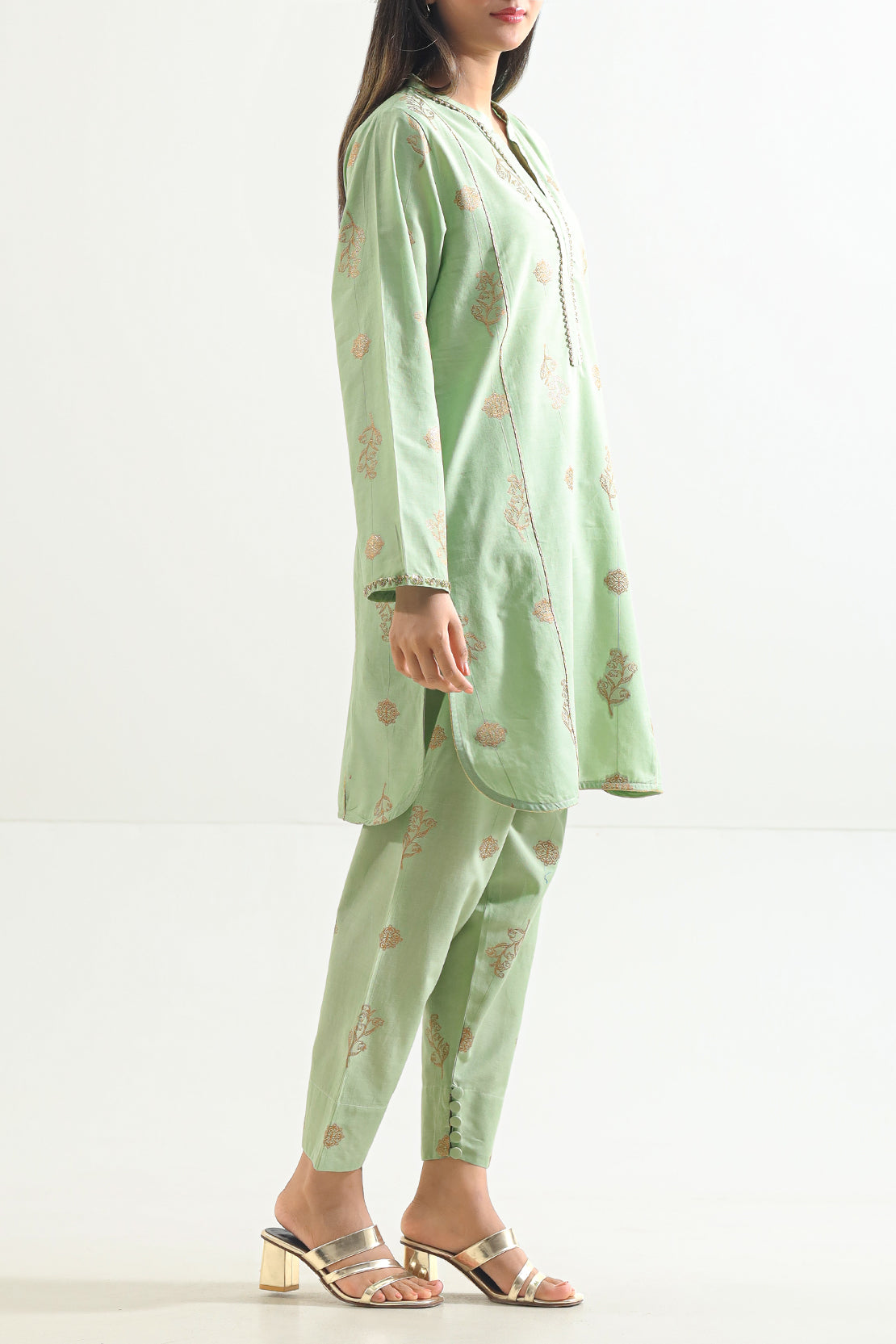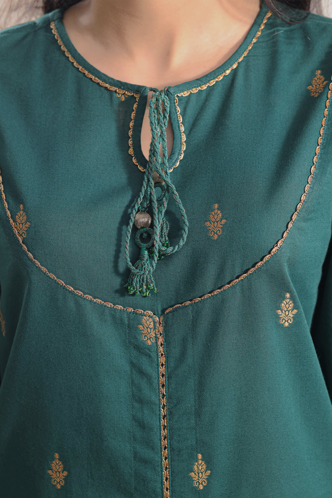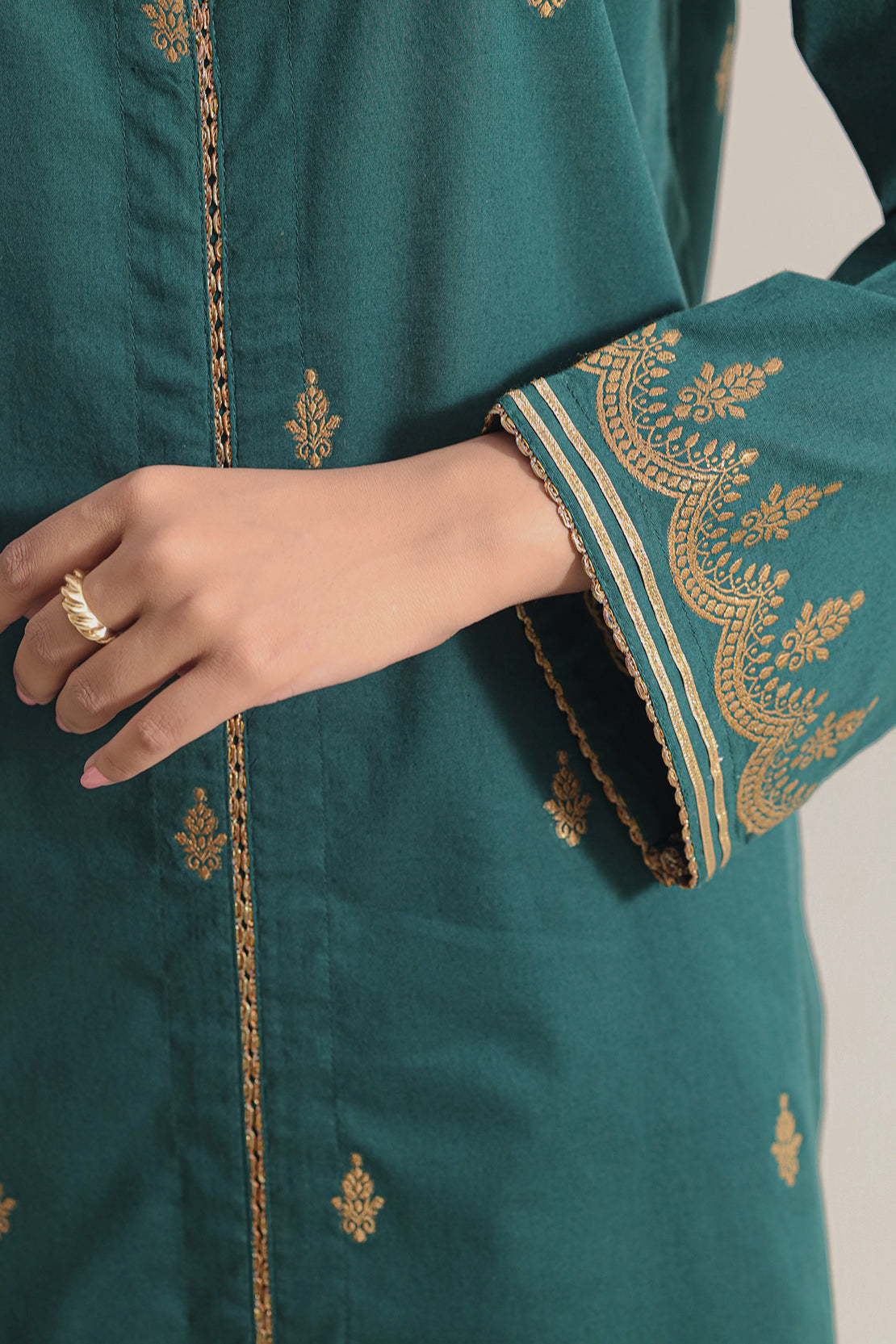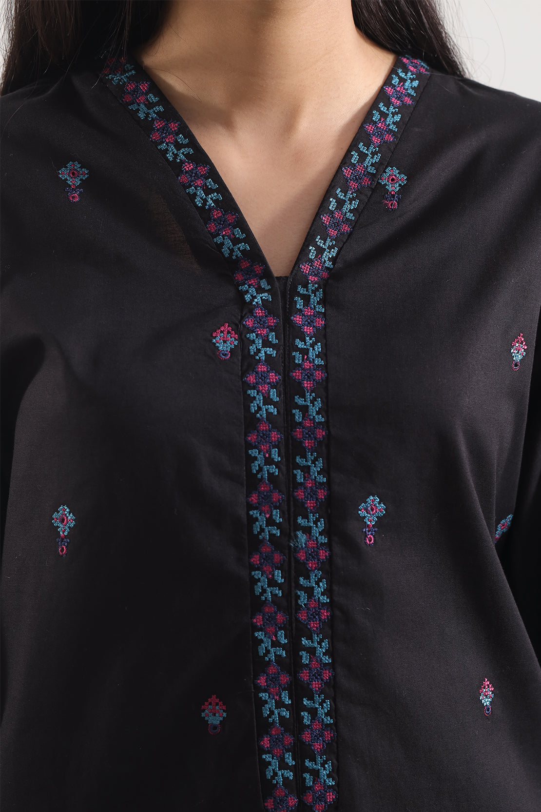 Solid Embroidered Cotton Stitched 2 Piece (Shirt/Trouser)