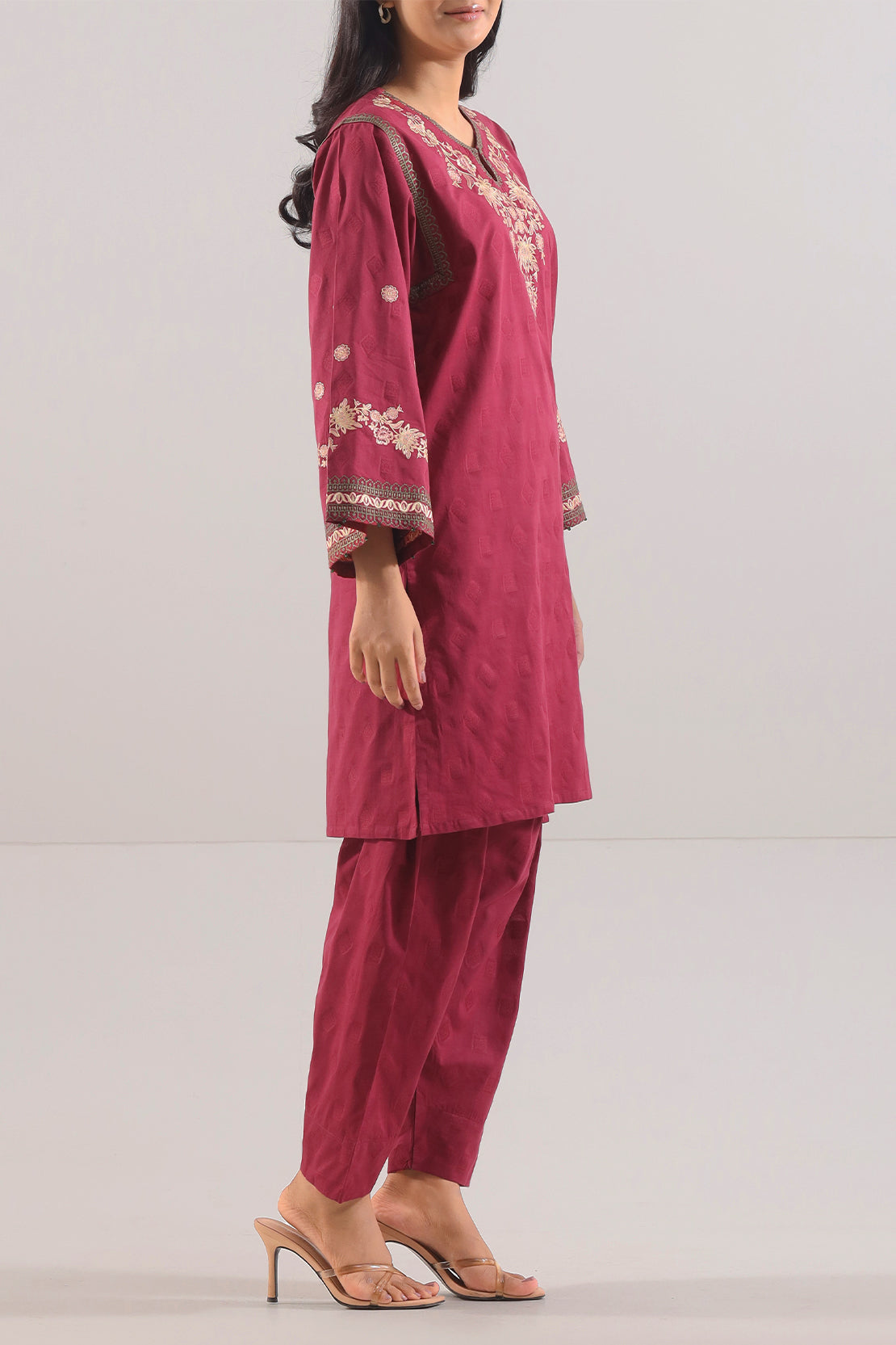 Embroidered Cotton Jacquard Stitched 2 Piece (Shirt/Trouser)