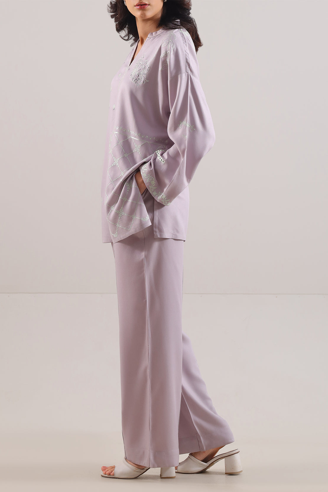 Solid Embroidered Acrylic Stitched Shirt/Trouser 2 Piece