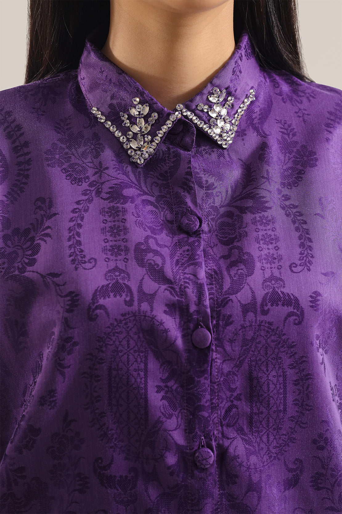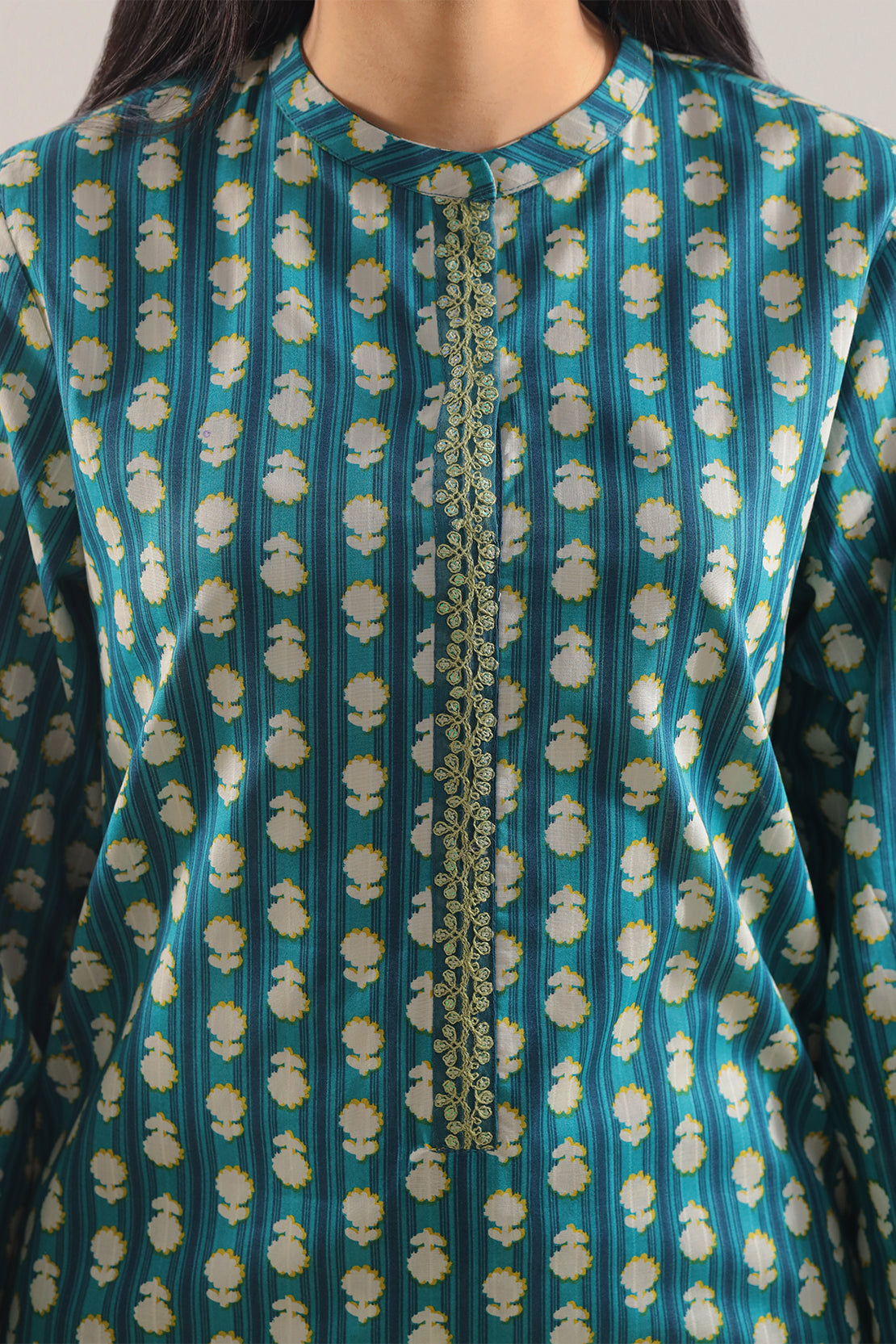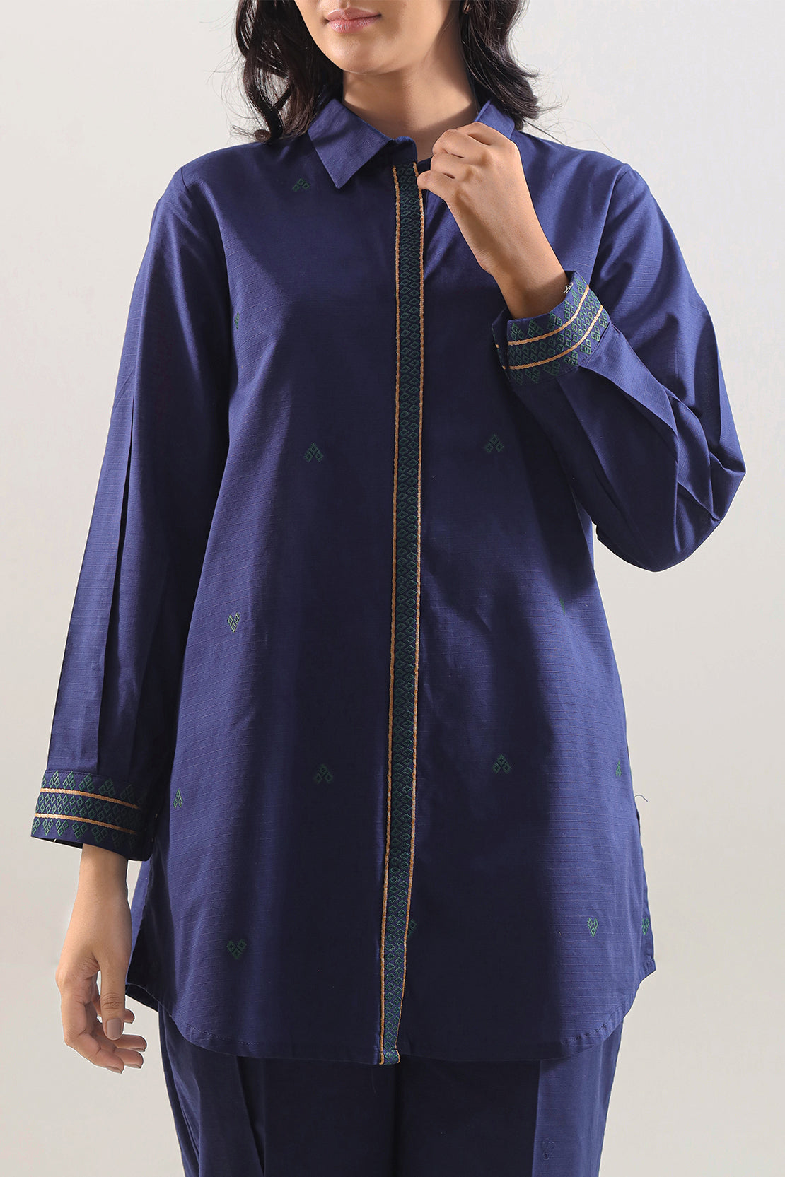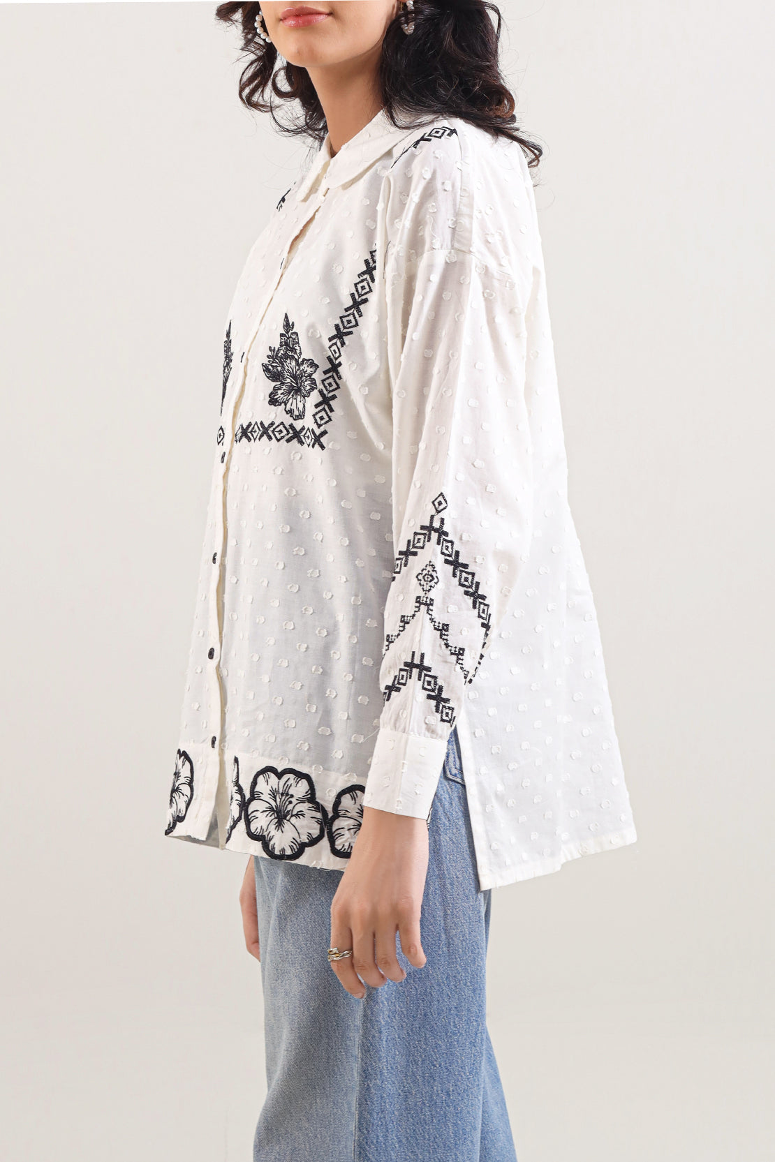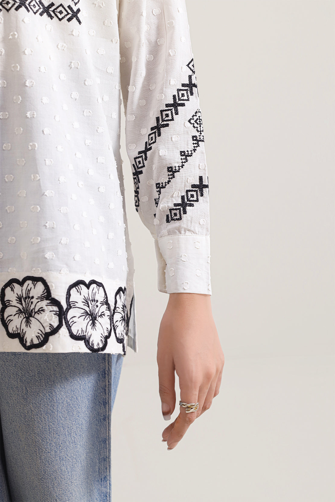 Printed Embroidered Cotton Jacquard Stitched Shirt