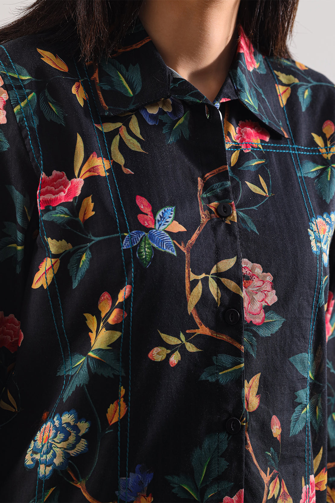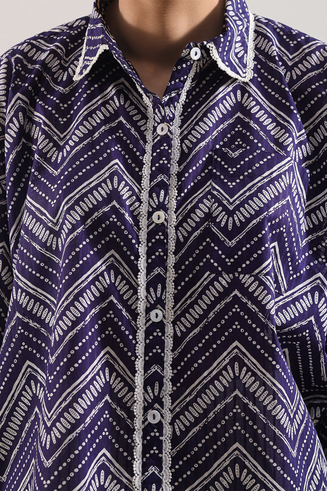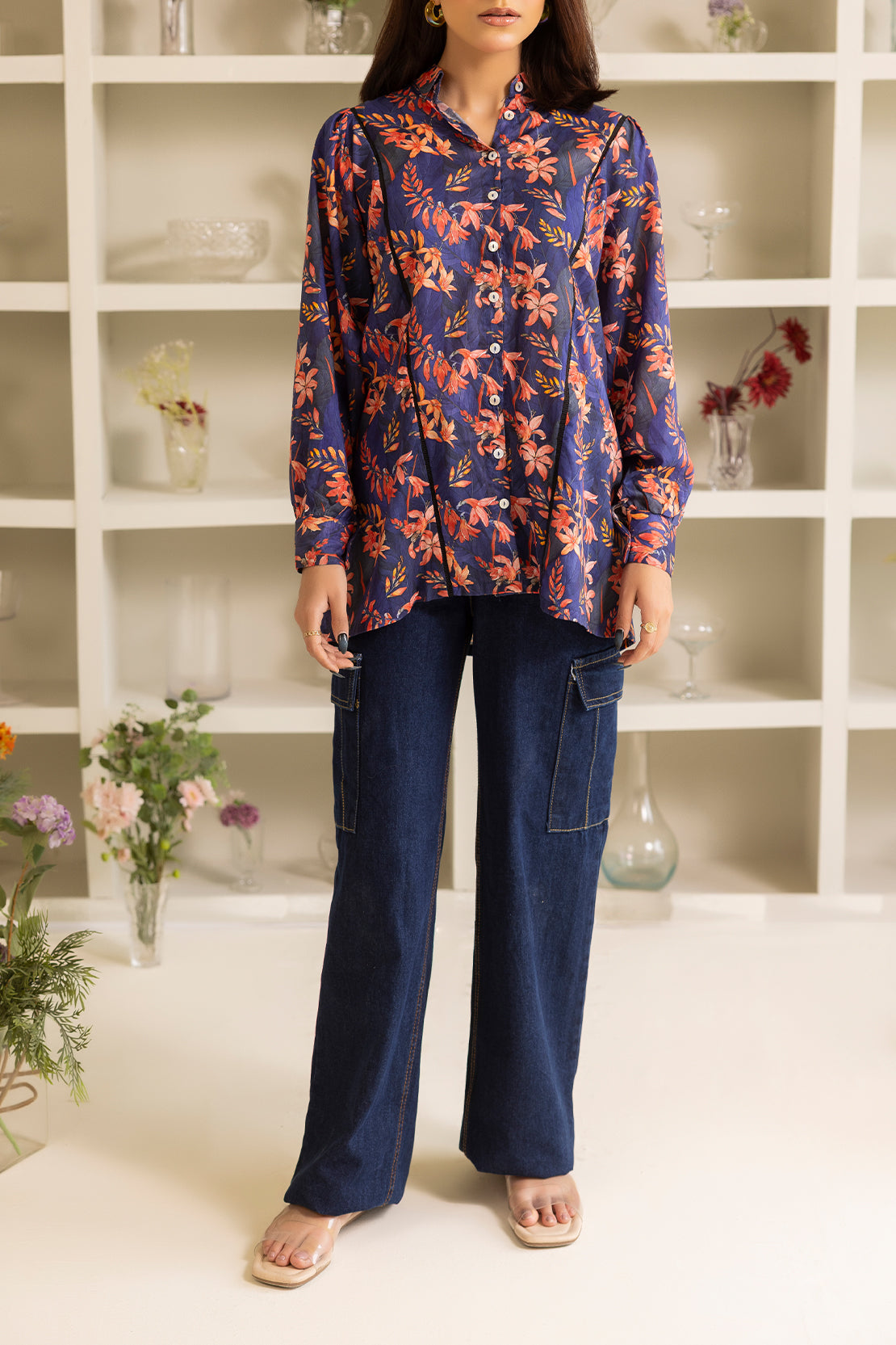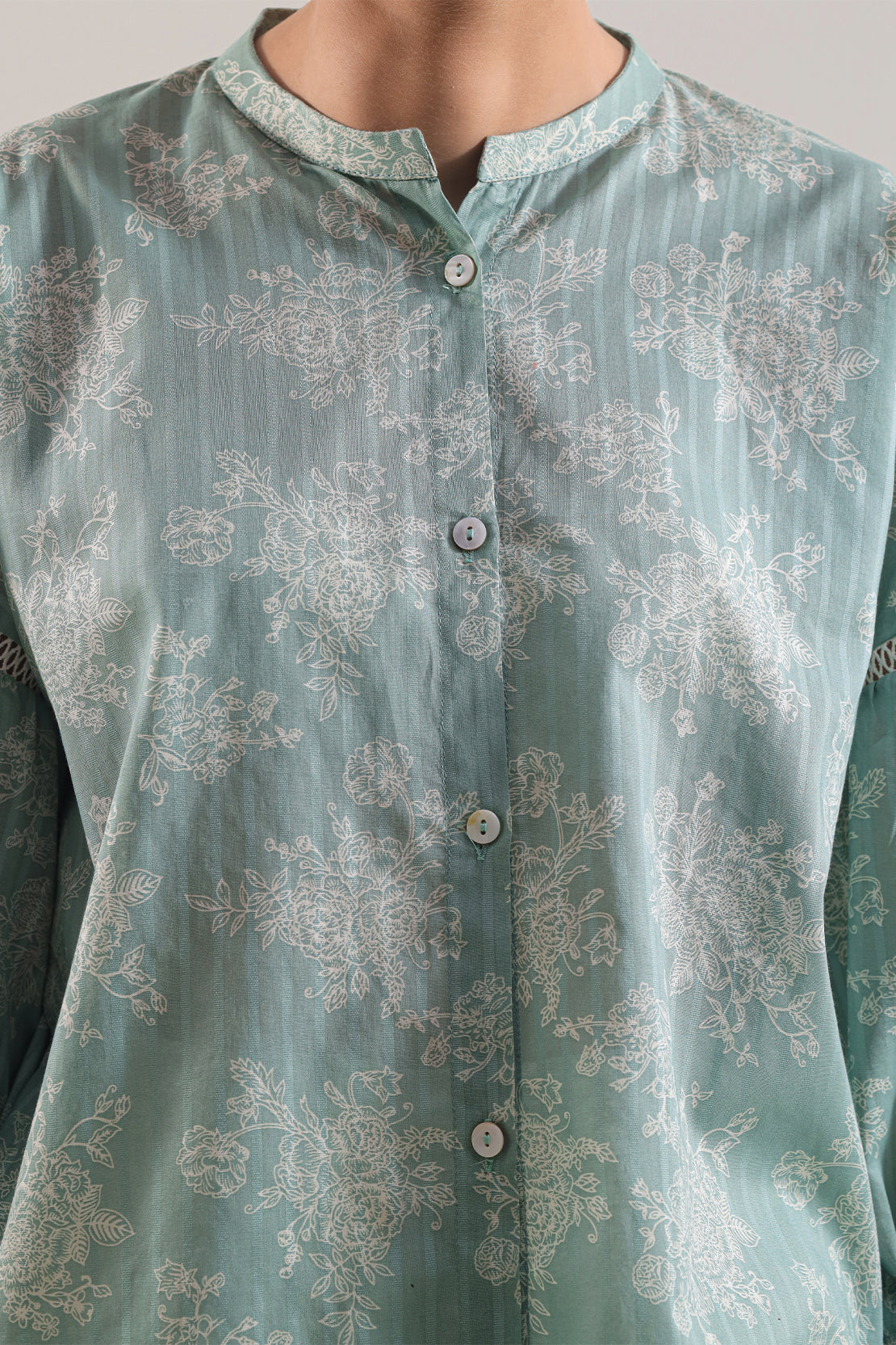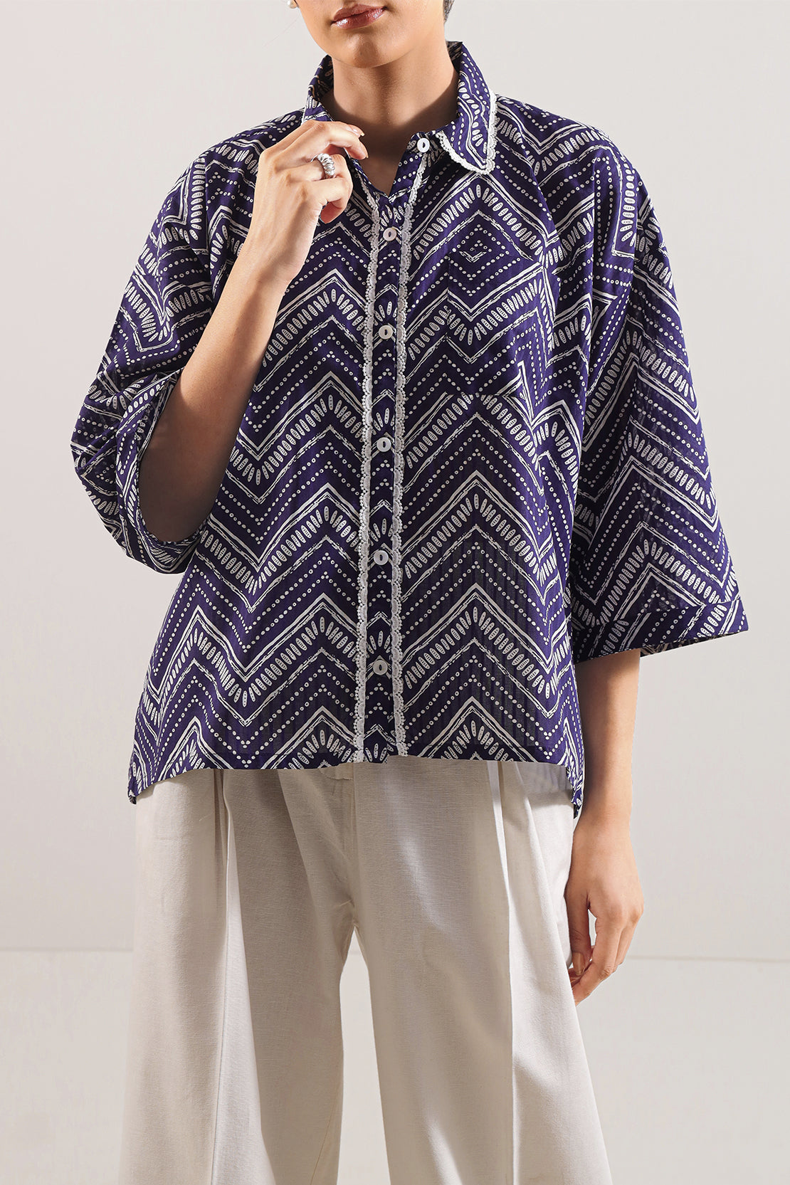 Printed Embroidered Cotton Jacquard Stitched Shirt