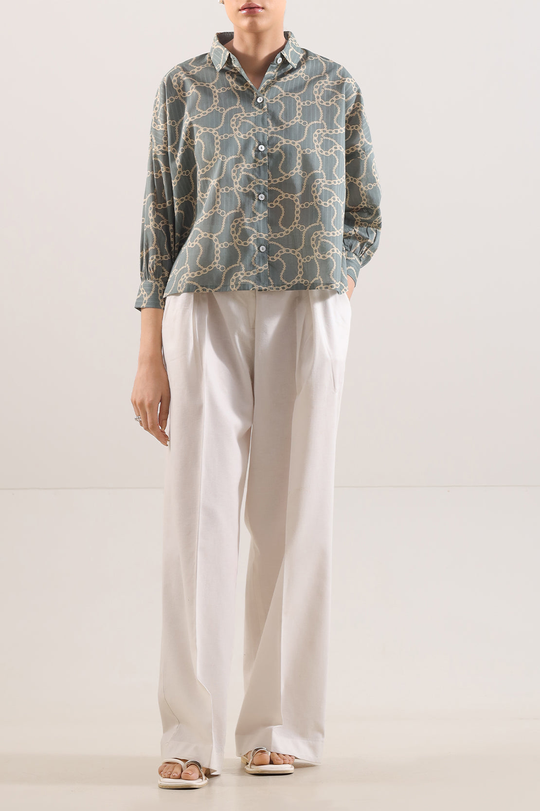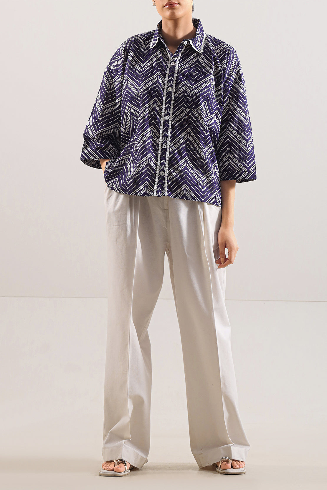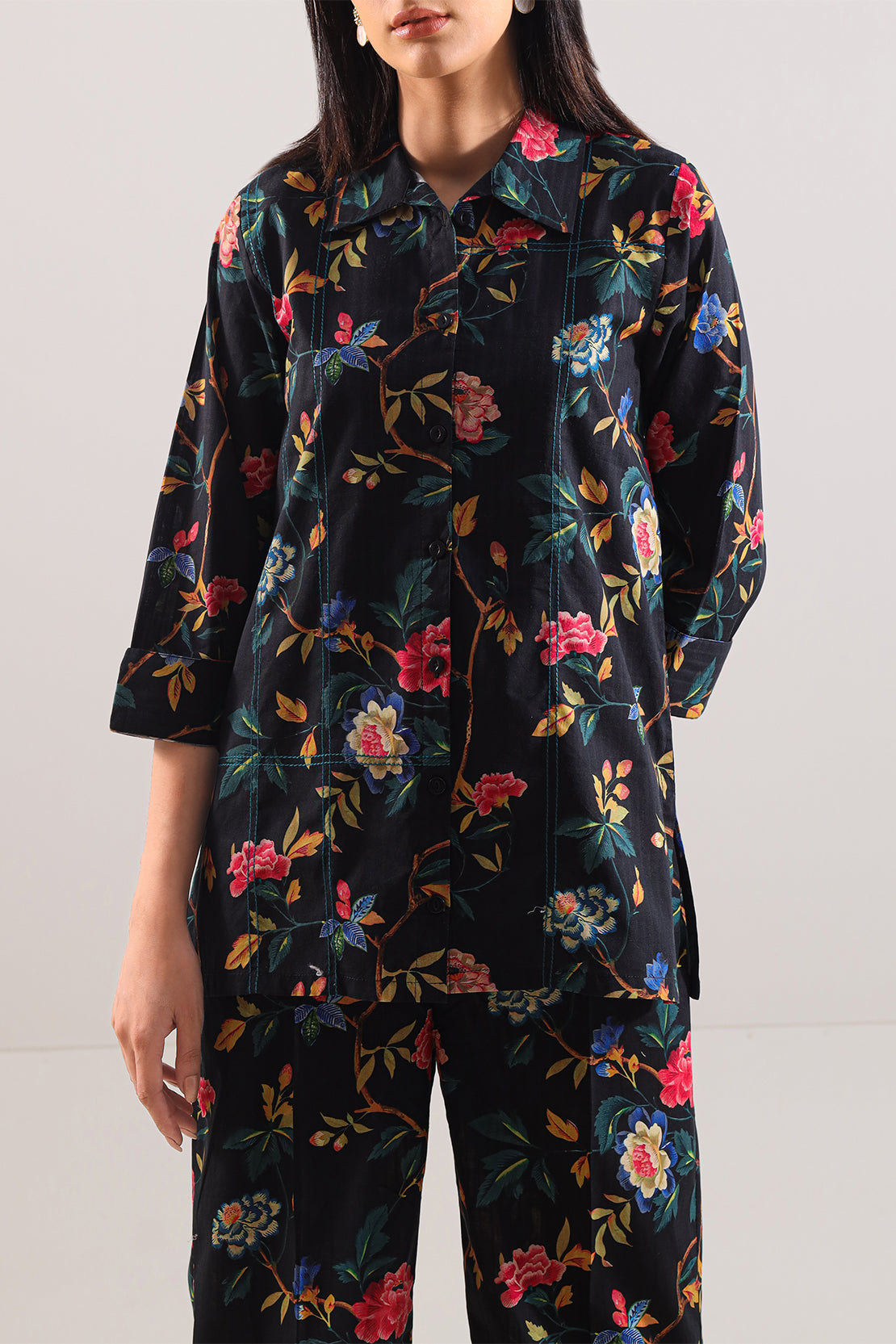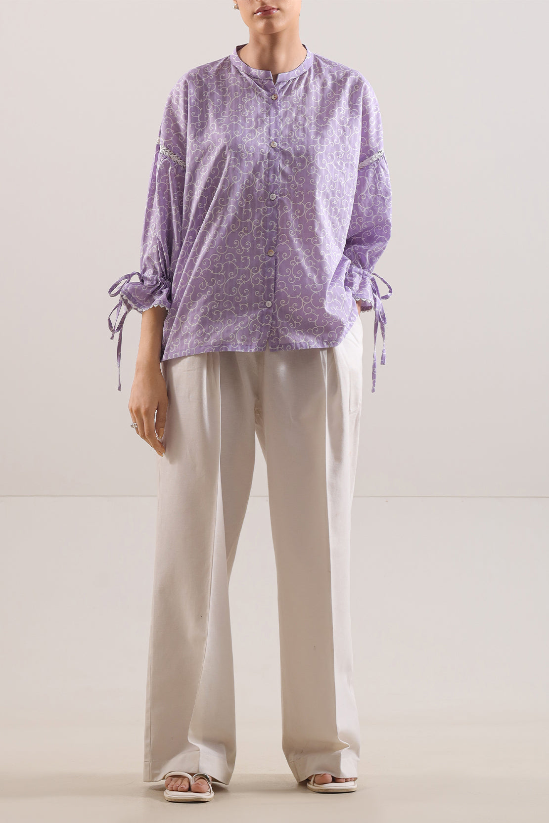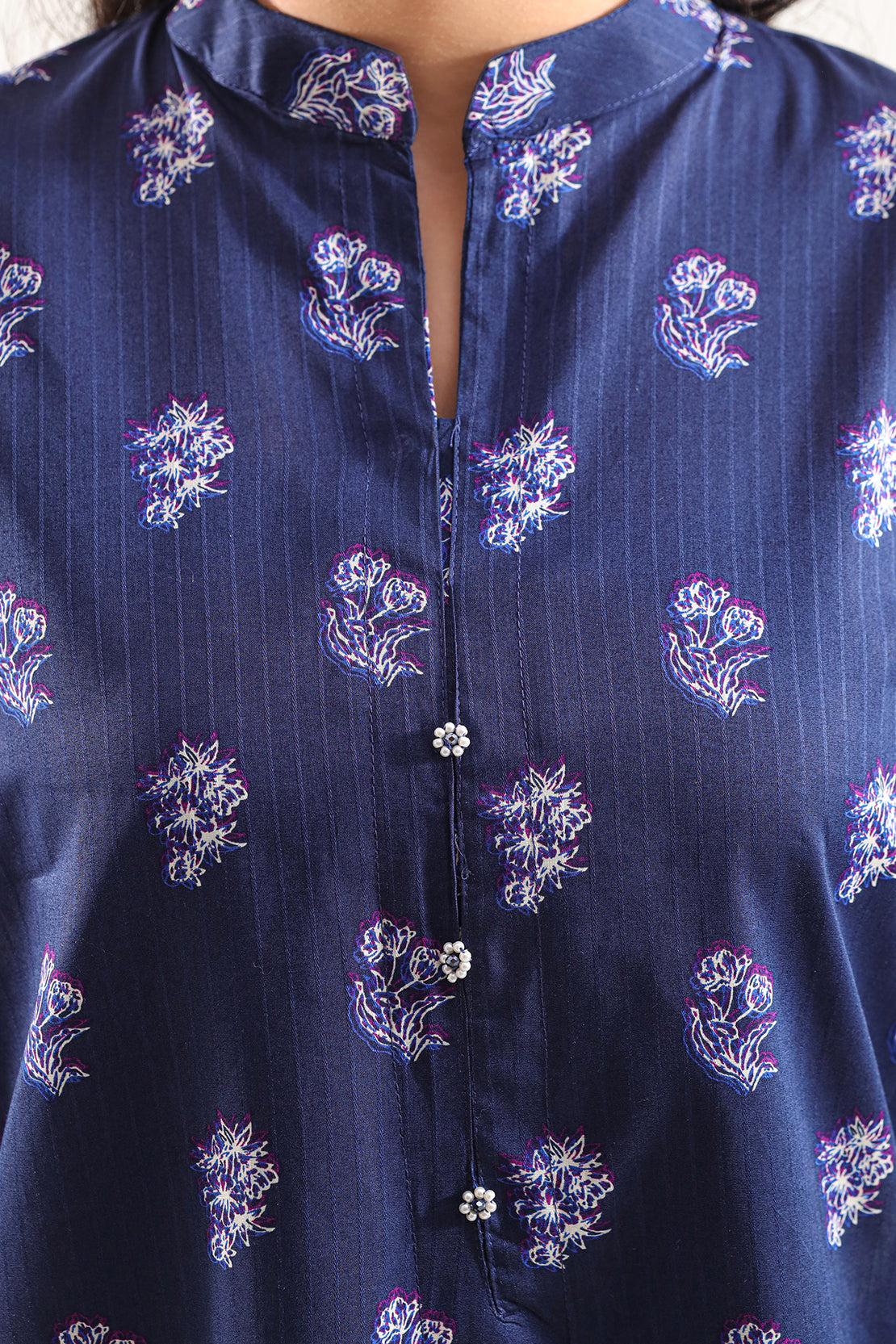 Printed Embroidered Cotton Jacquard Stitched Shirt