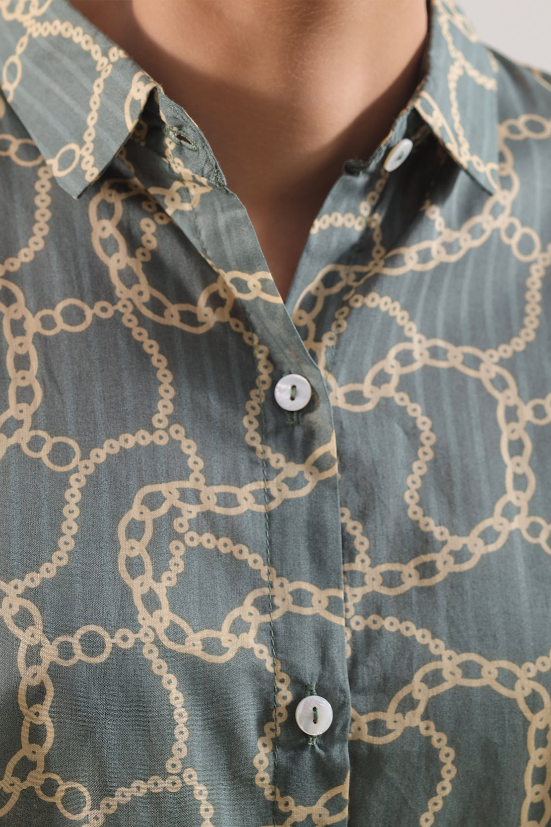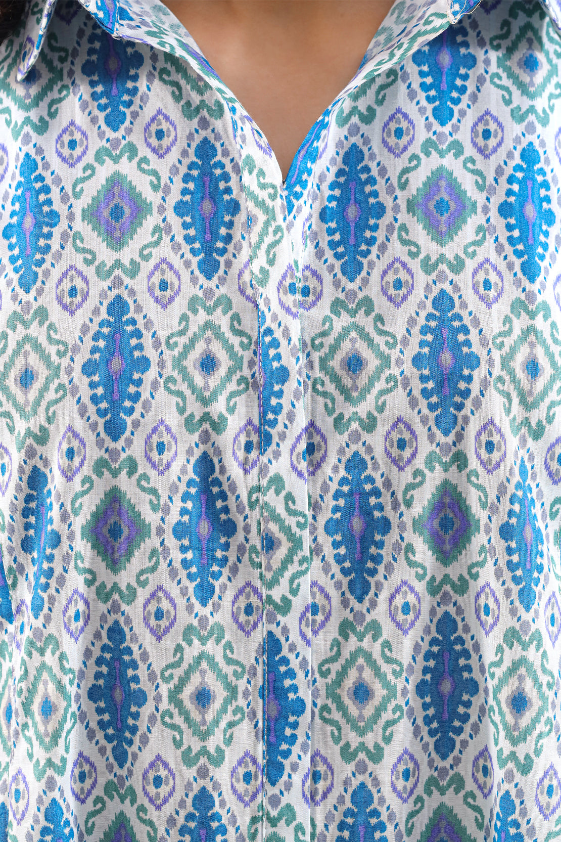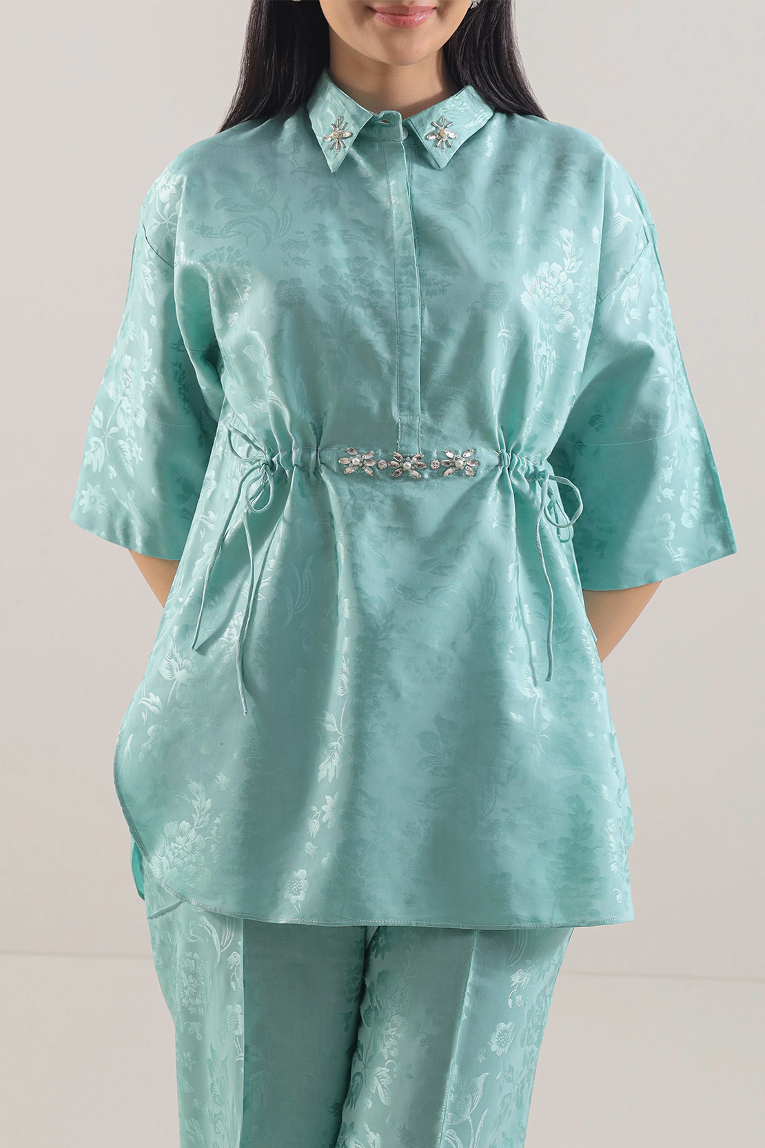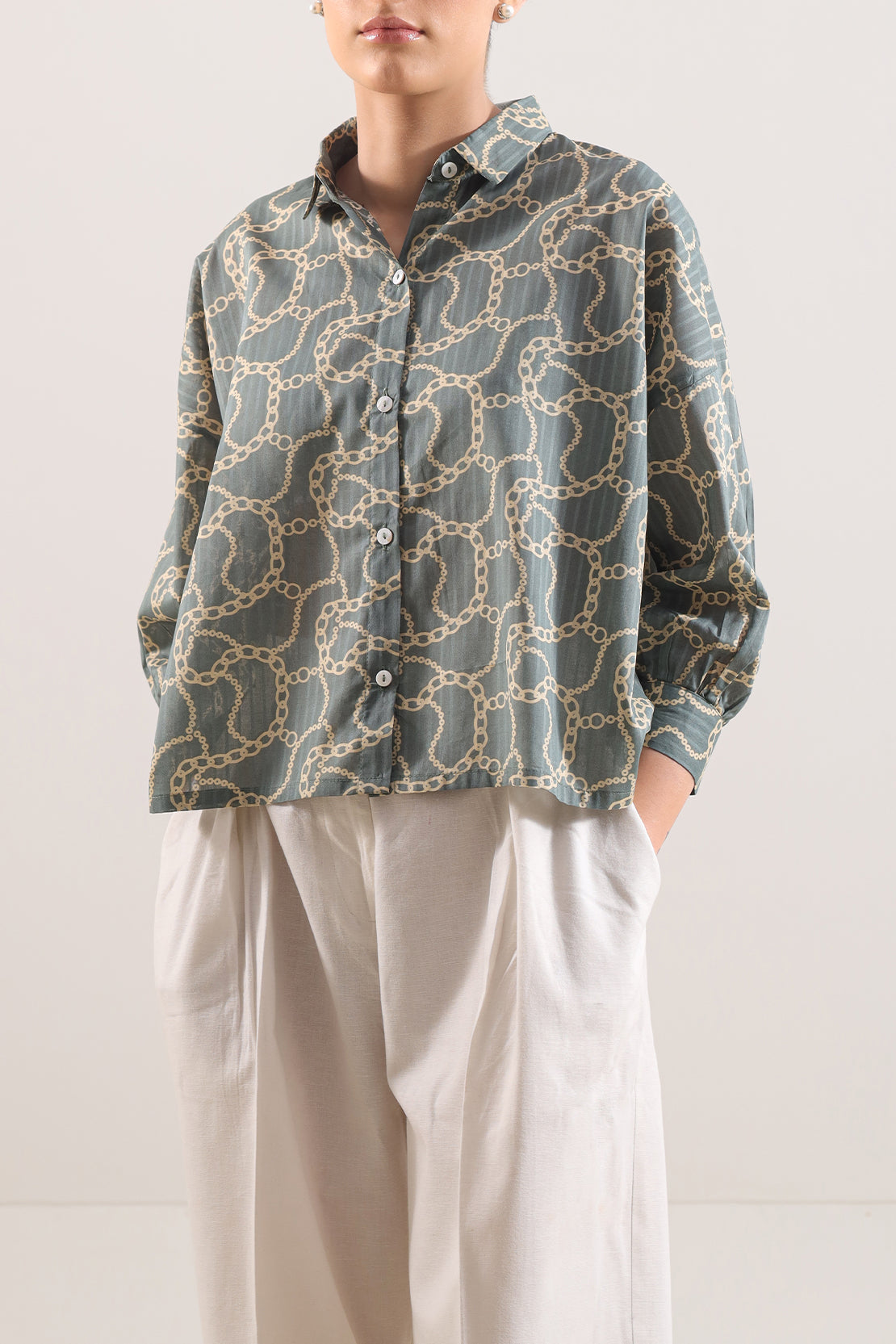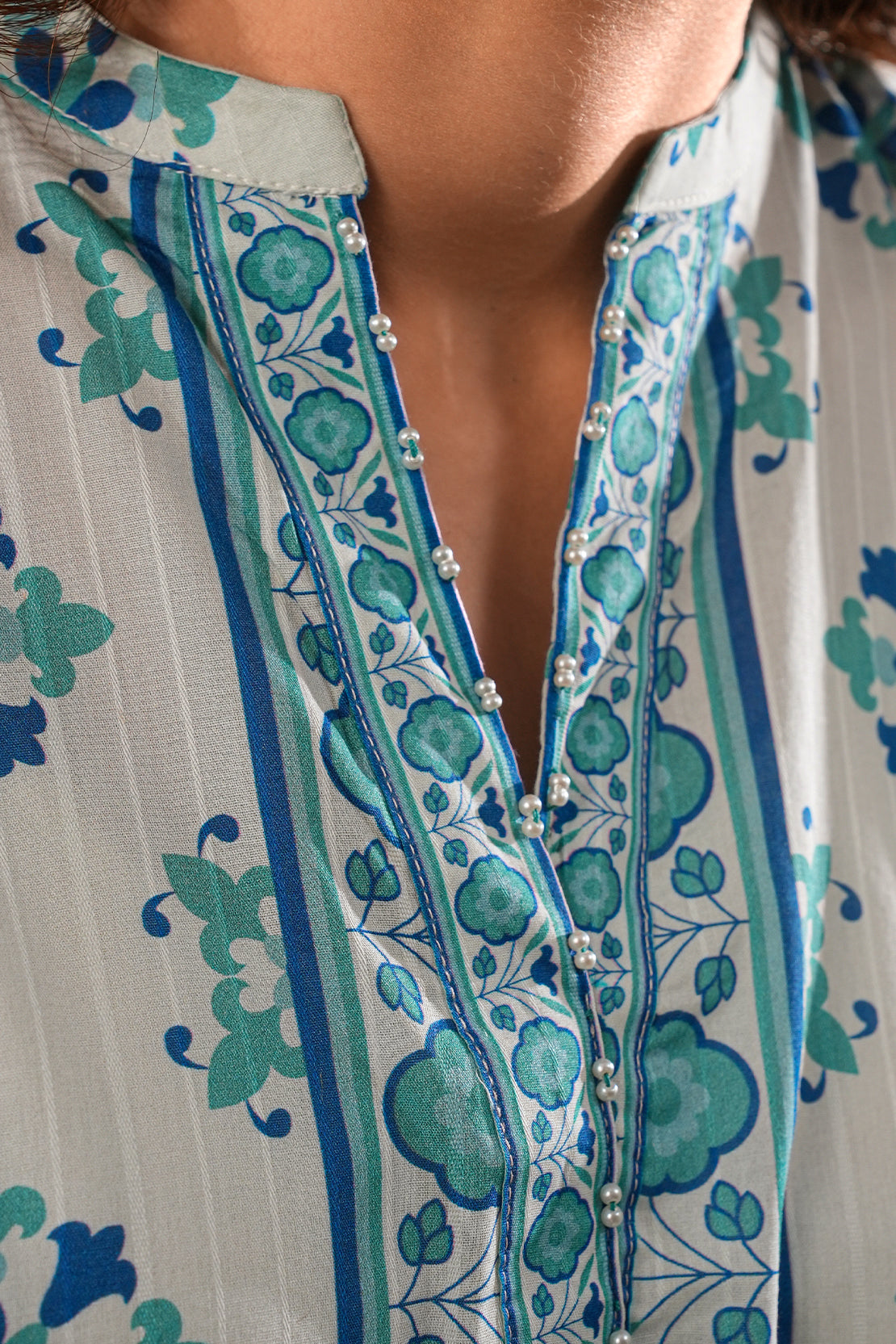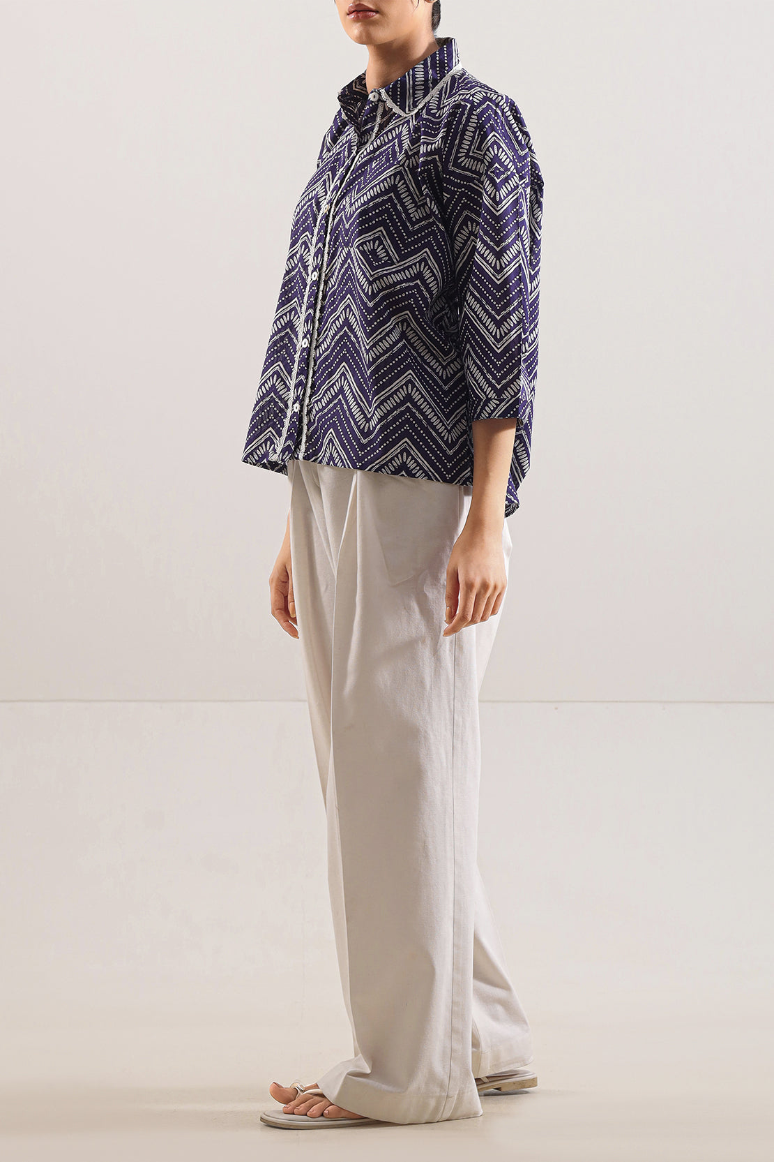 Printed Embroidered Cotton Jacquard Stitched Shirt