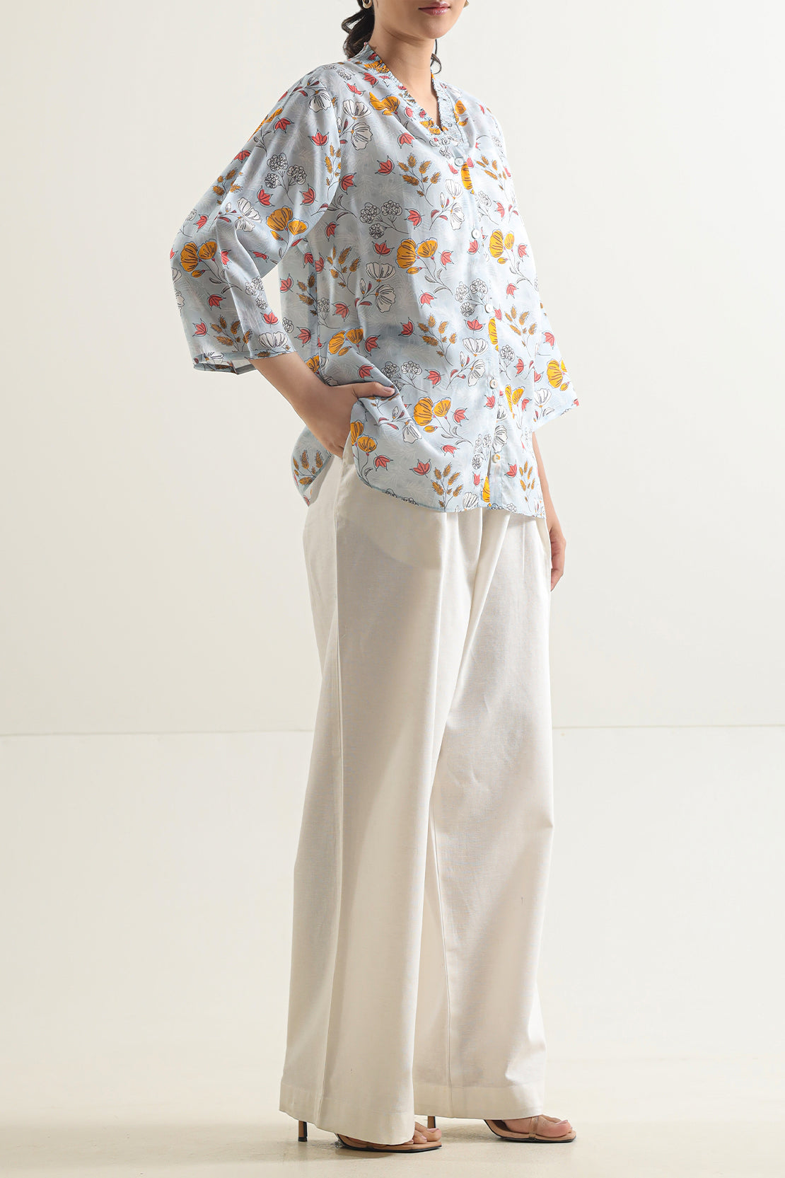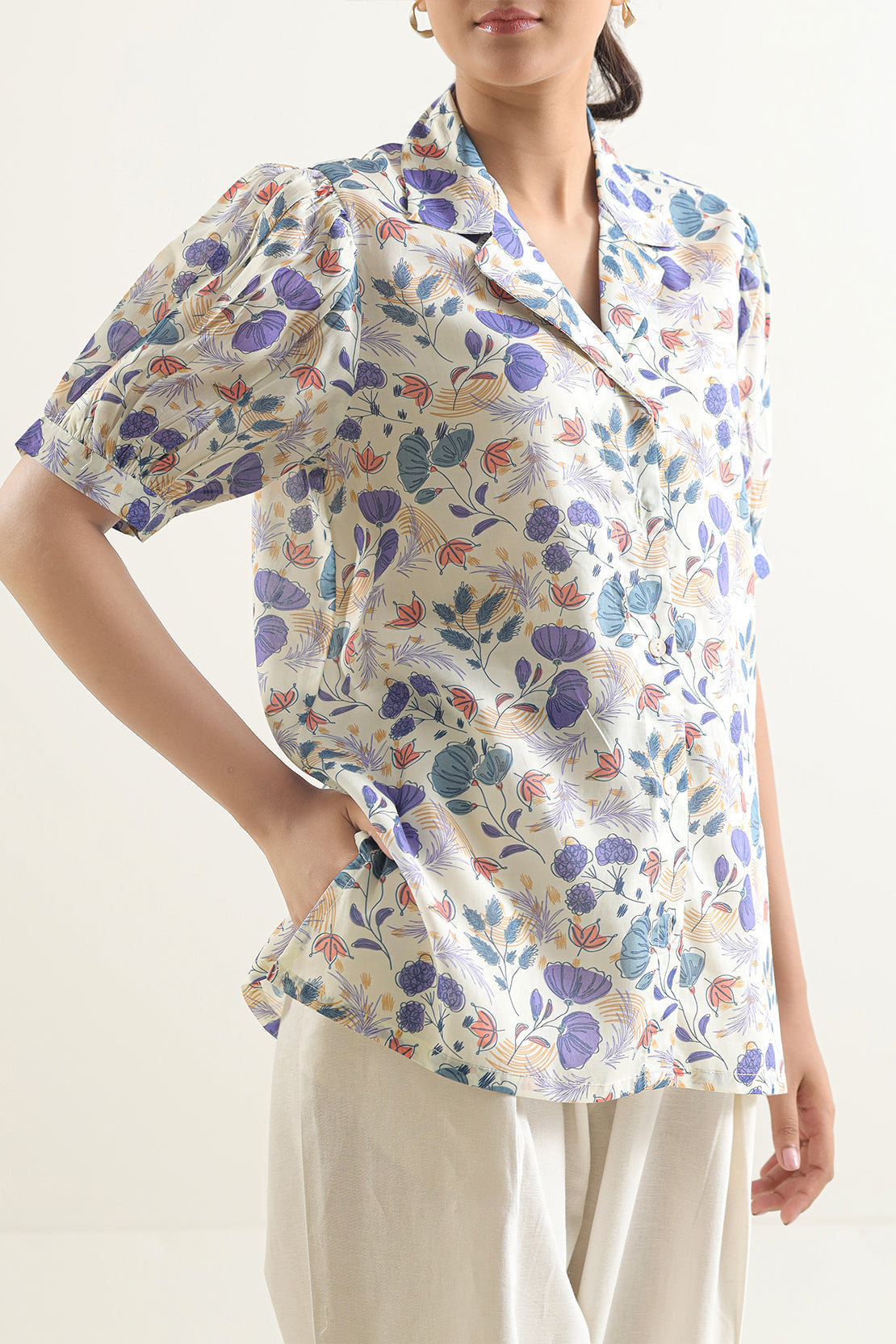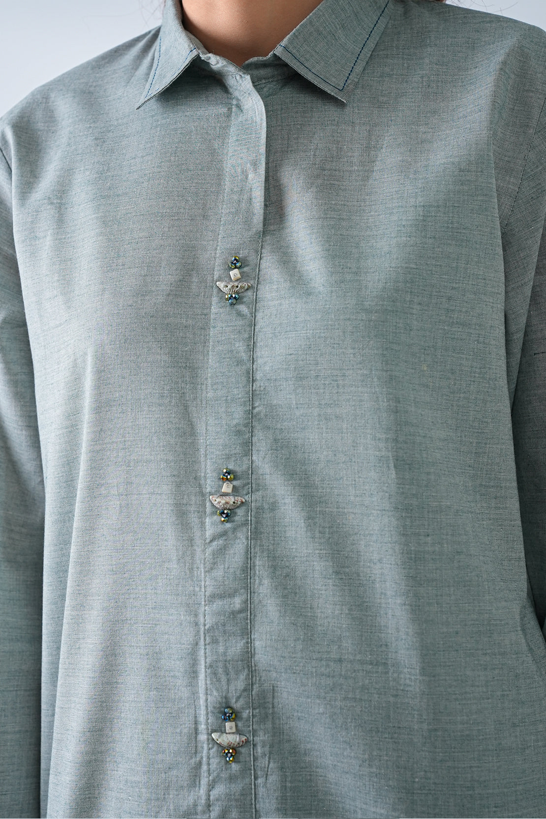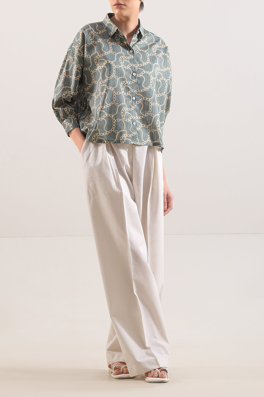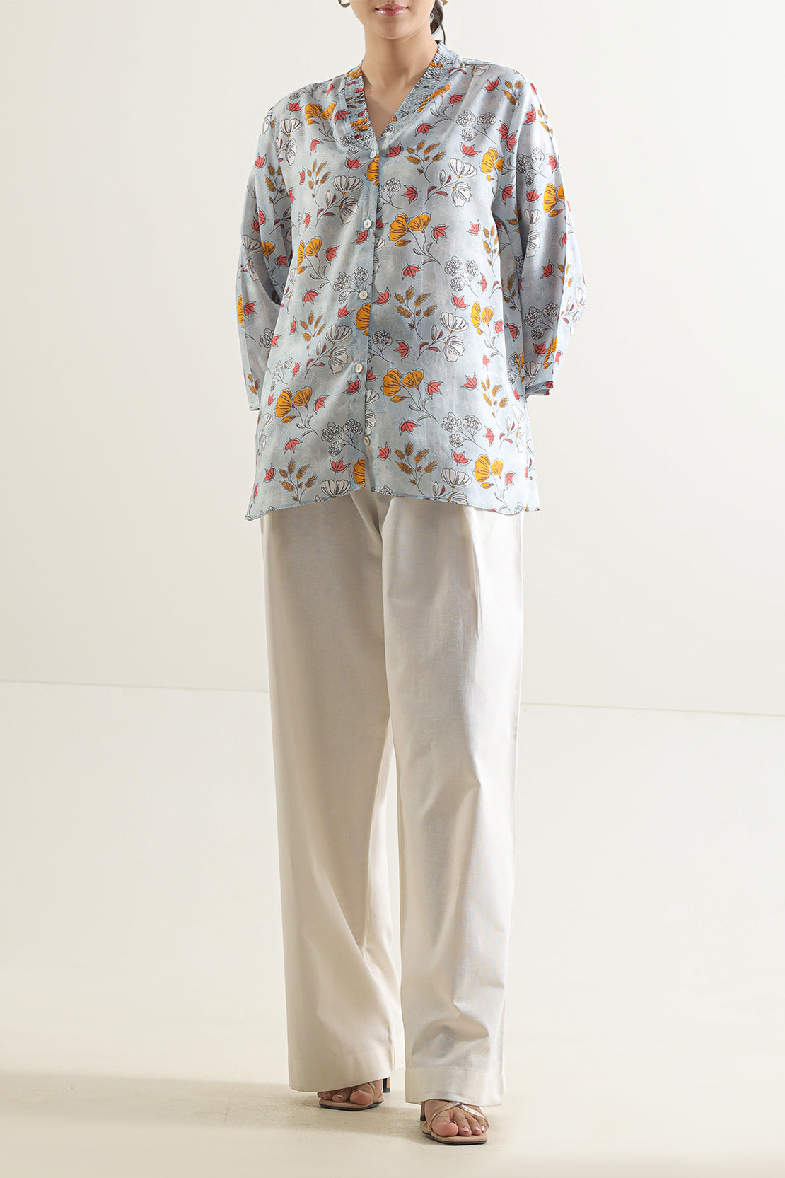 Printed Embroidered Cotton Jacquard Stitched Shirt