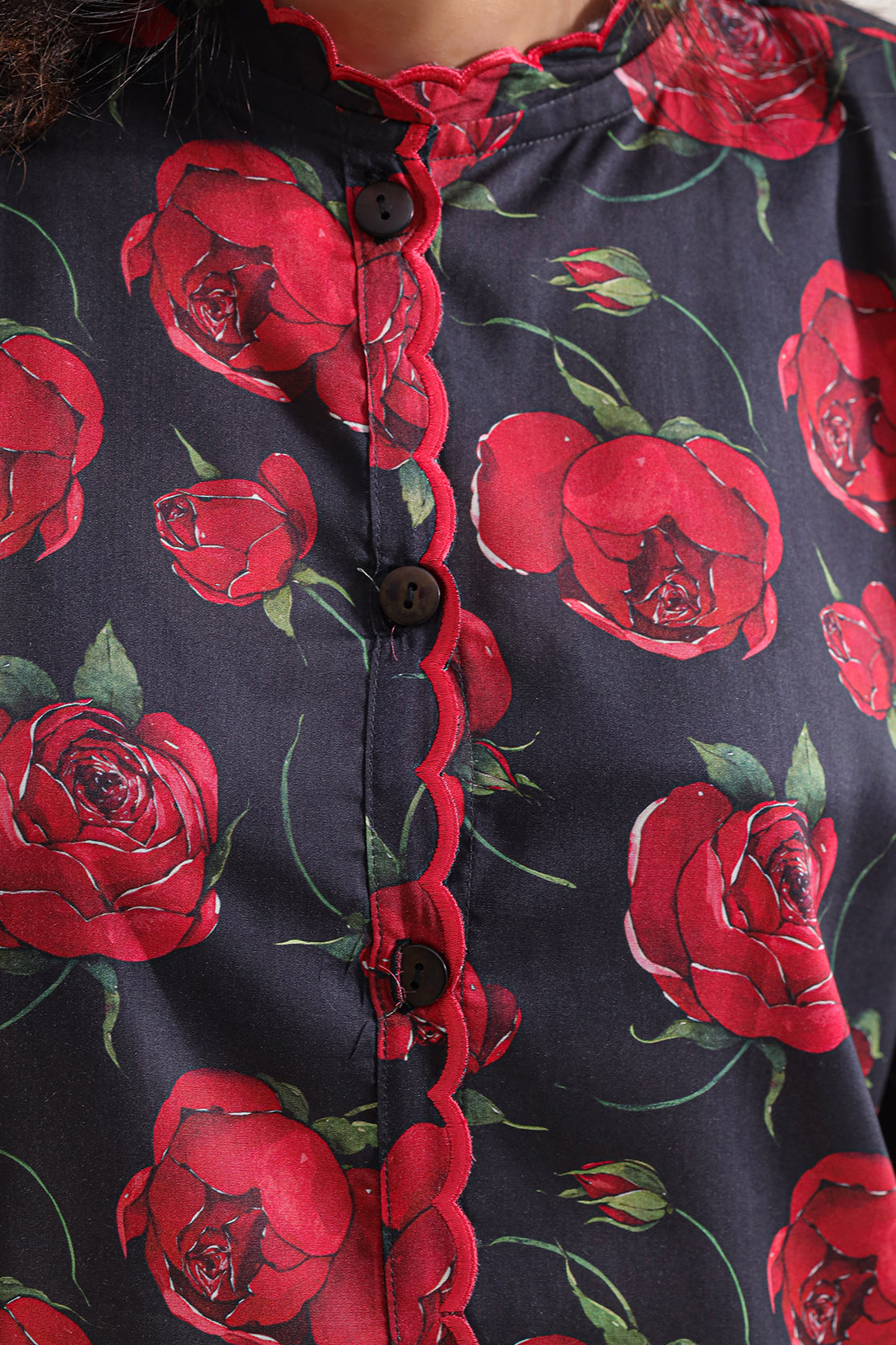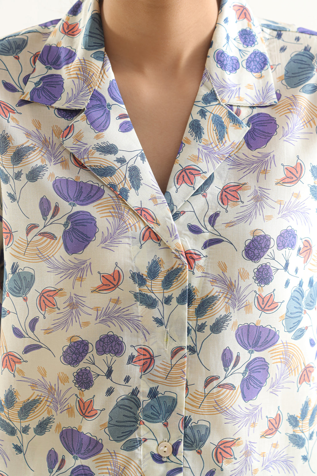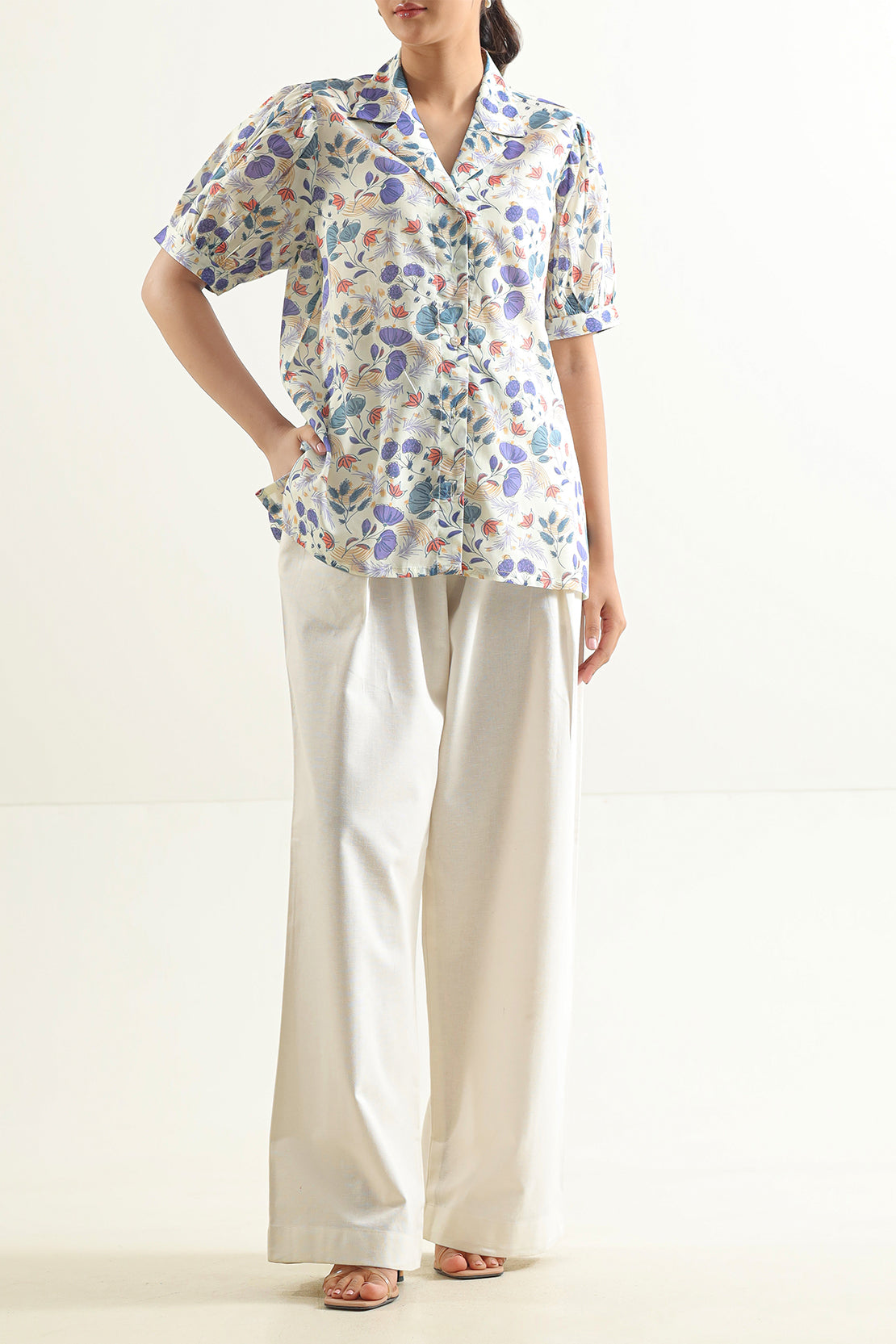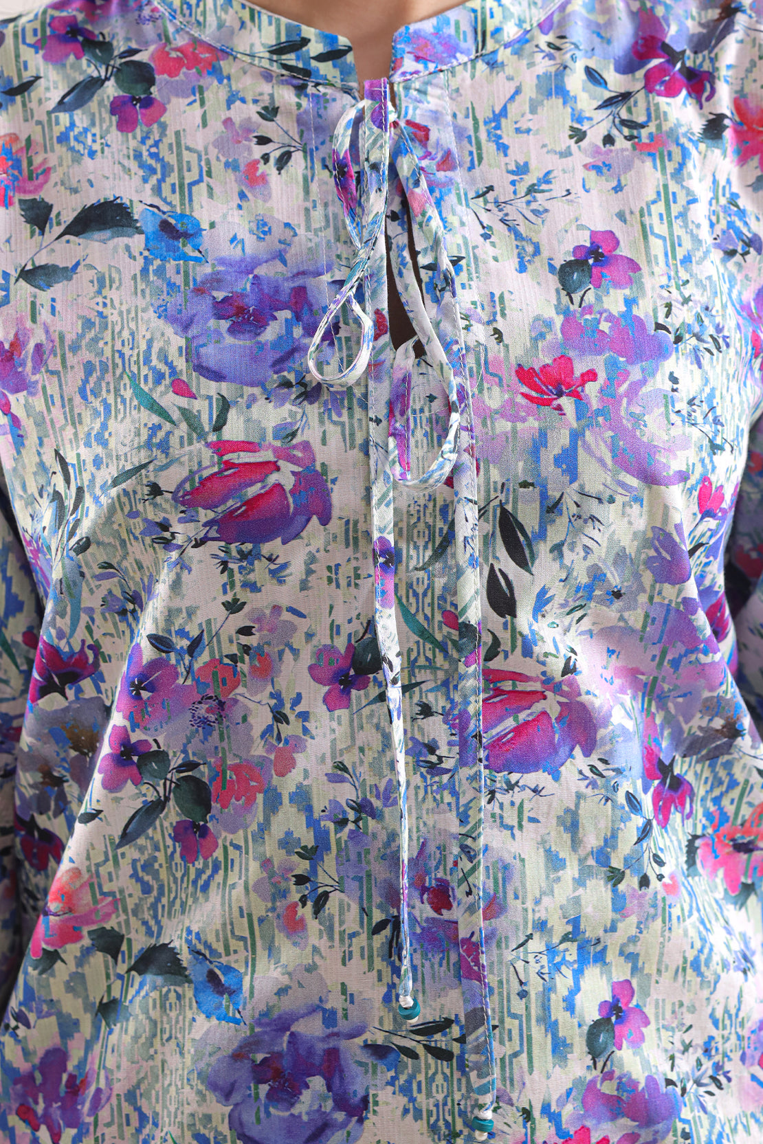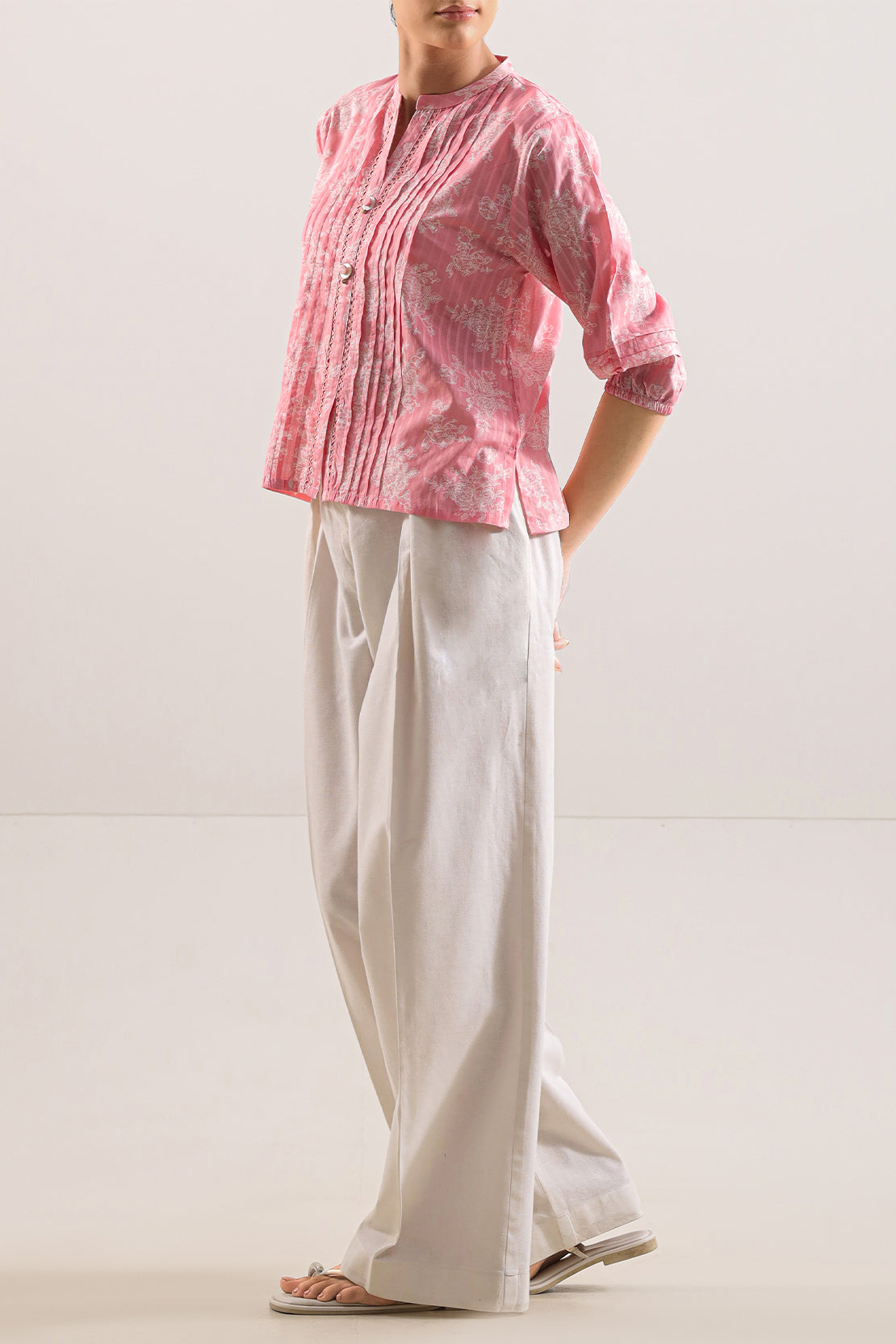 Printed Embroidered Cotton Jacquard Stitched Shirt