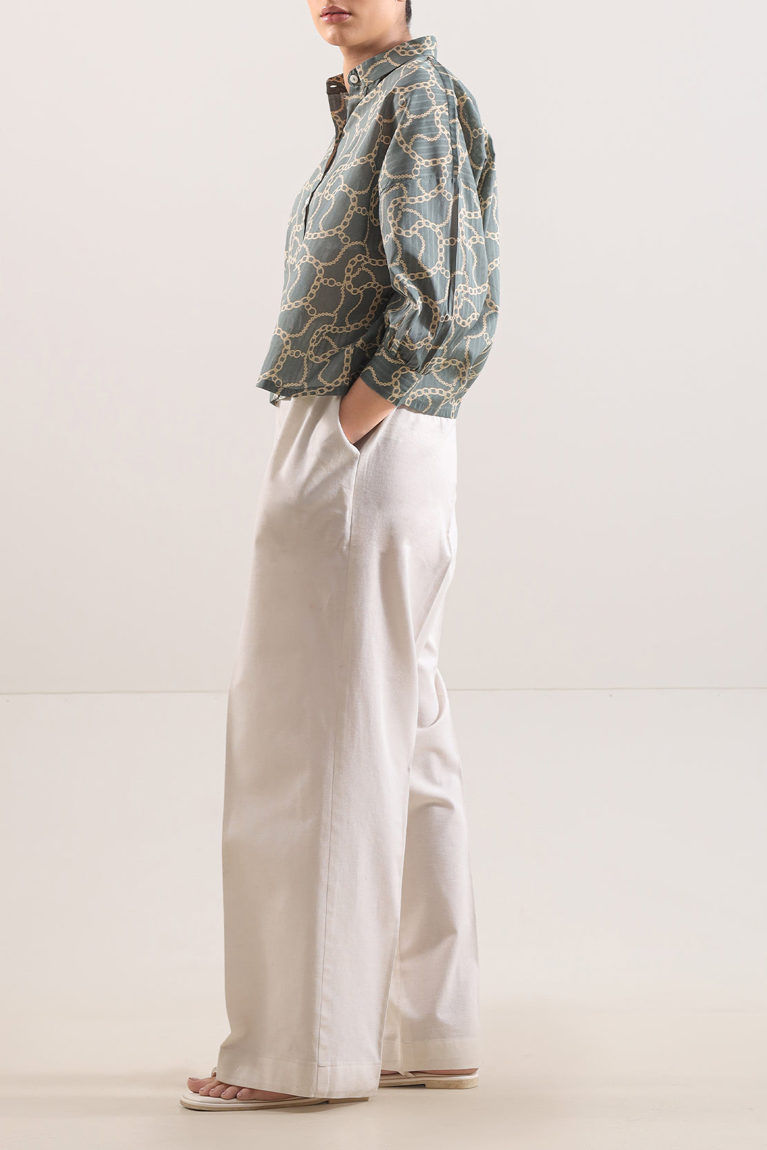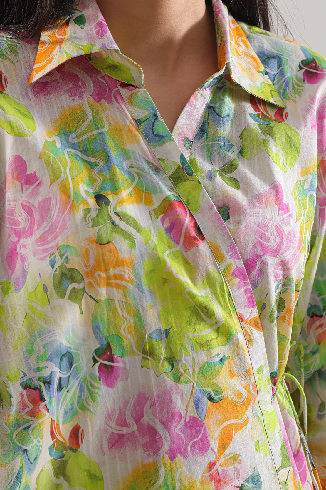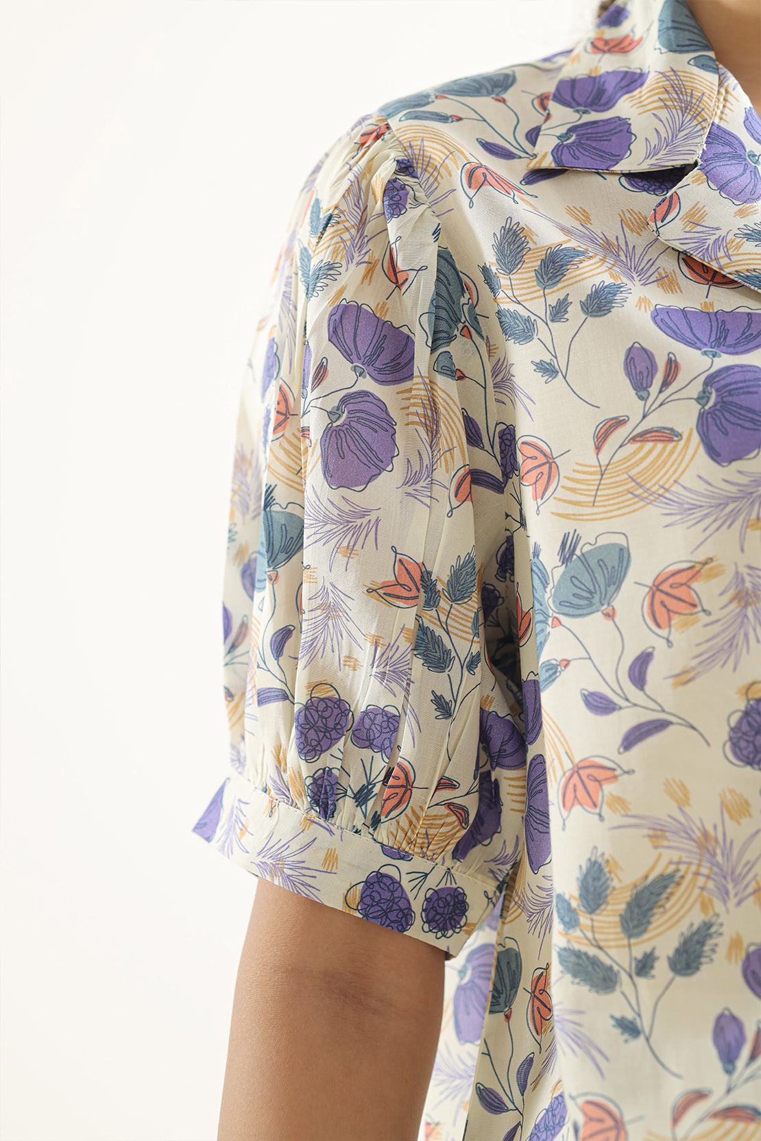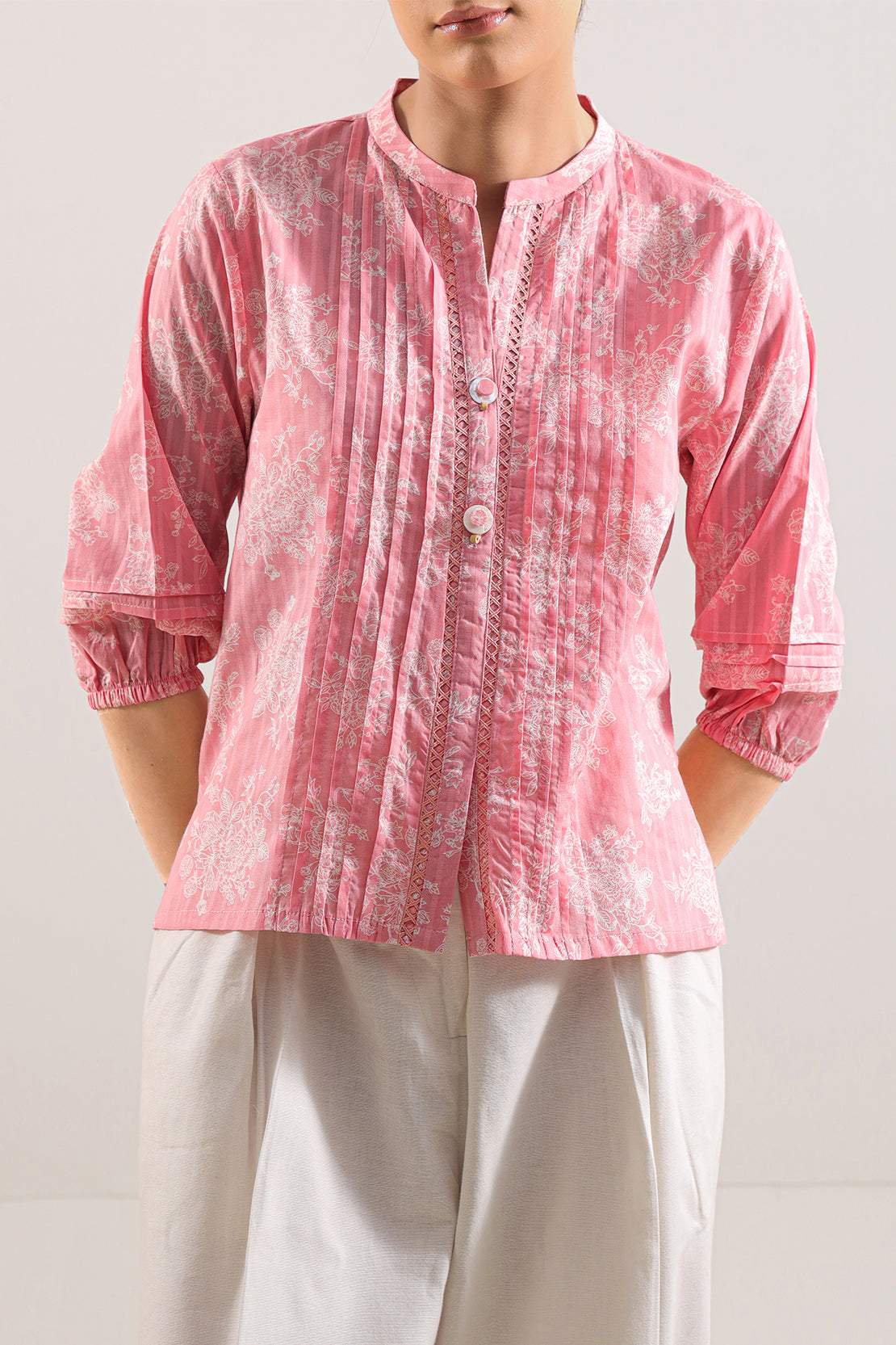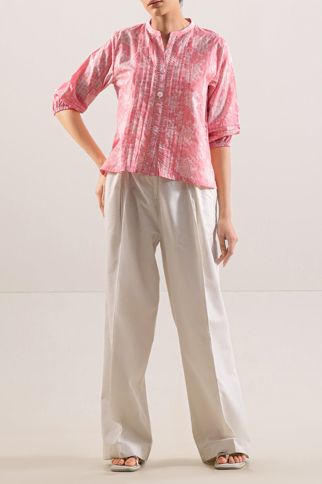 Printed Embroidered Cotton Jacquard Stitched Shirt
