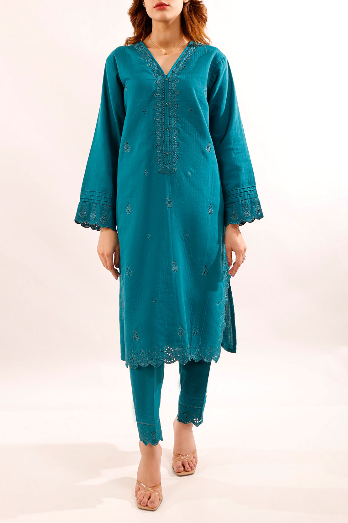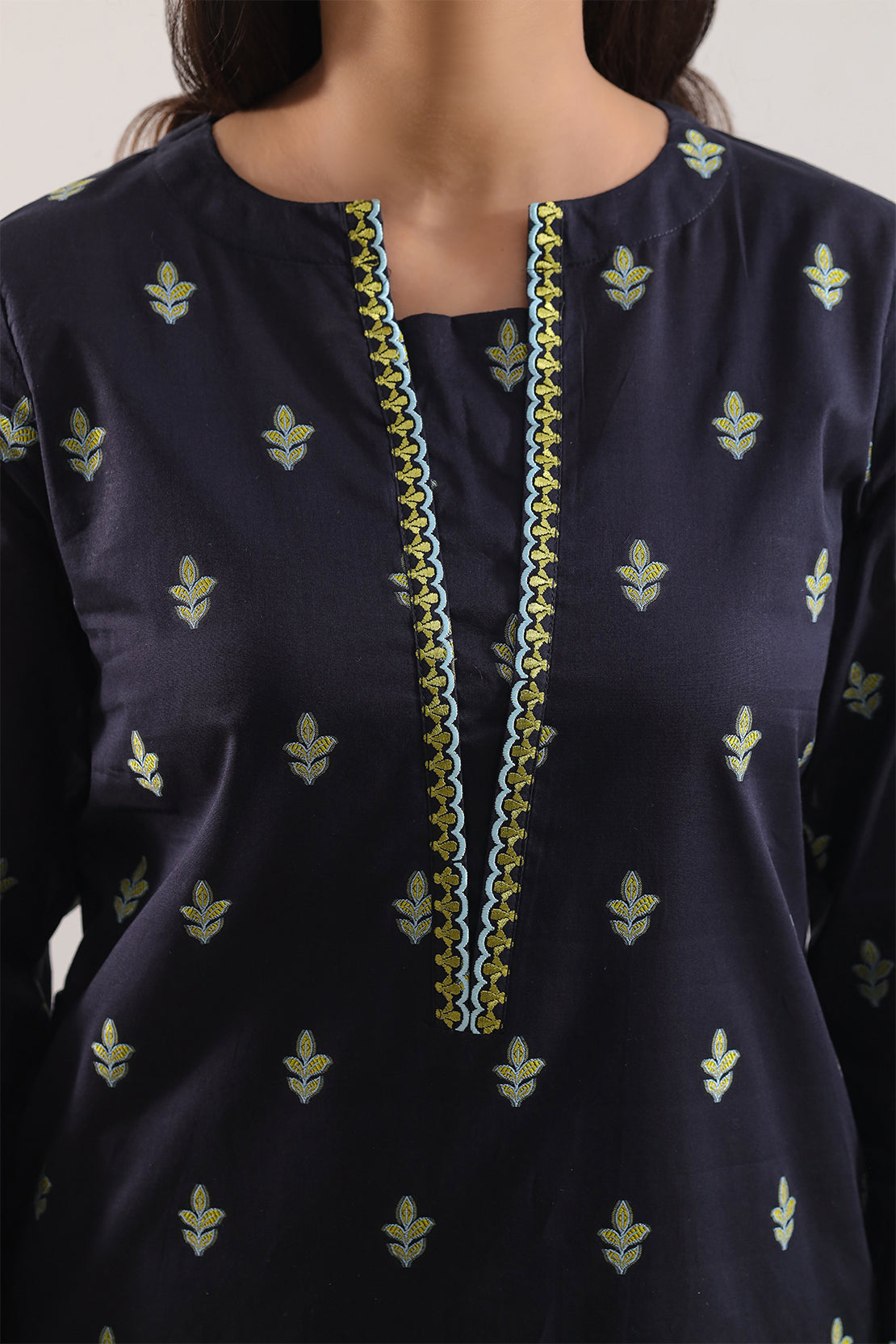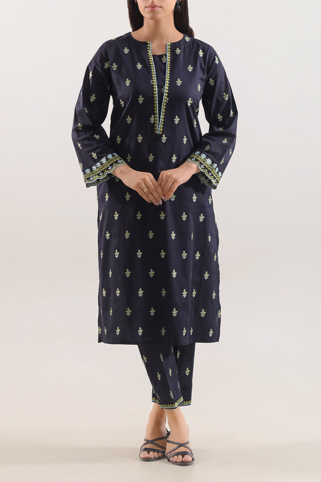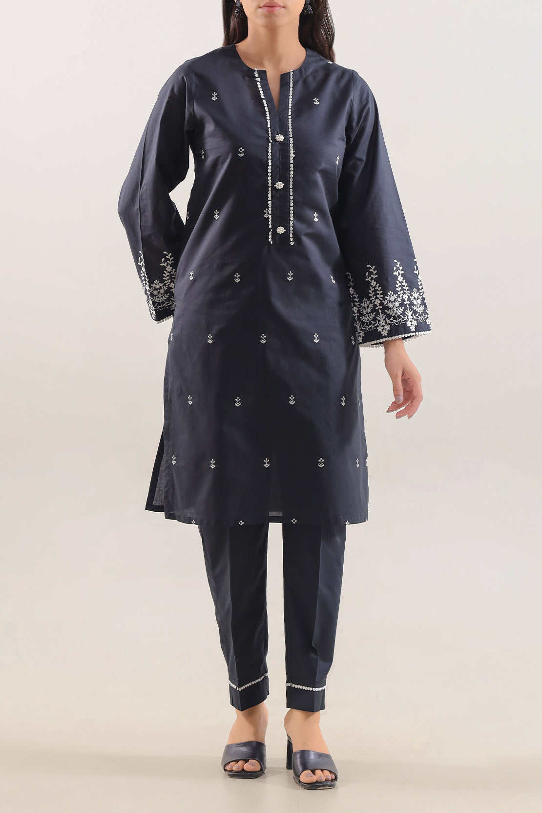 Solid Embroidered Cotton Stitched 2 Piece (Shirt/Trouser)