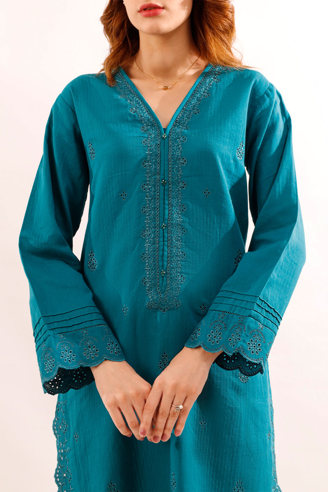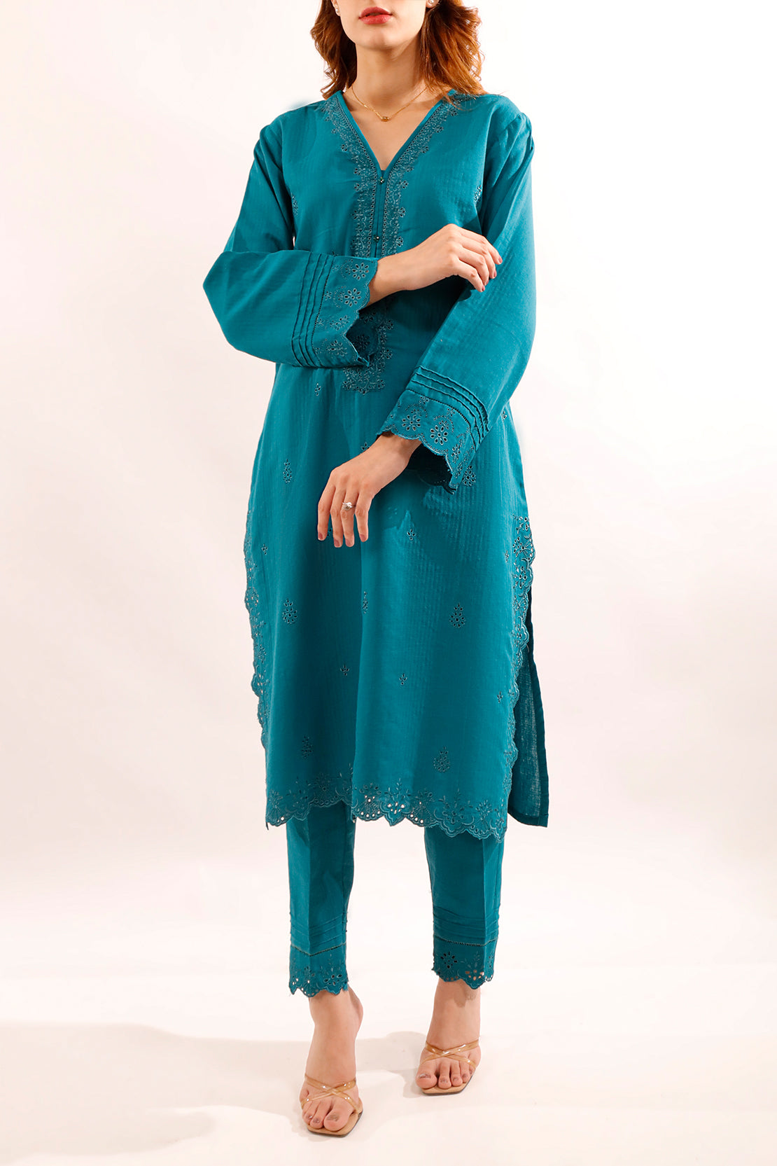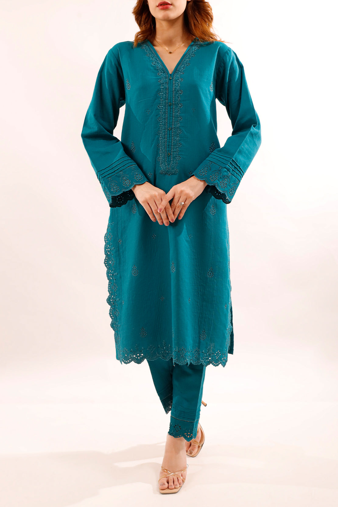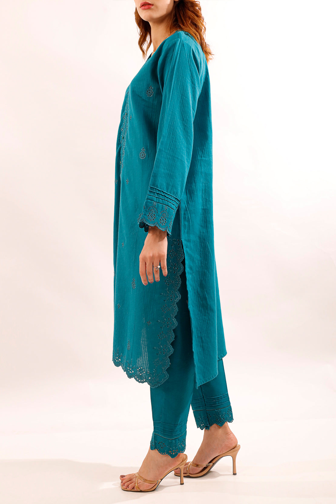 Solid Embroidered Cotton Stitched 2 Piece (Shirt/Trouser)