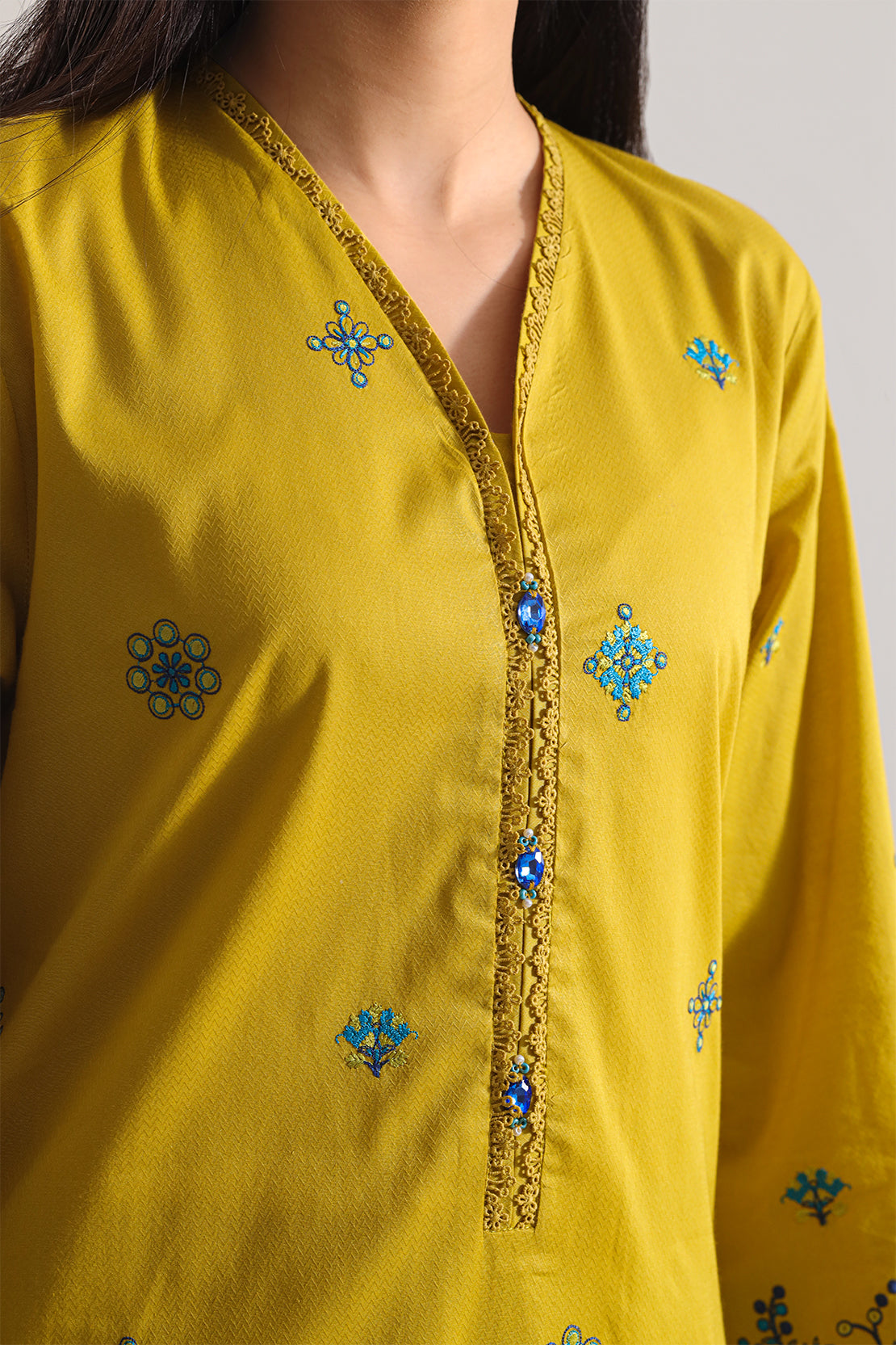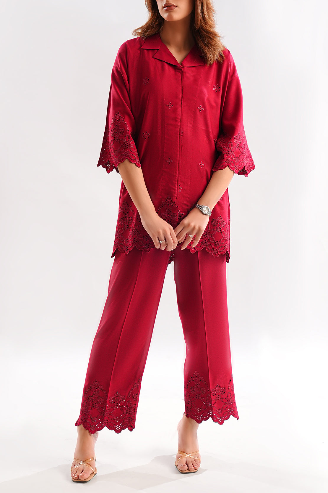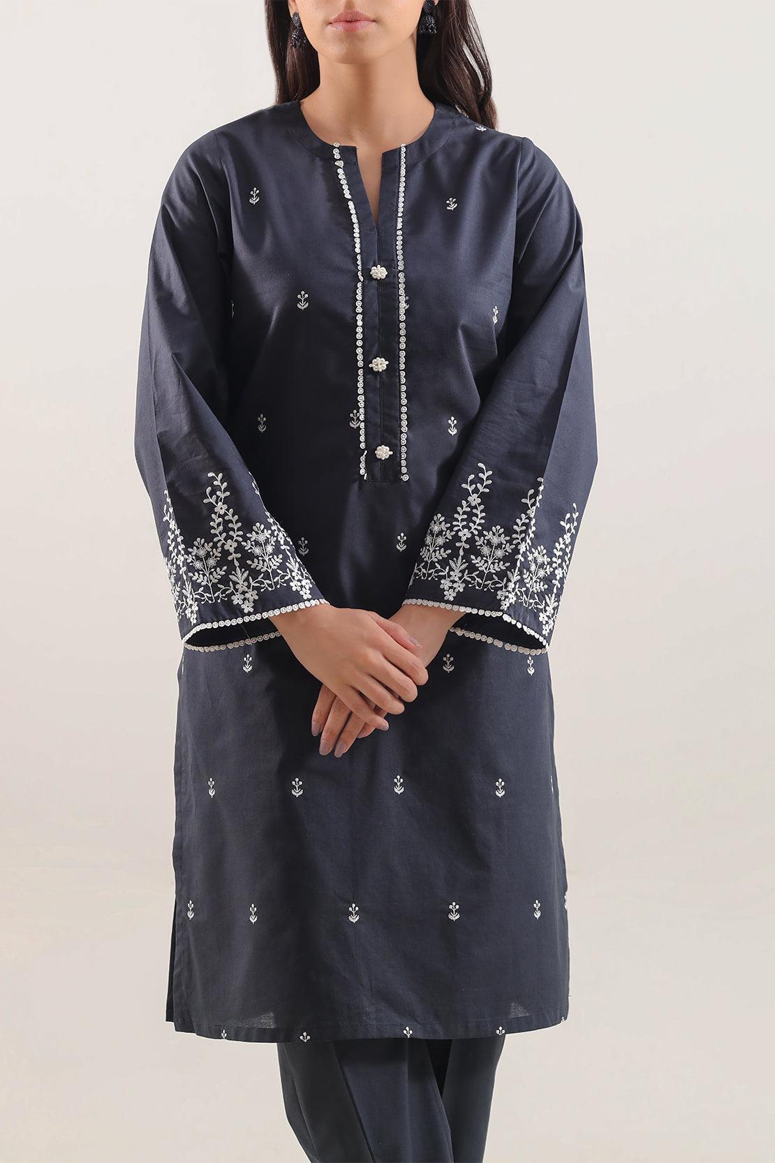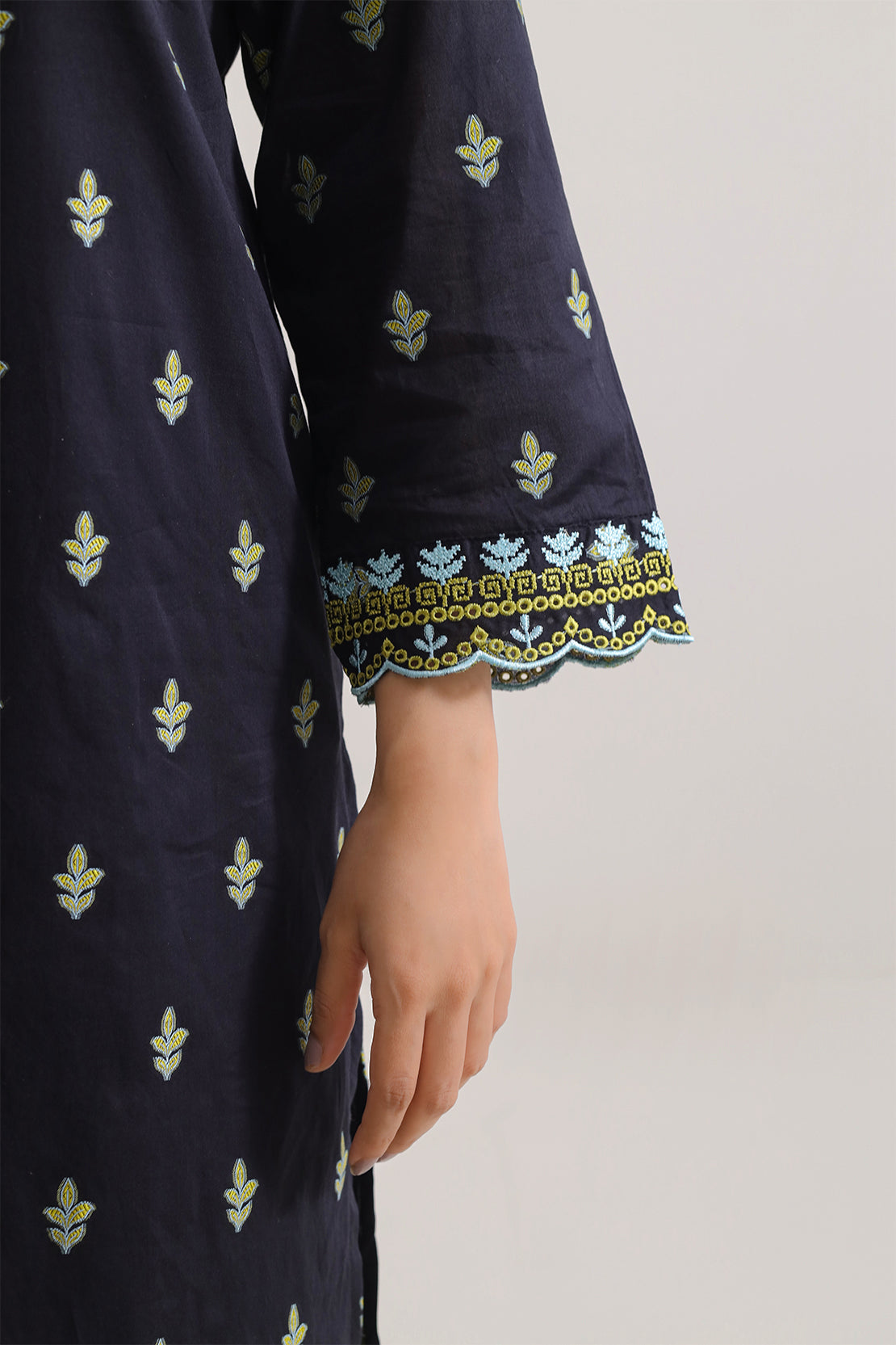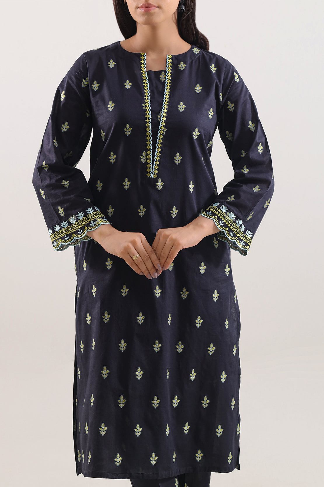 Solid Embroidered Cotton Stitched 2 Piece (Shirt/Trouser)