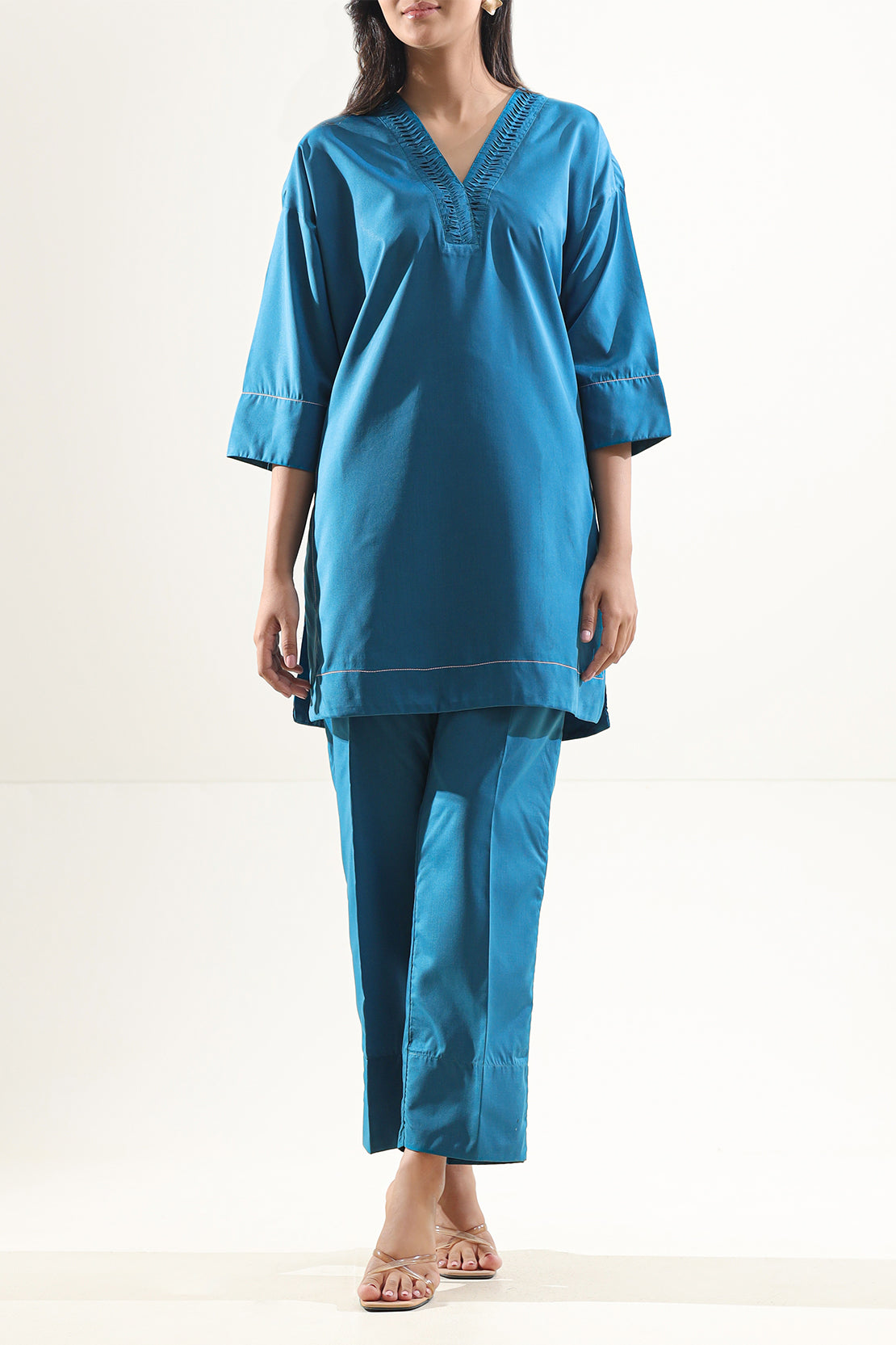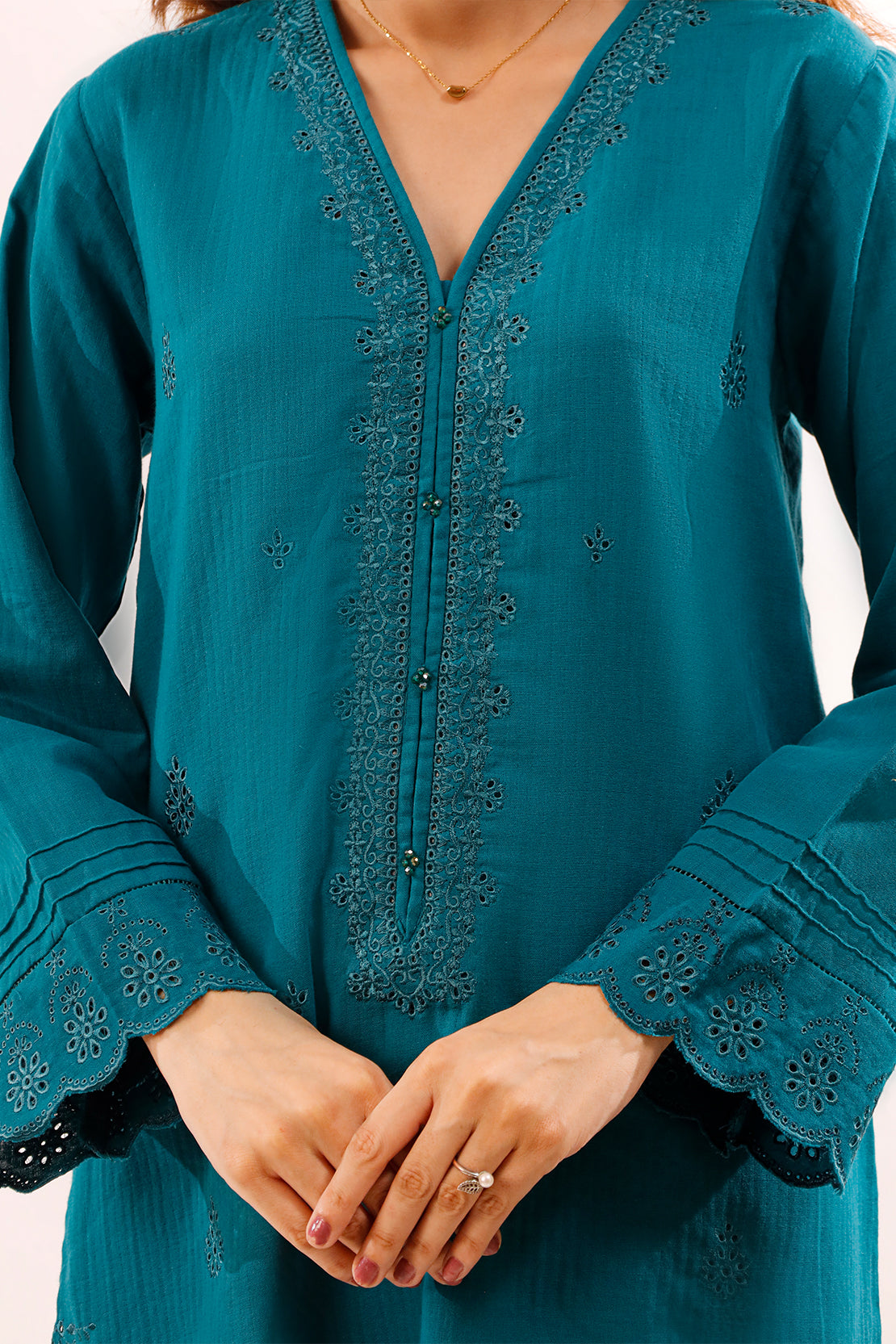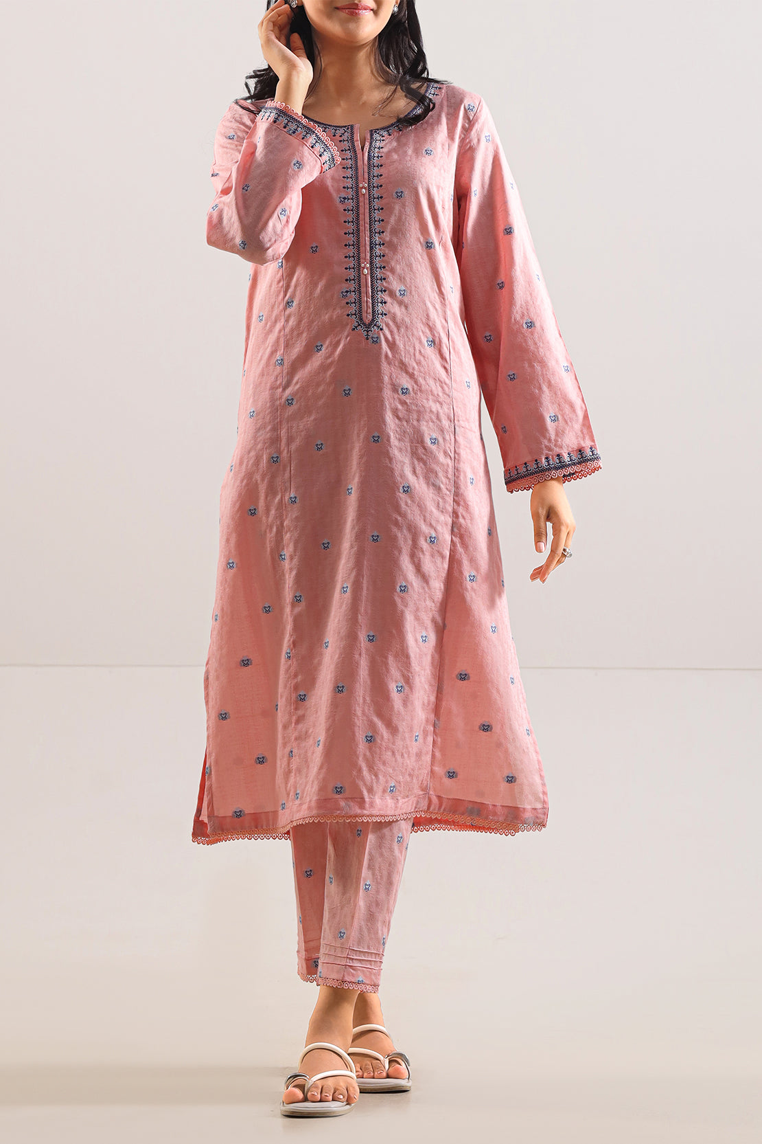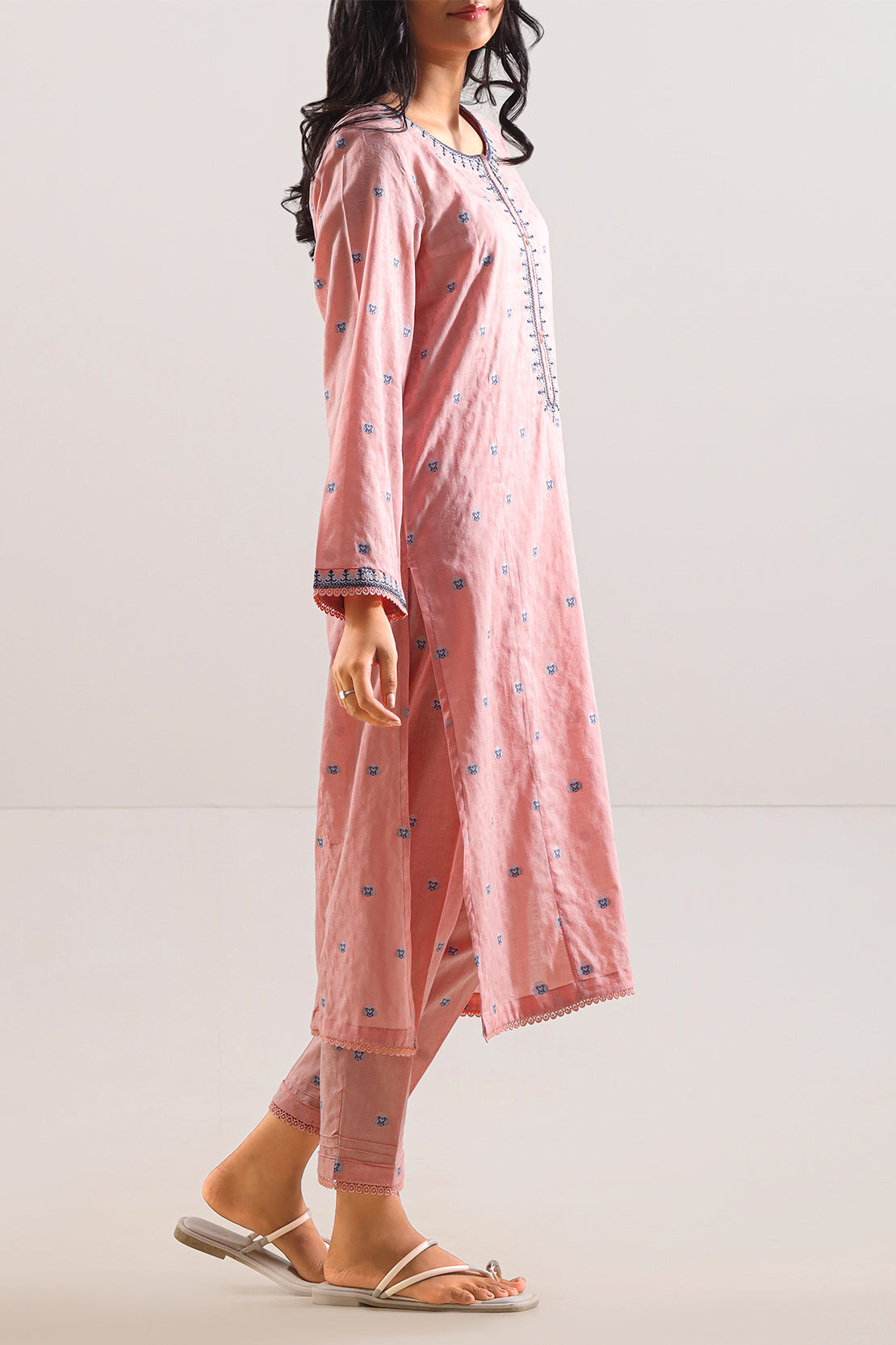 Solid Embroidered Cotton Stitched 2 Piece (Shirt/Trouser)