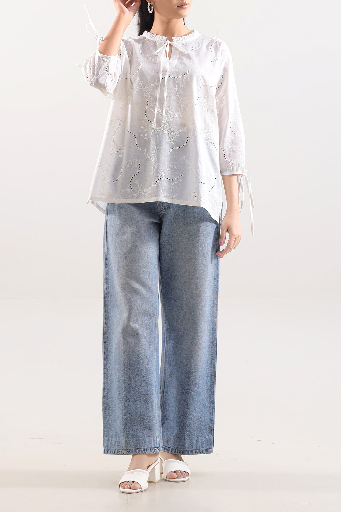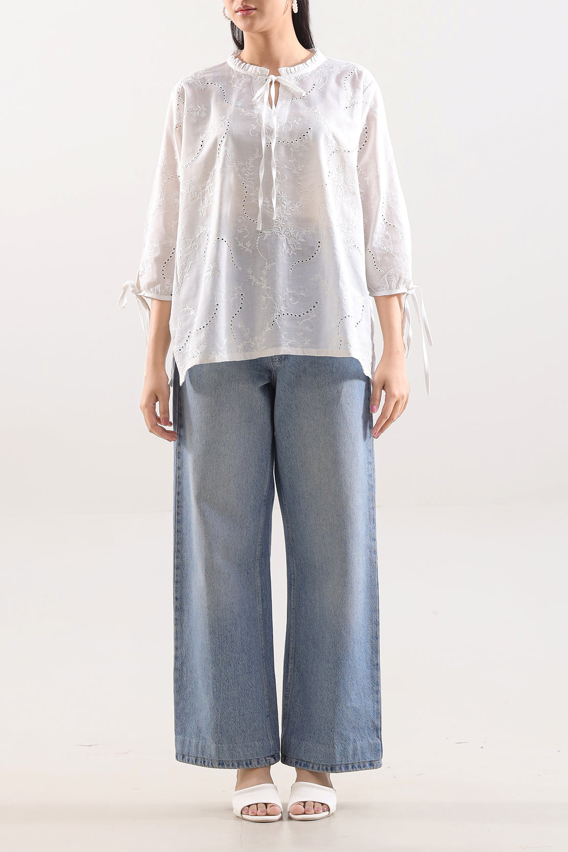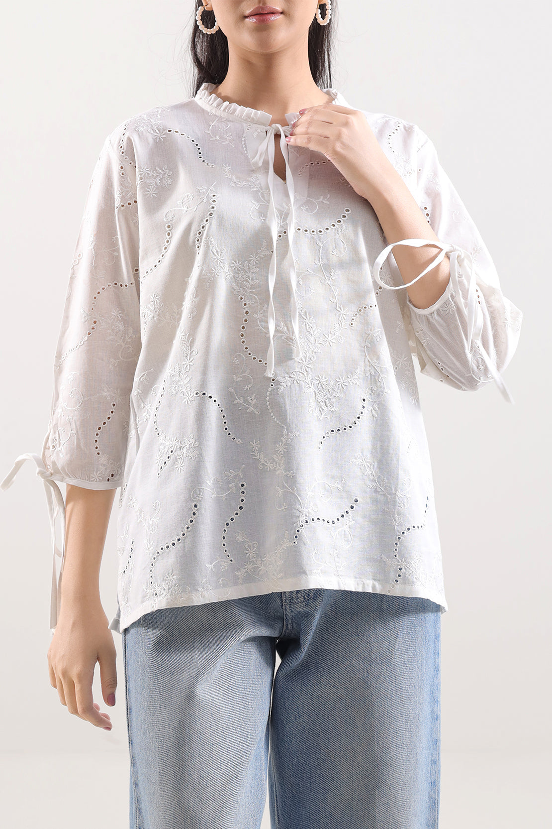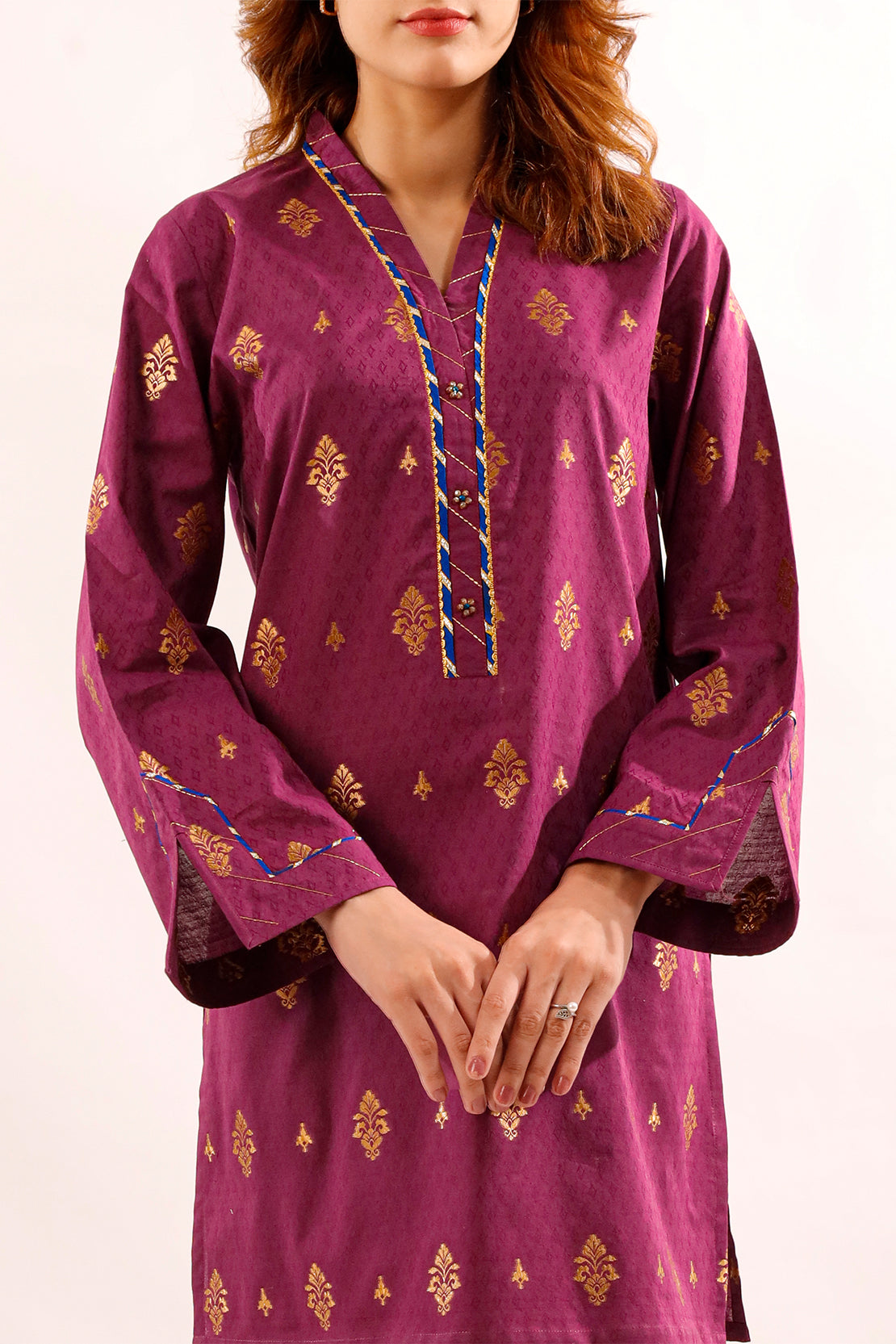 Embroidered Cotton Jacquard Stitched Fusion Tops