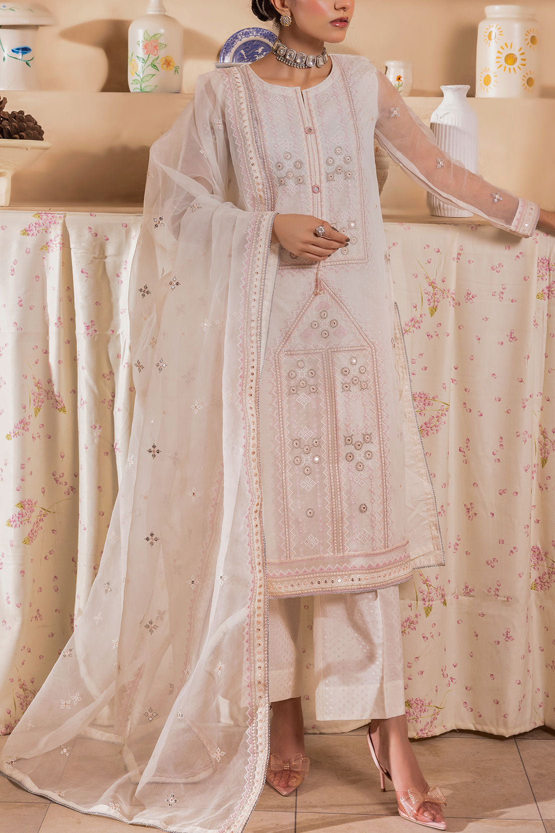 Luxury Pret Embroidered Cotton Jacquard Stitched 3 Piece