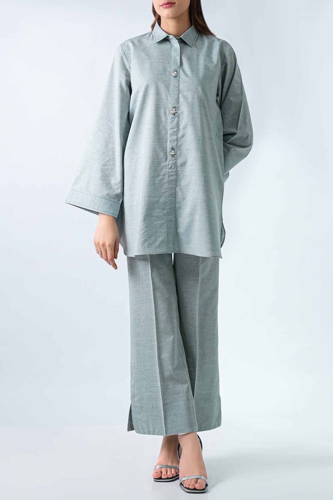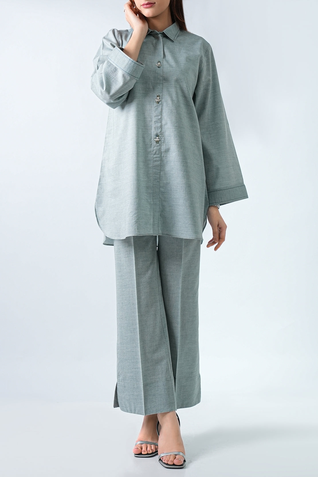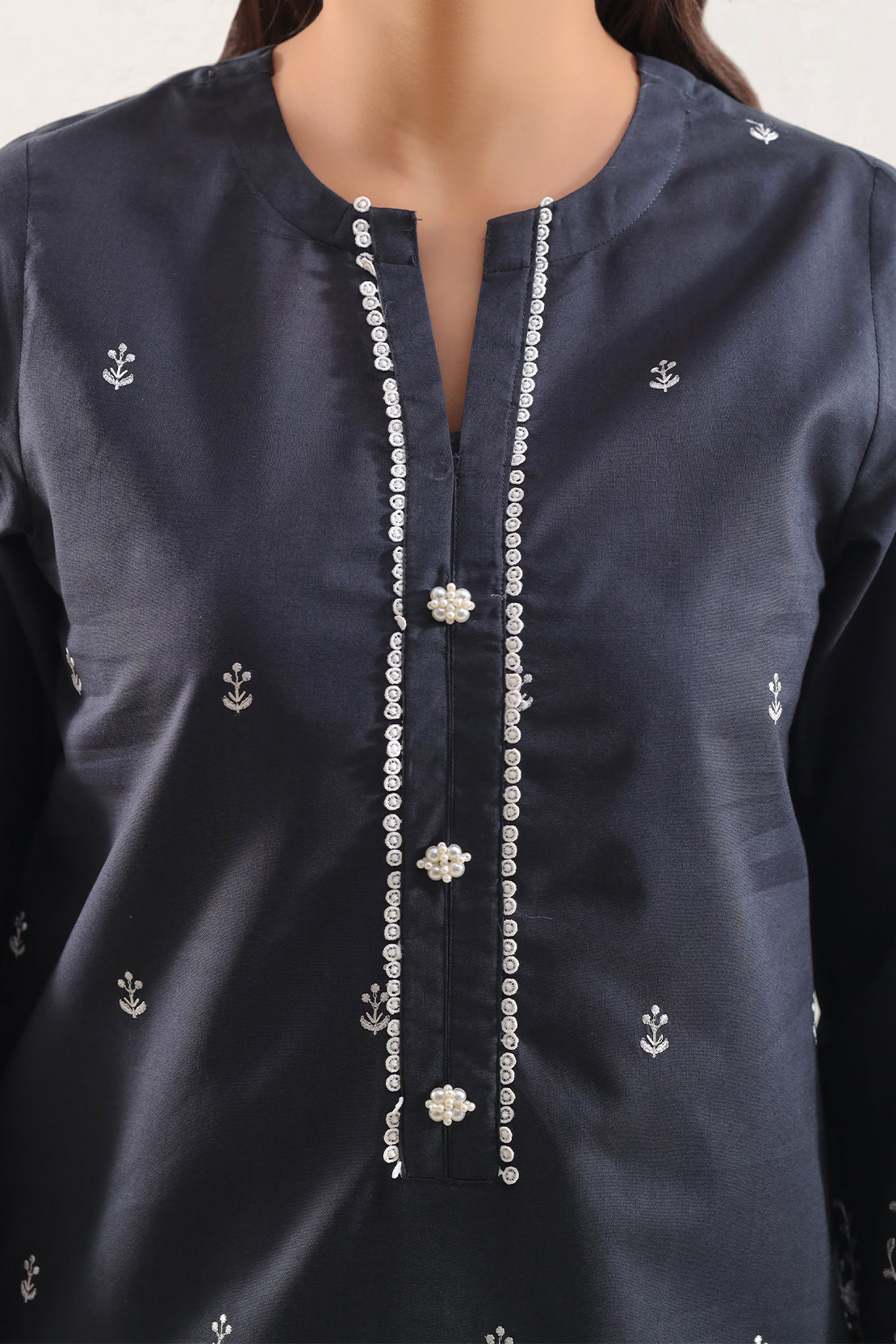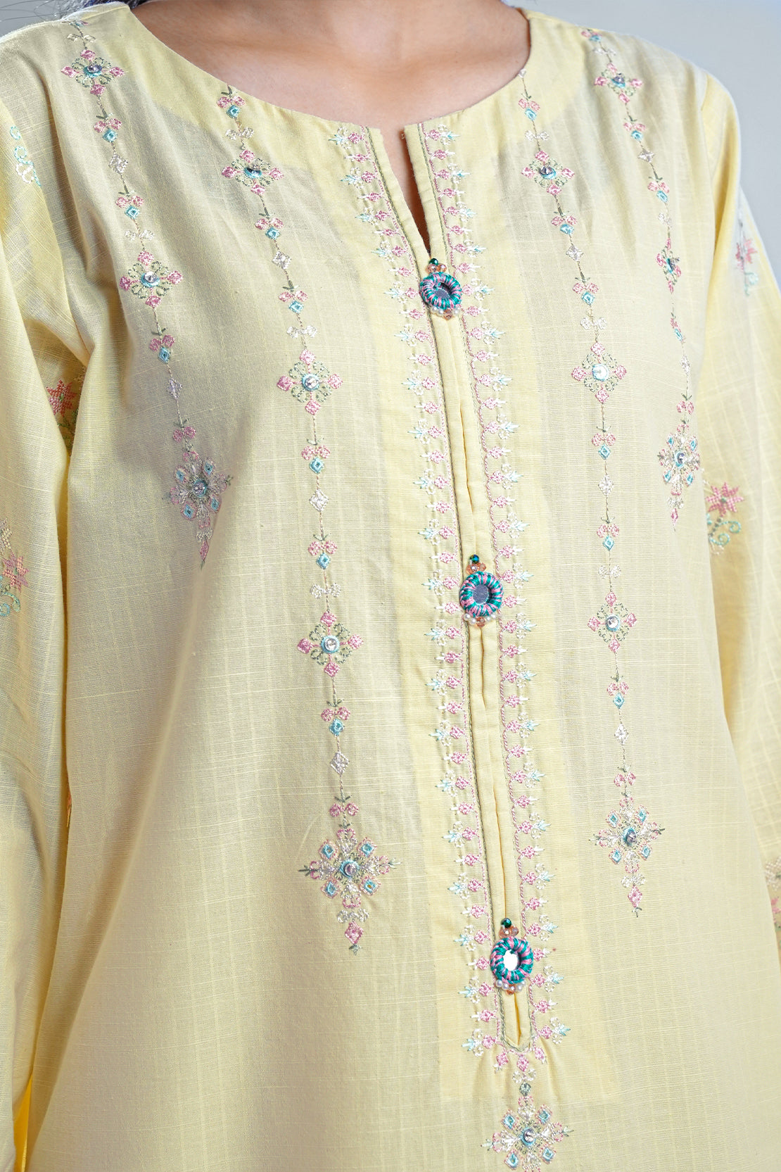 Solid Embroidered Slub Viscose Stitched 2 Piece (Shirt/Trouser)