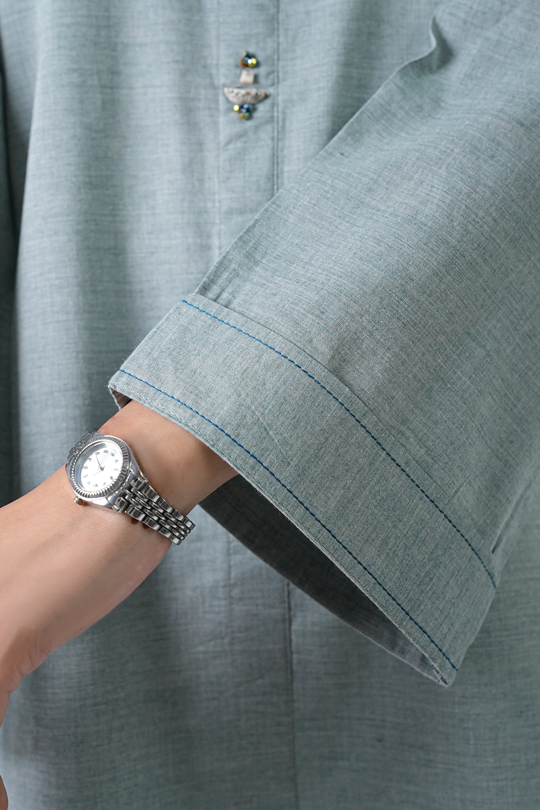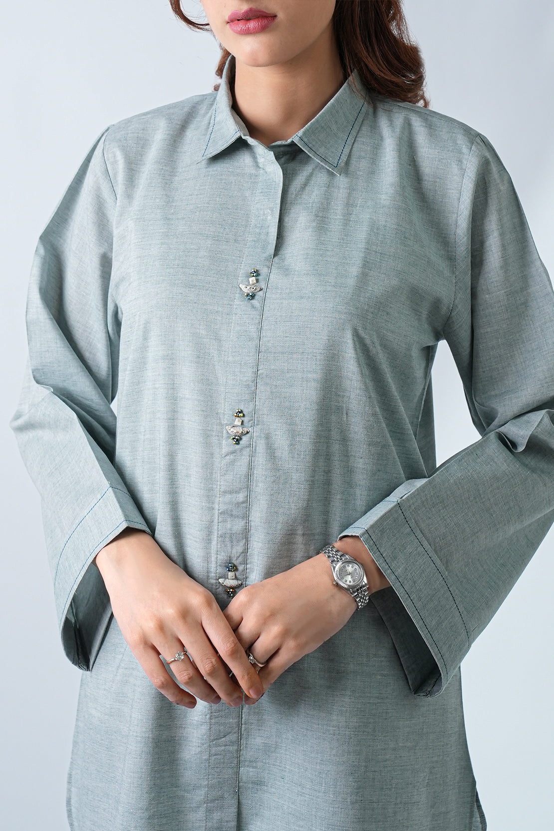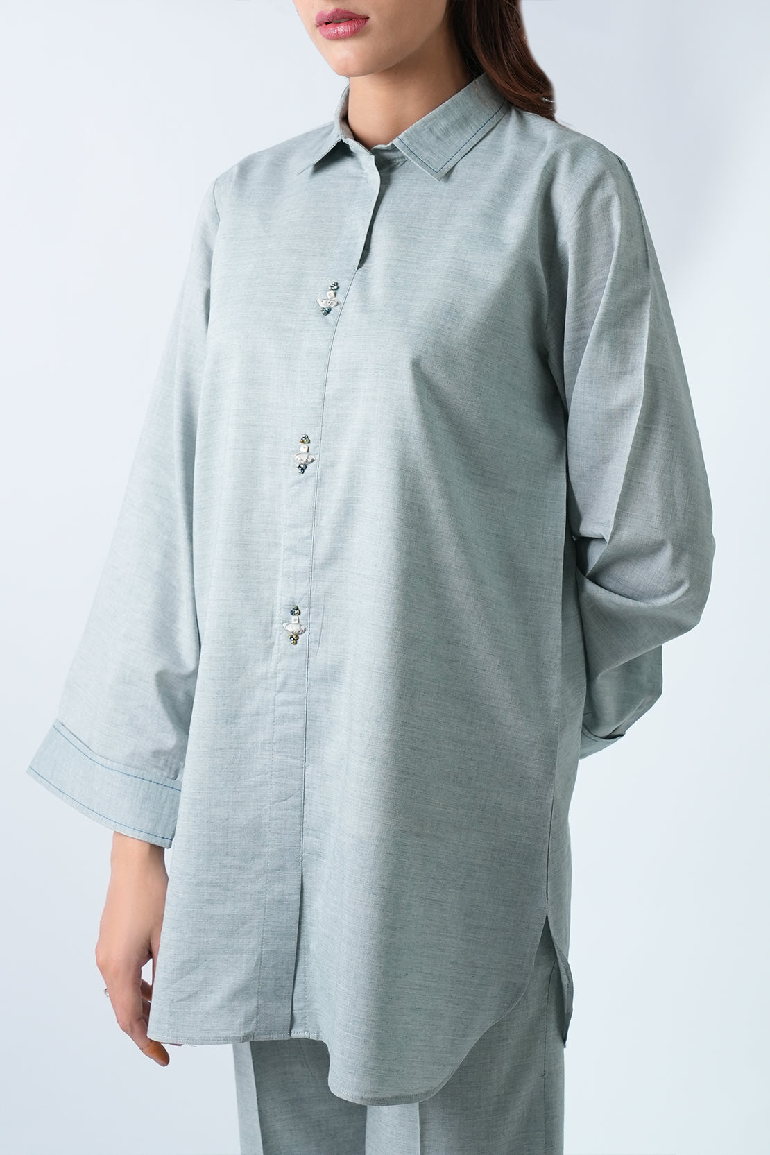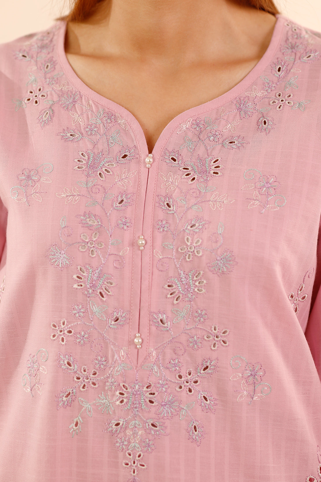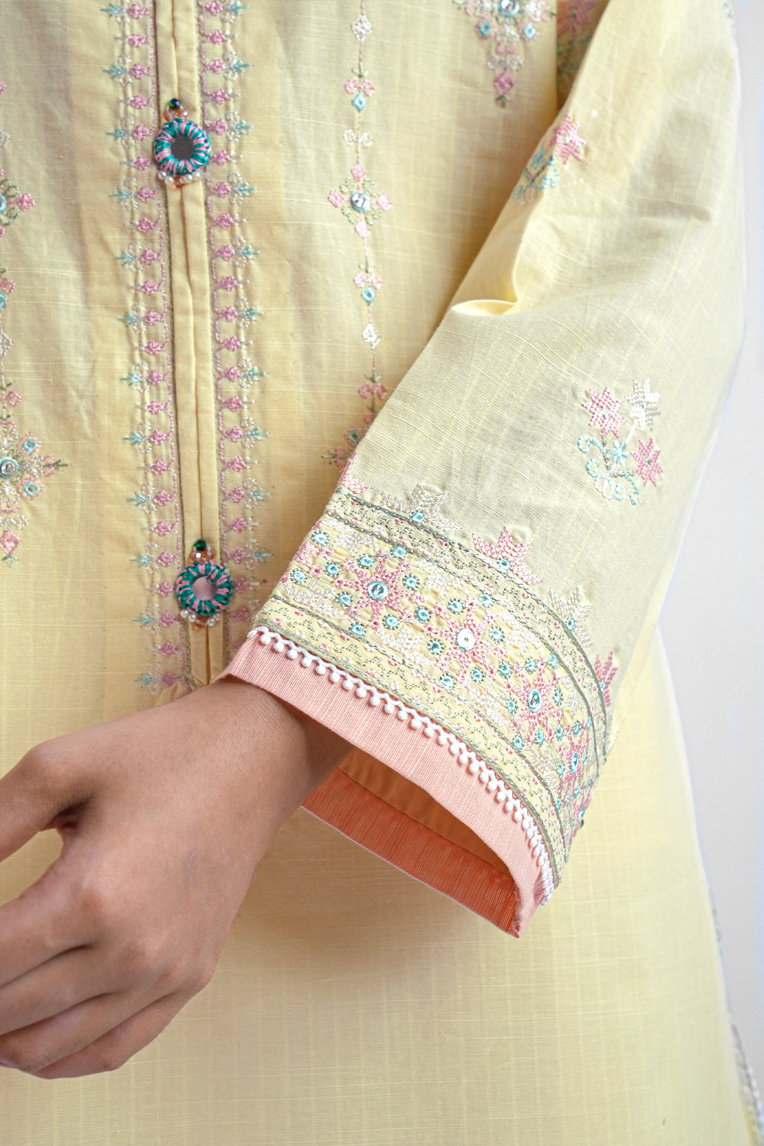 Solid Embroidered Slub Viscose Stitched 2 Piece (Shirt/Trouser)