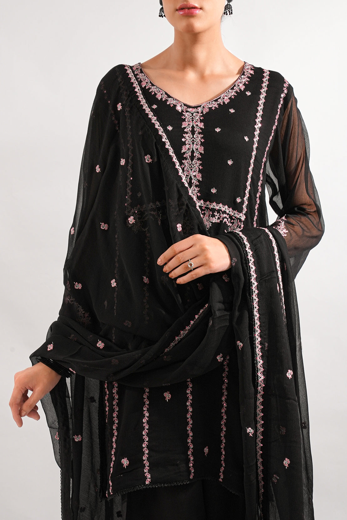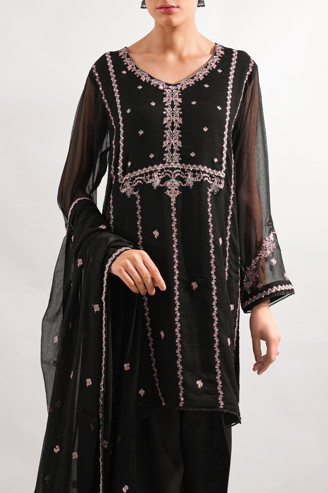 Solid Embroidered Dobby Crepe Stitched 2 Piece (Shirt/Trouser)