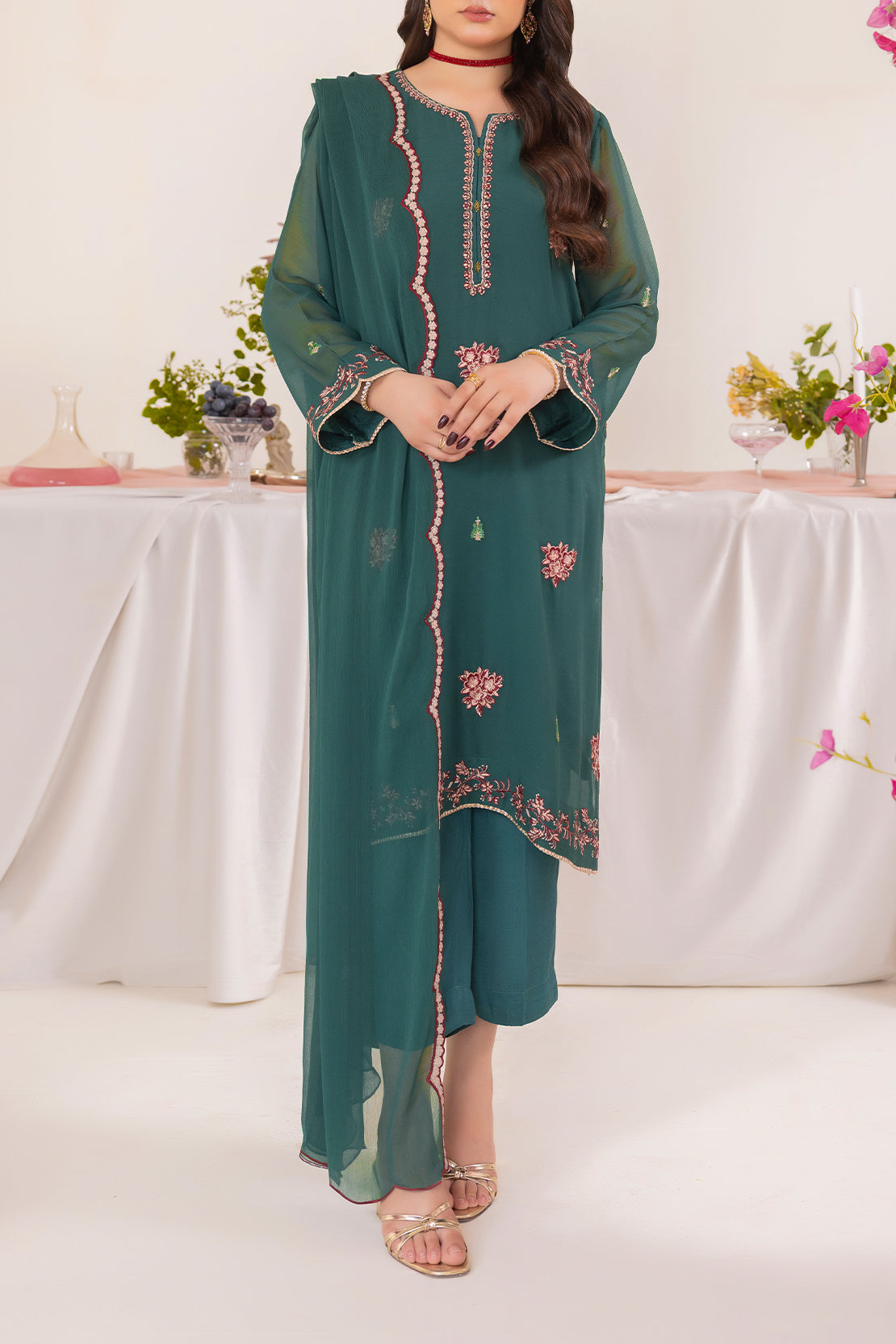 Solid Embroidered Cotton Viscose Stitched 3 Piece