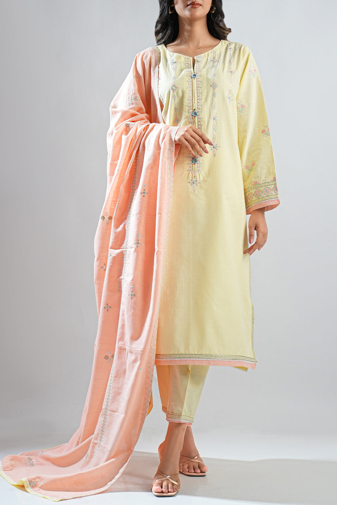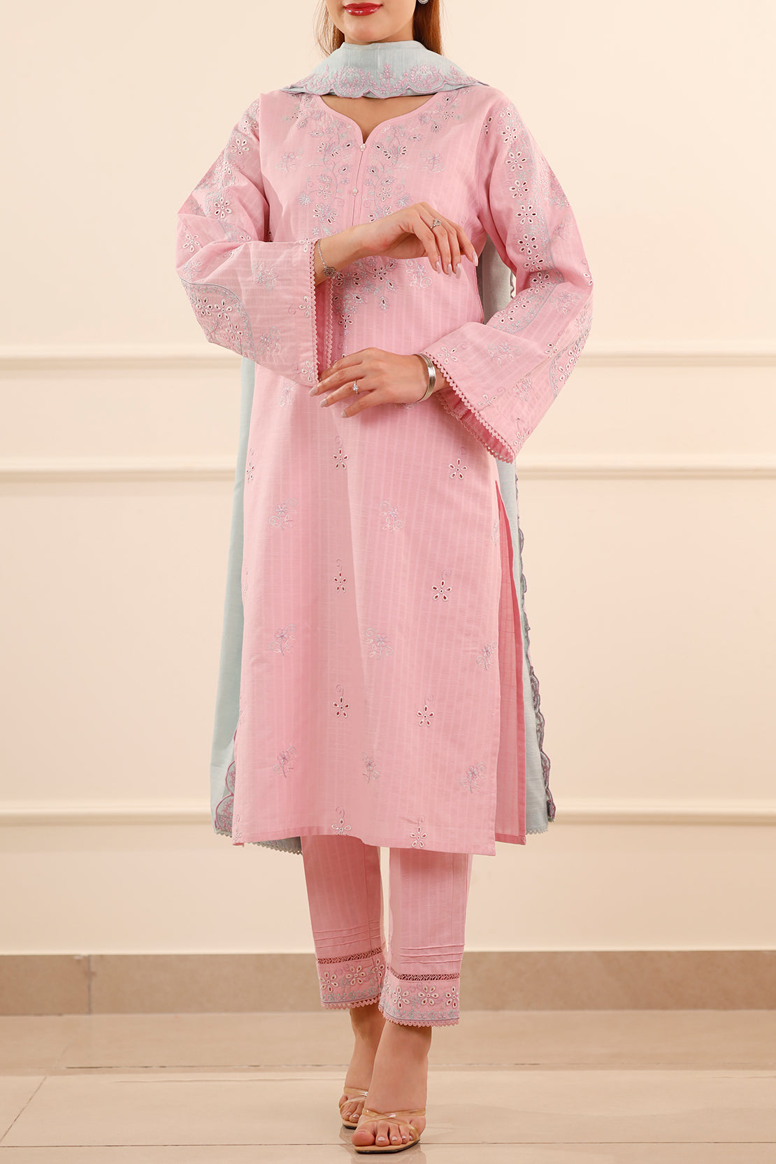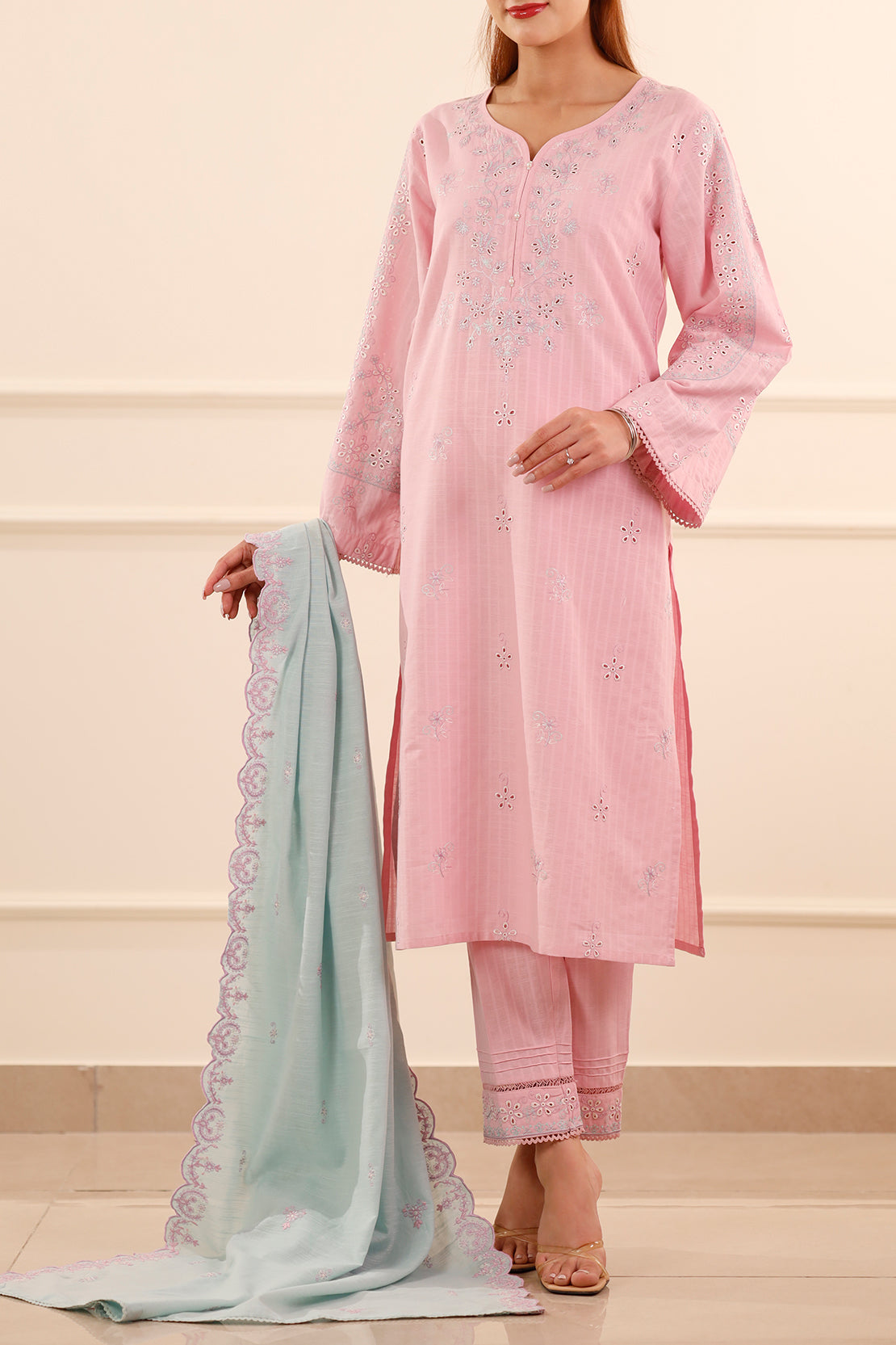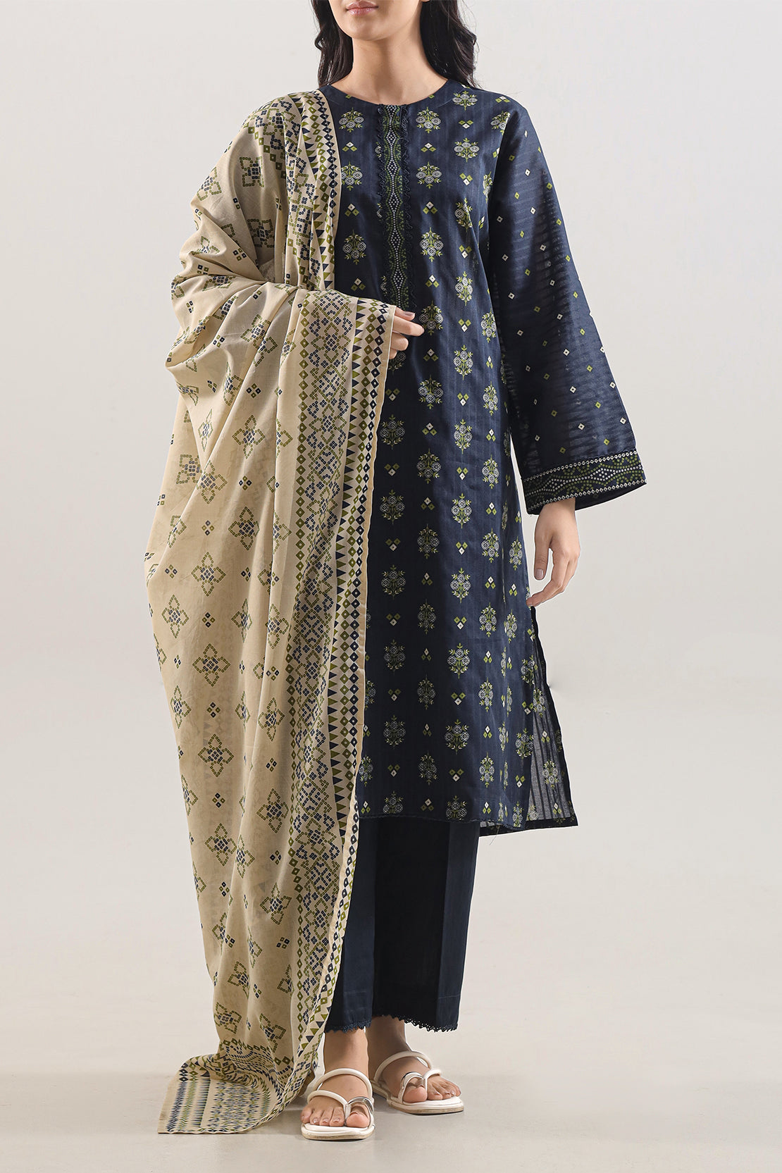 Embroidered Cotton Jacquard Stitched 3 Piece