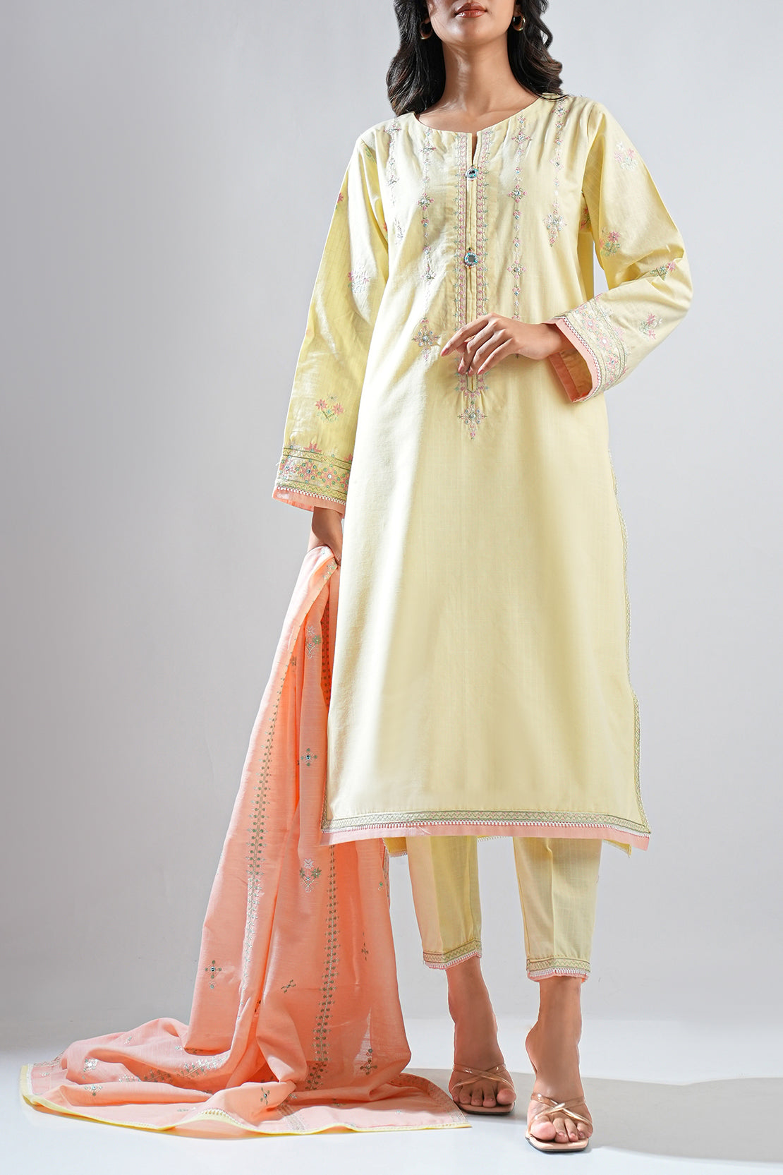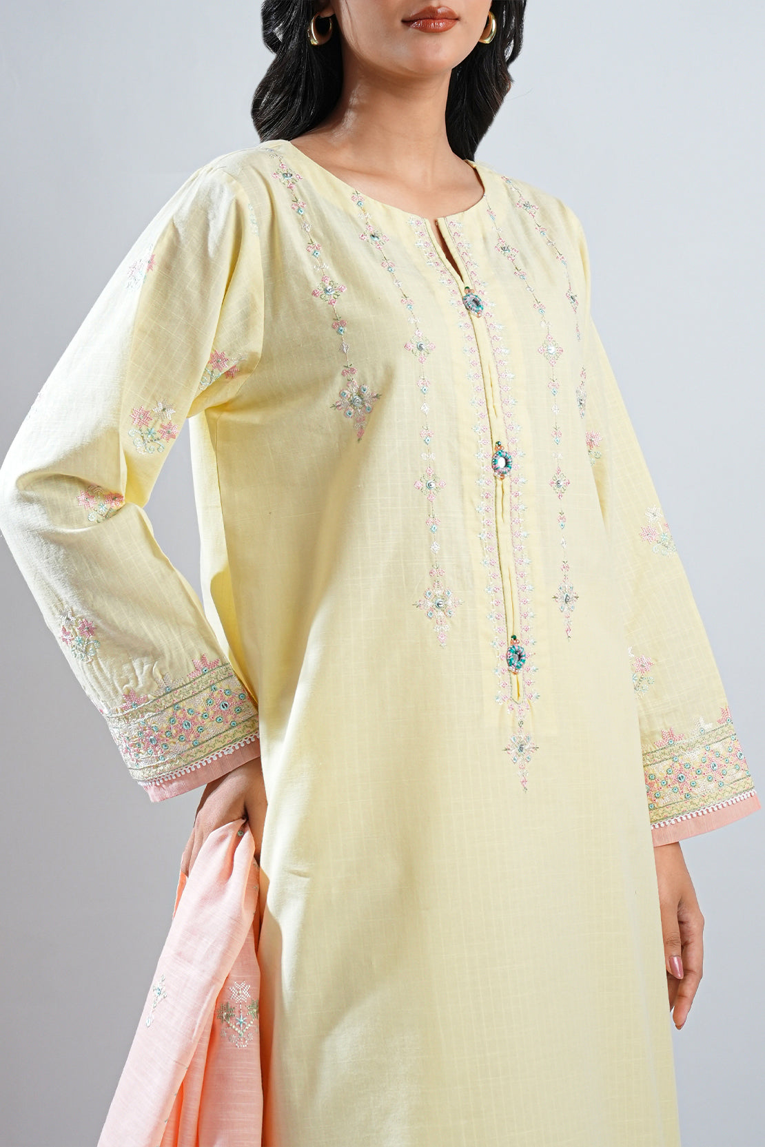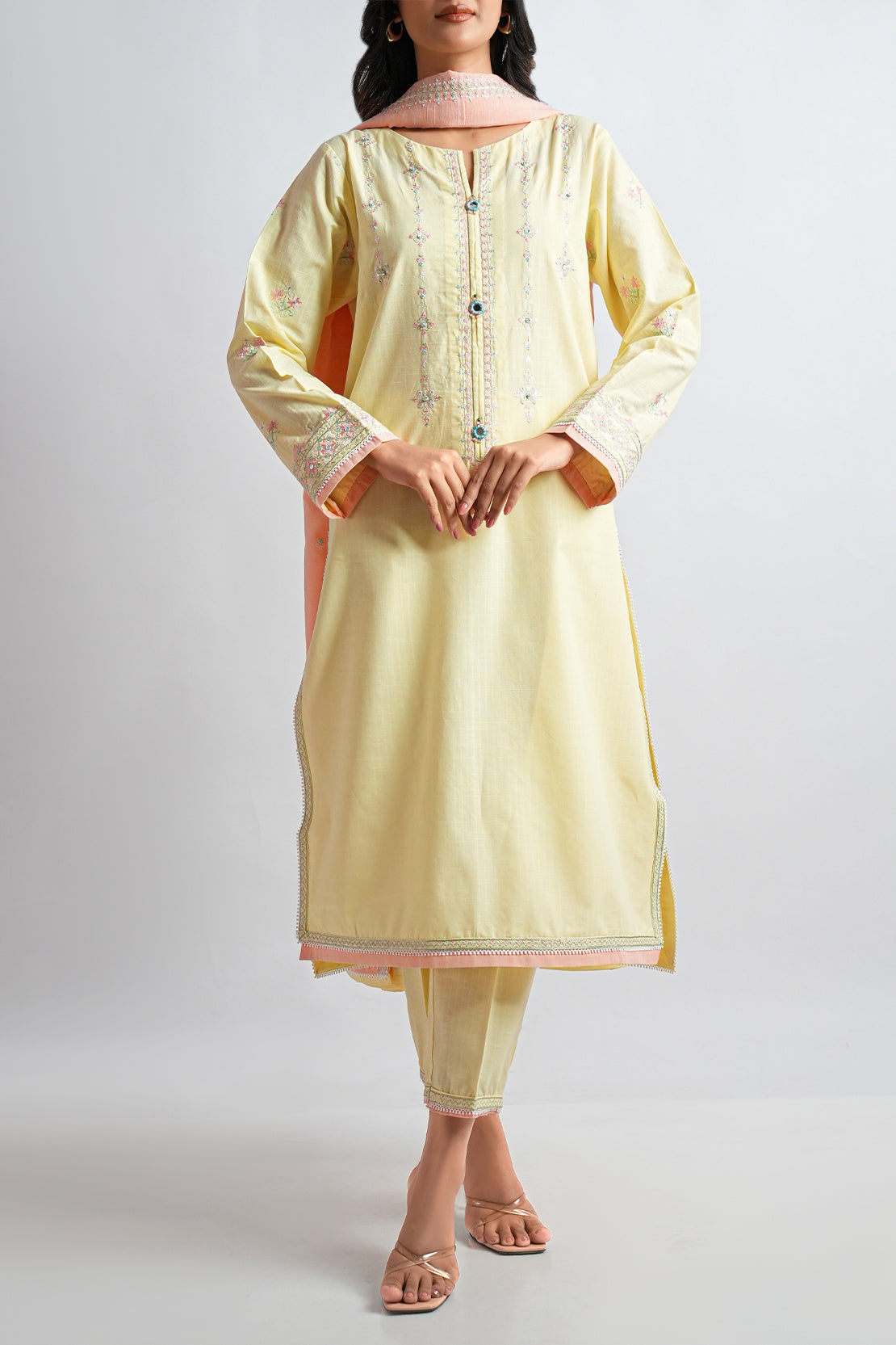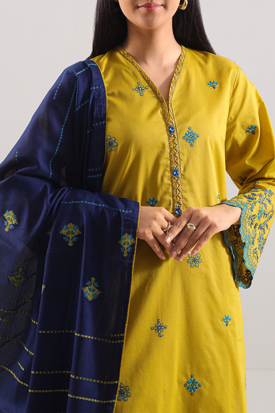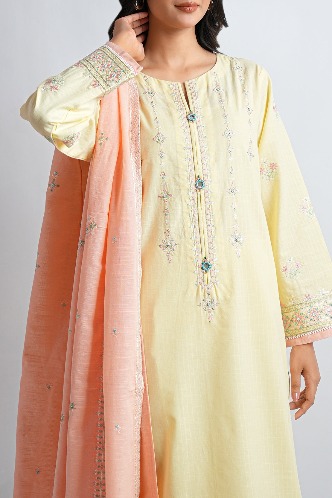 Embroidered Cotton Jacquard Stitched 3 Piece