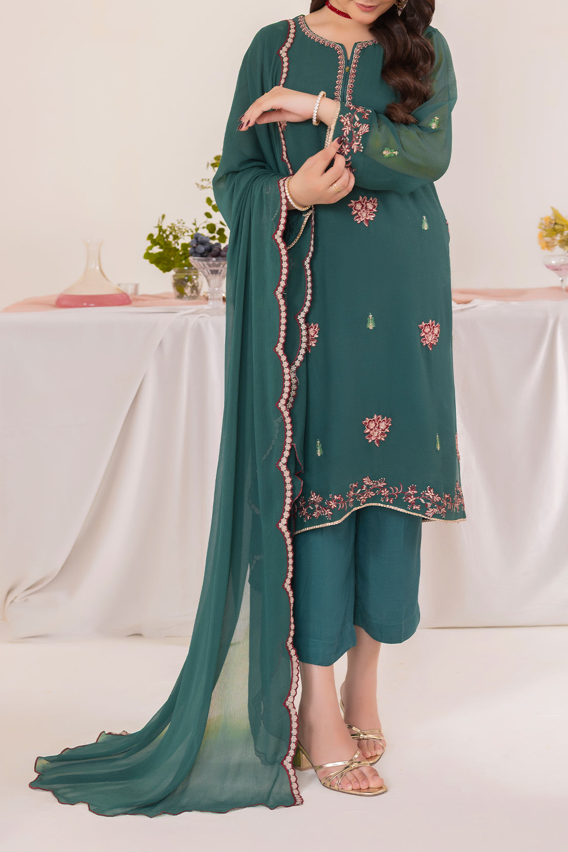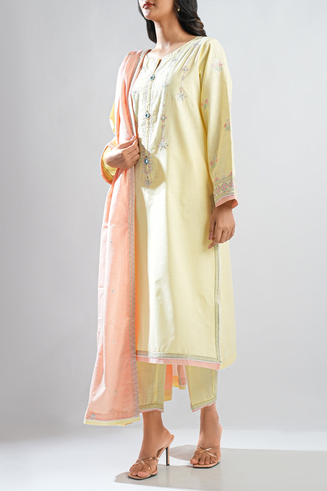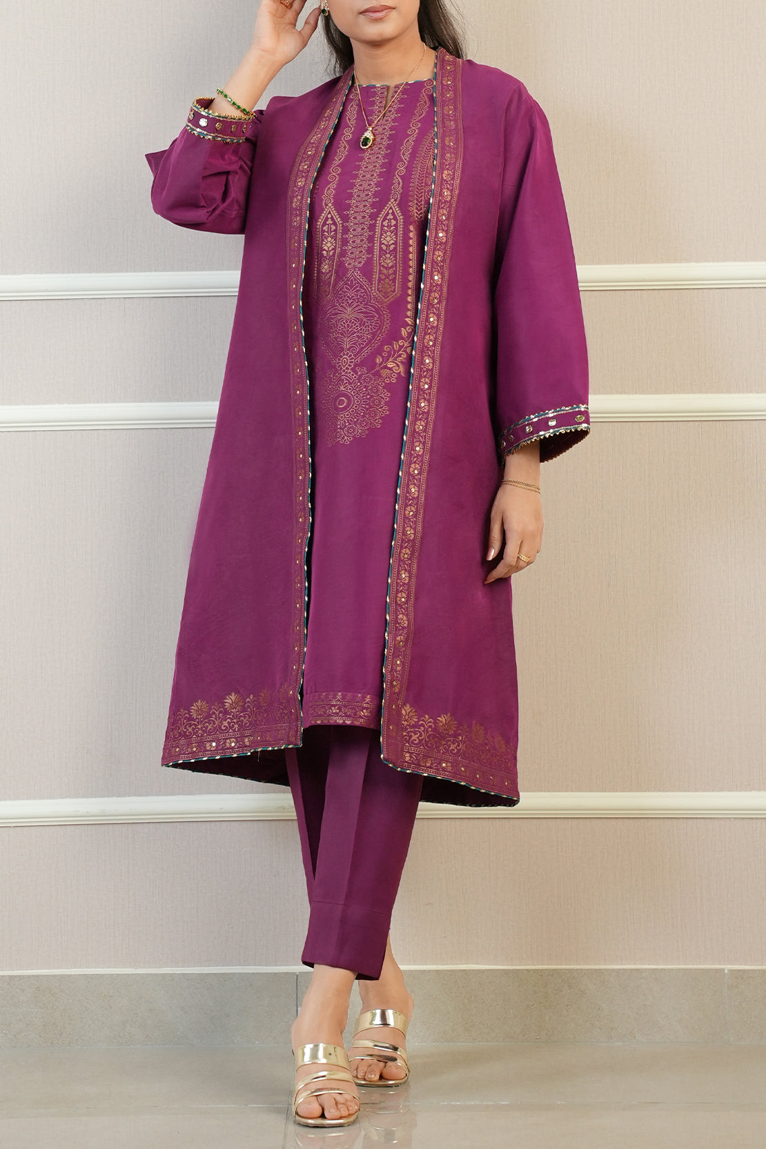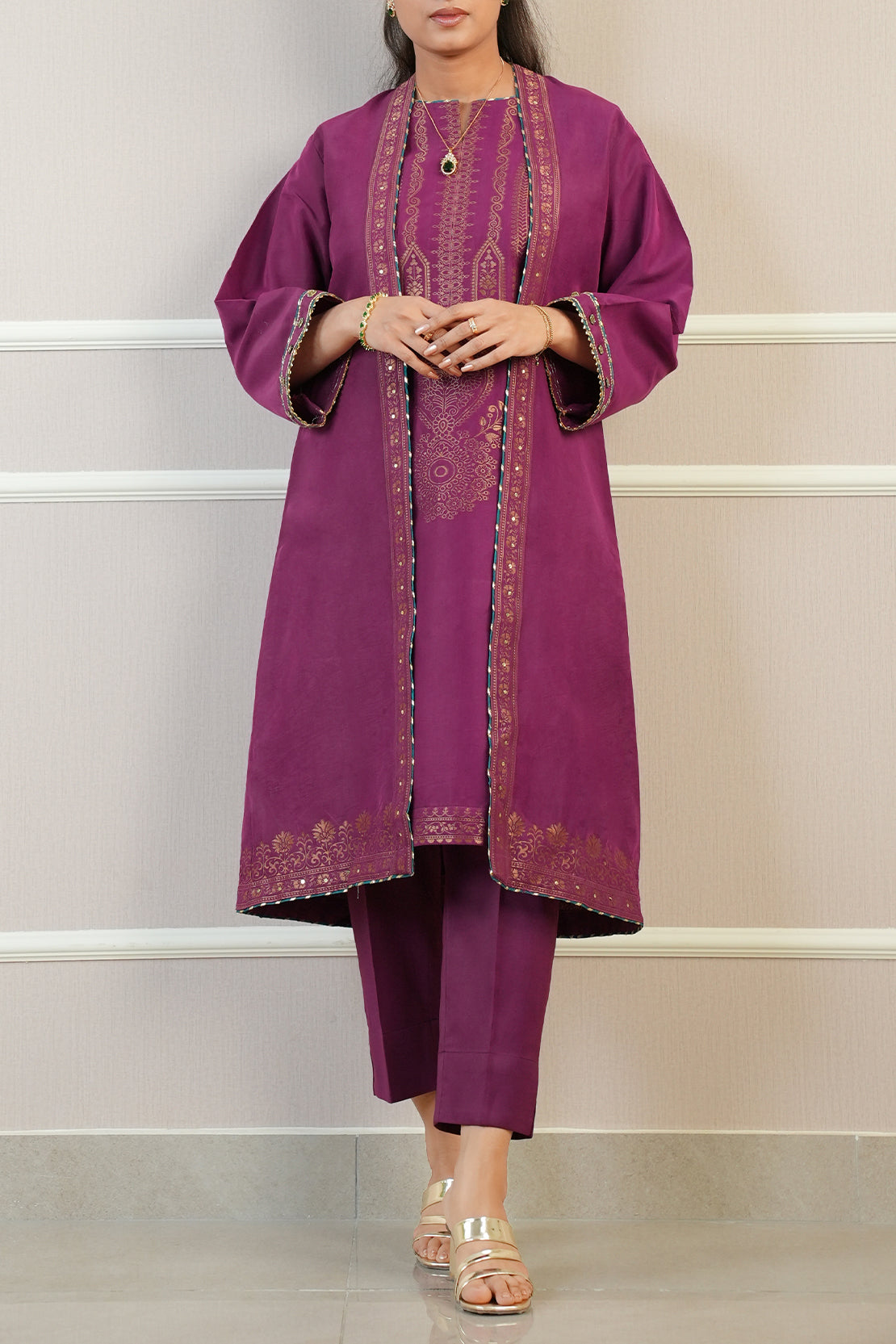 Embroidered Cotton Jacquard Stitched 3 Piece