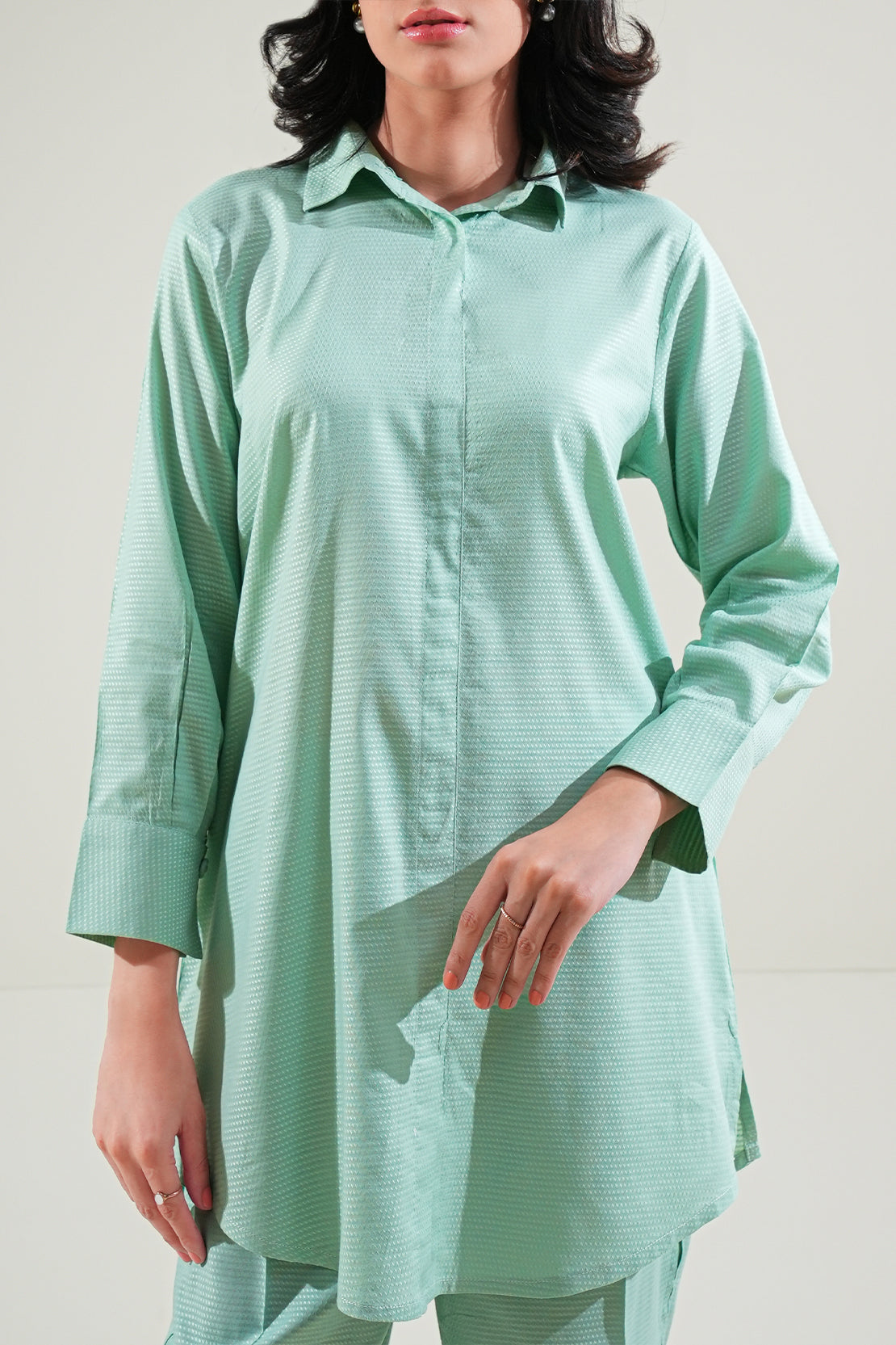 Solid + Embroidered Reverse Jacquard Stitched Shirt
