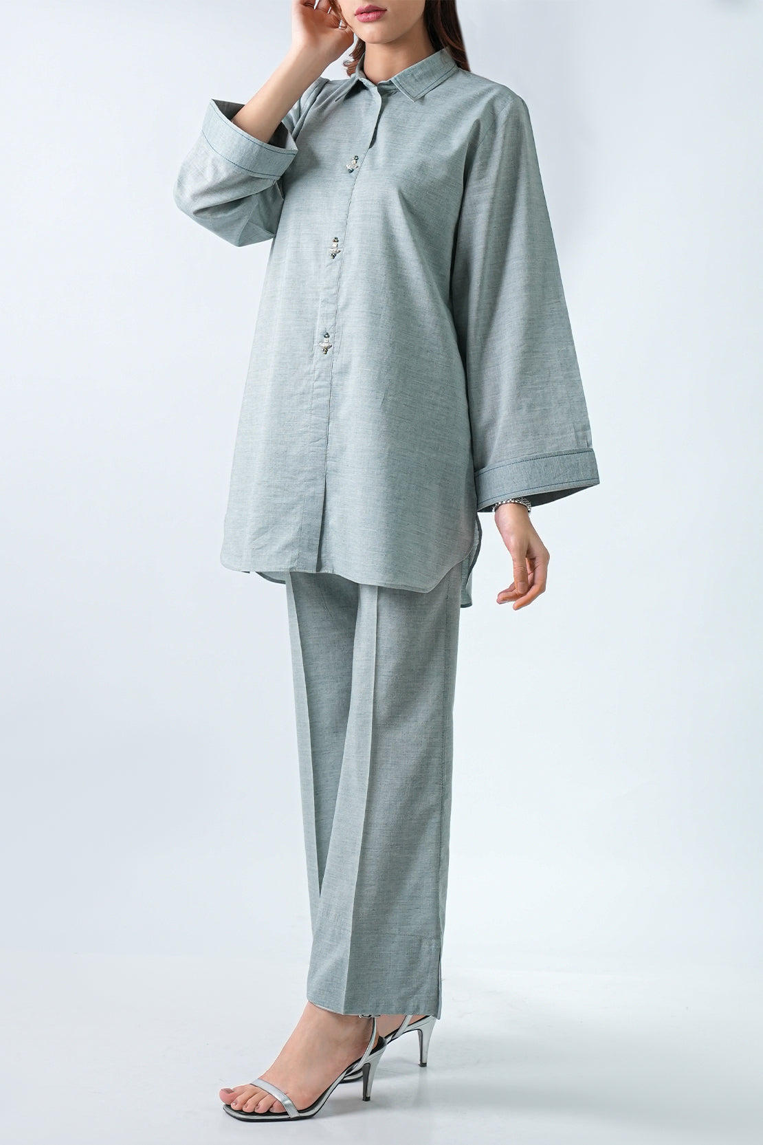 Solid Acrylic Stitched Shirt/Trouser 2 Piece