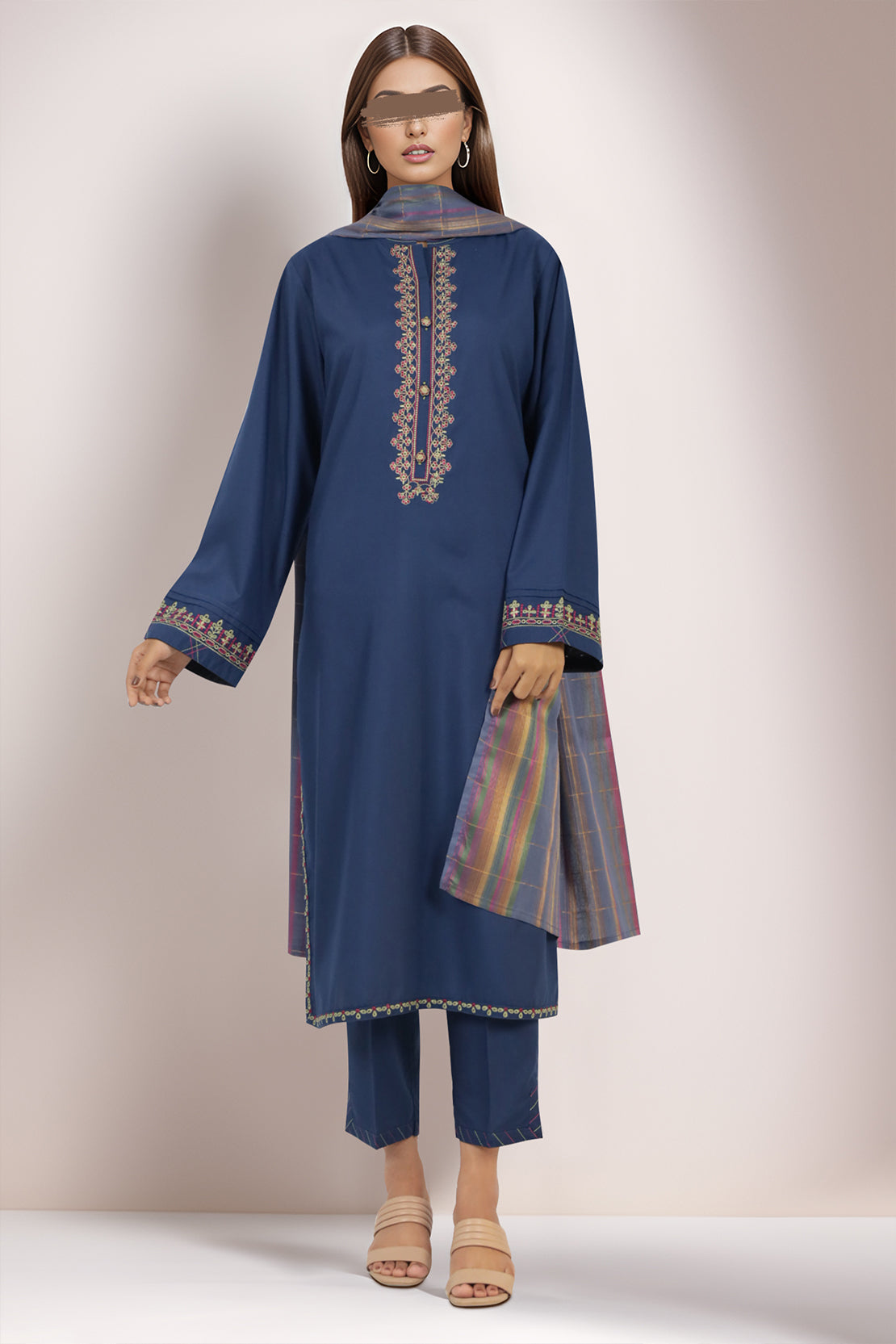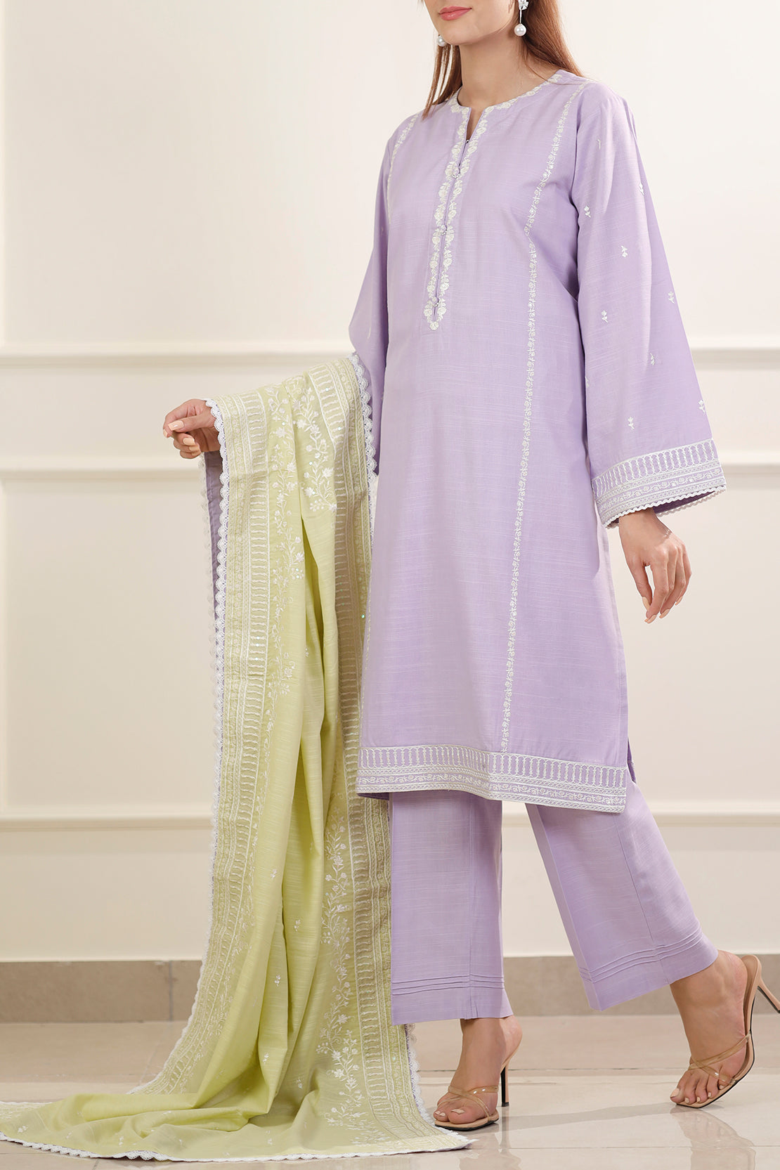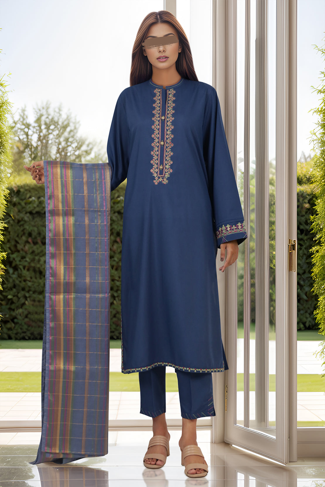 Solid+Emb Khaddar Stitched 2 Piece (Shirt/Trouser)