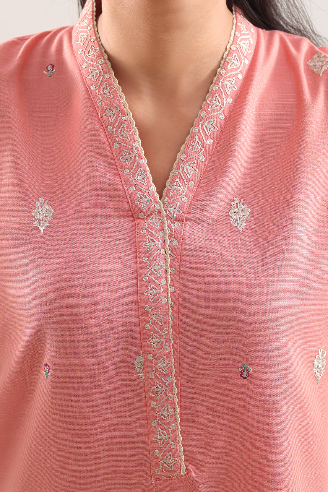 Solid Embroidered Slub Viscose Stitched 2 Piece (Shirt/Trouser)