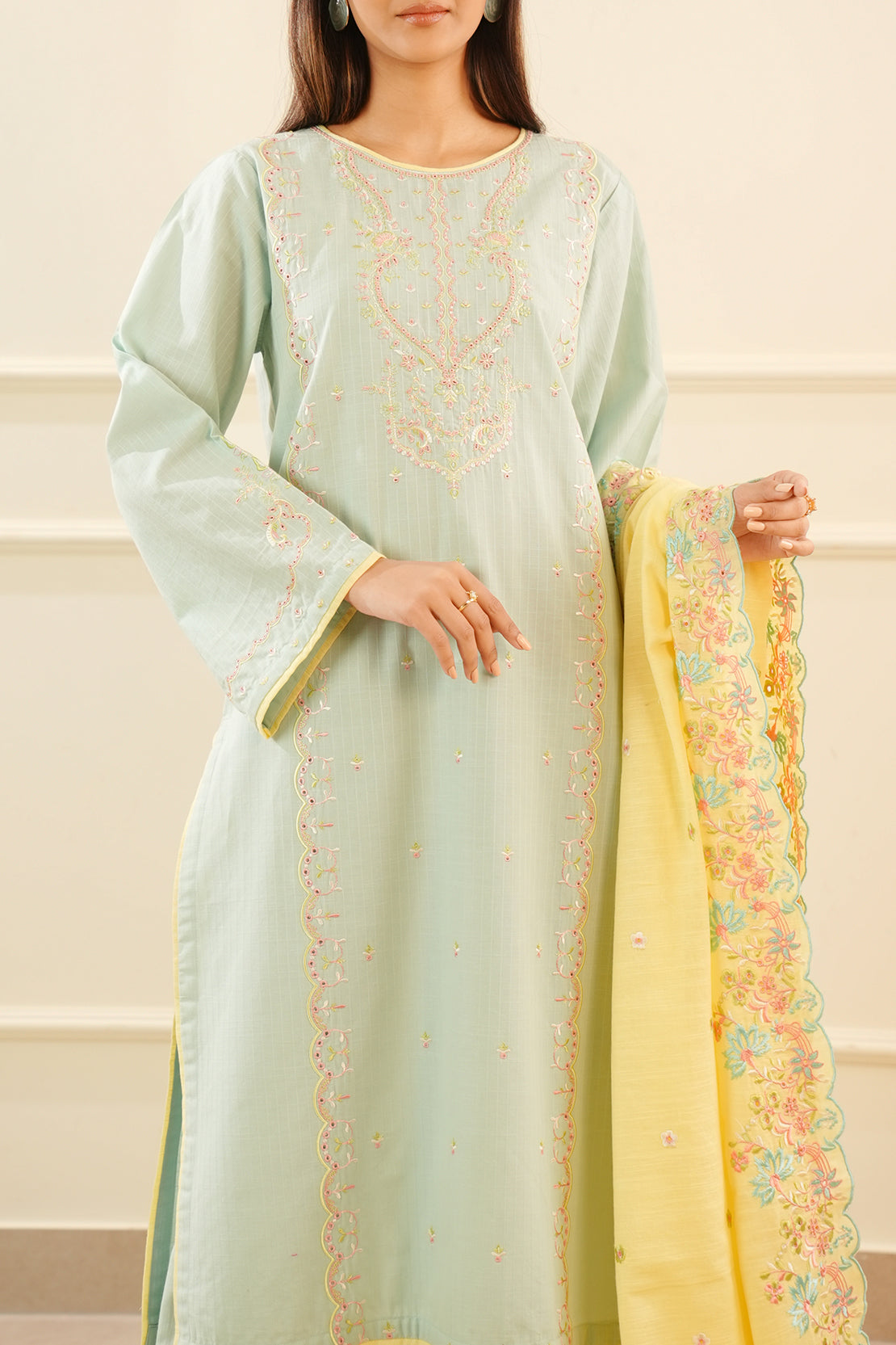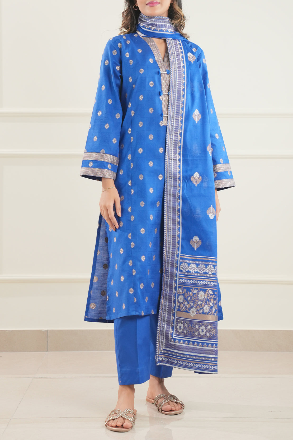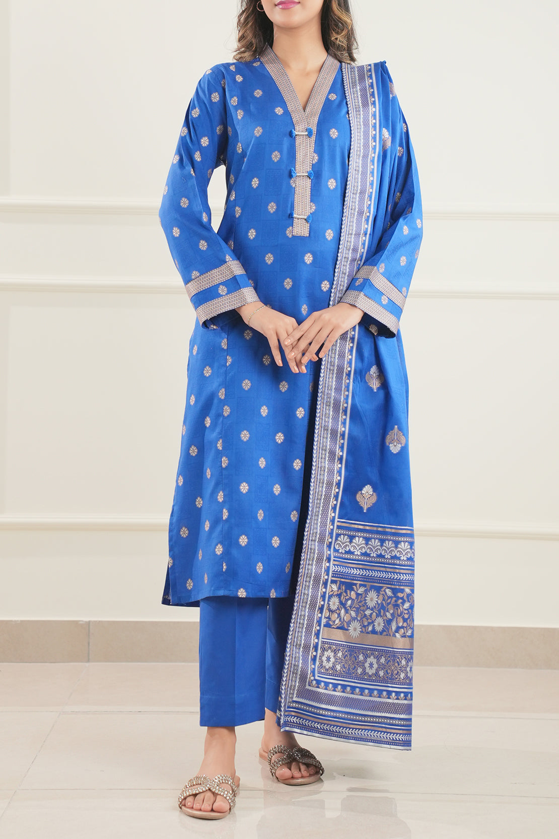 Embroidered Cotton Jacquard Stitched 3 Piece