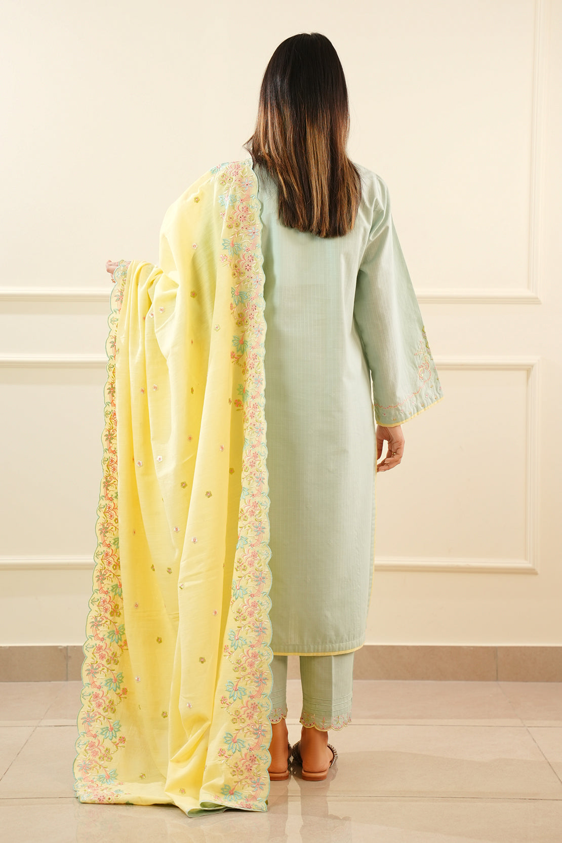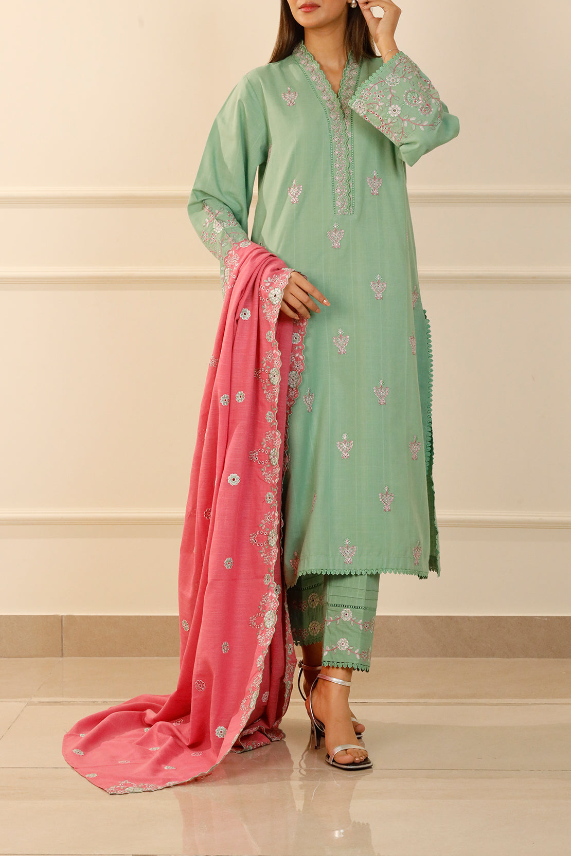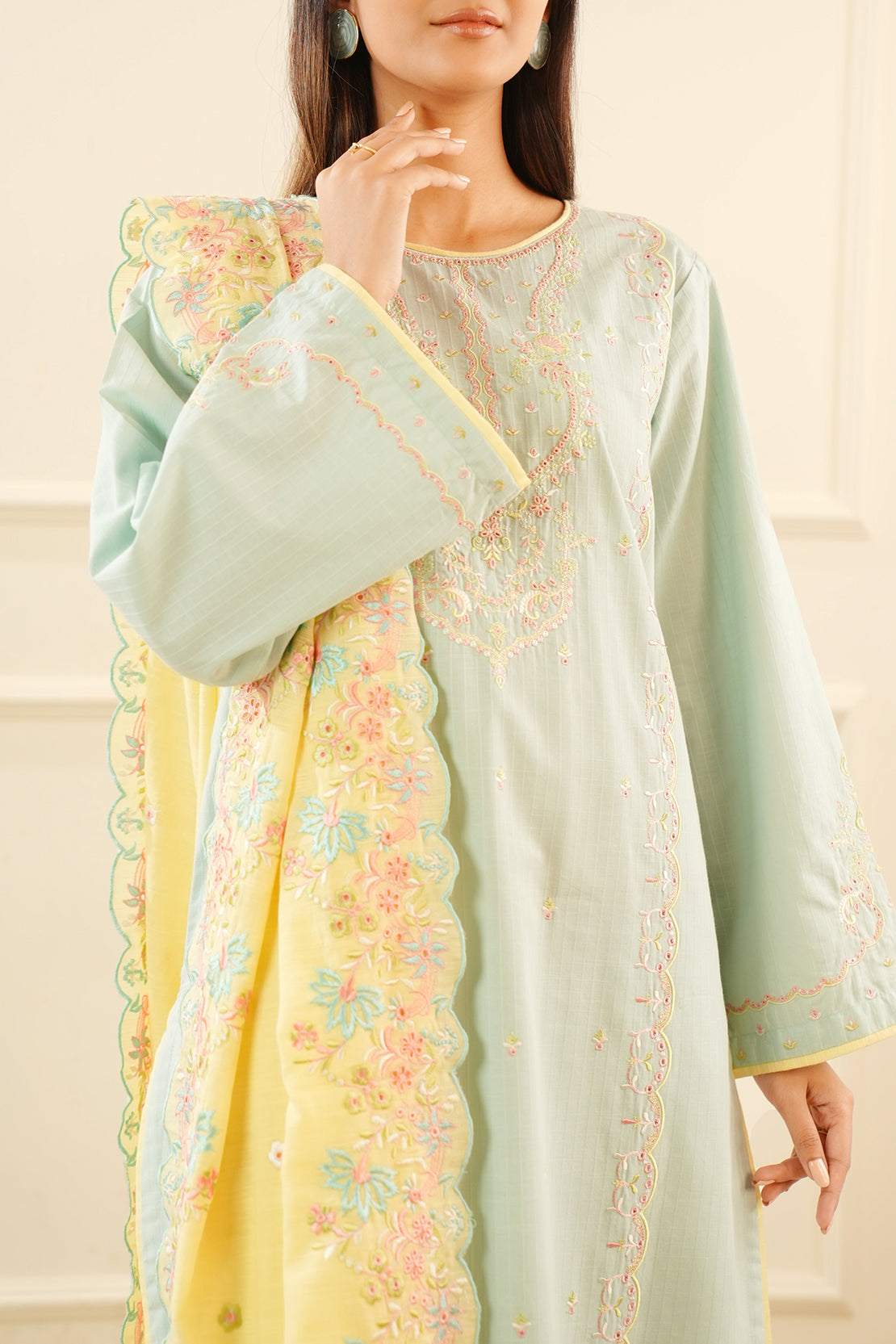 Embroidered Cotton Jacquard Stitched 3 Piece
