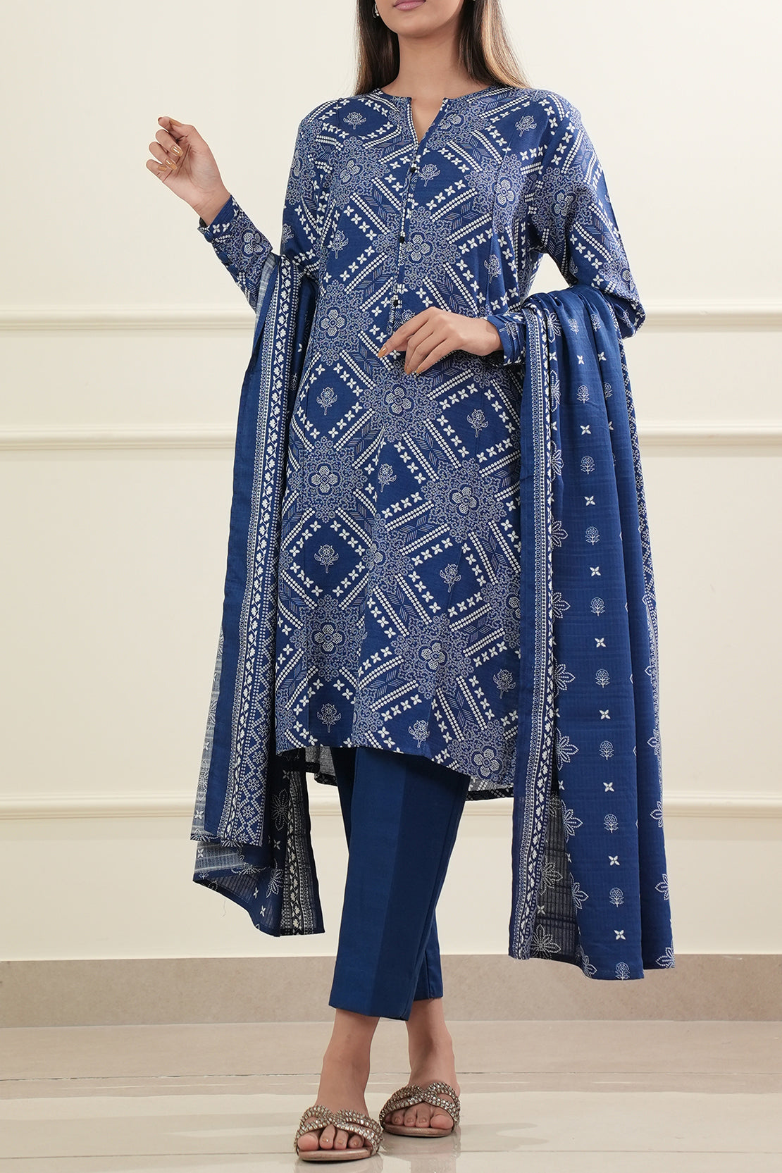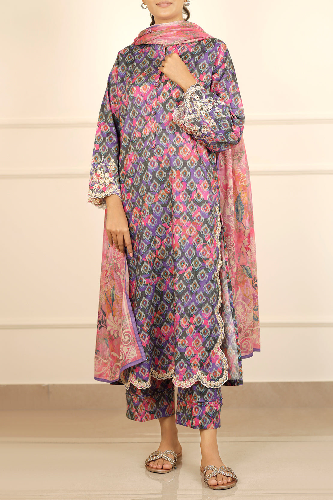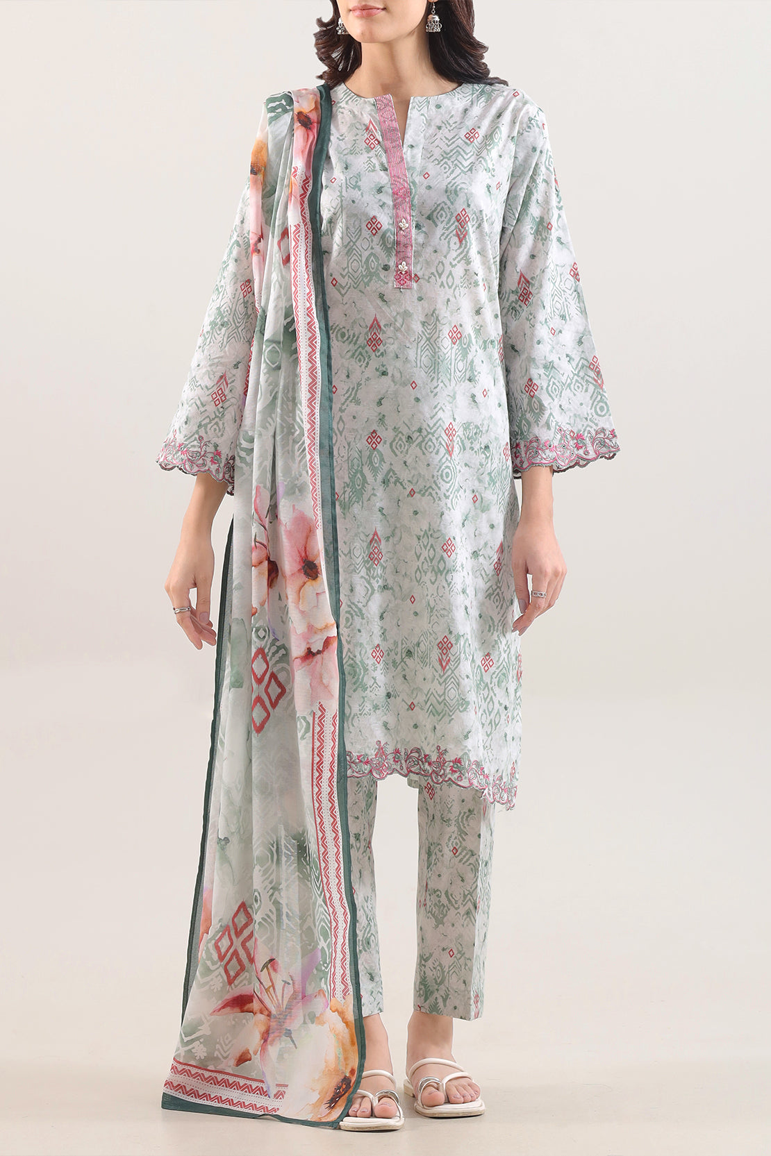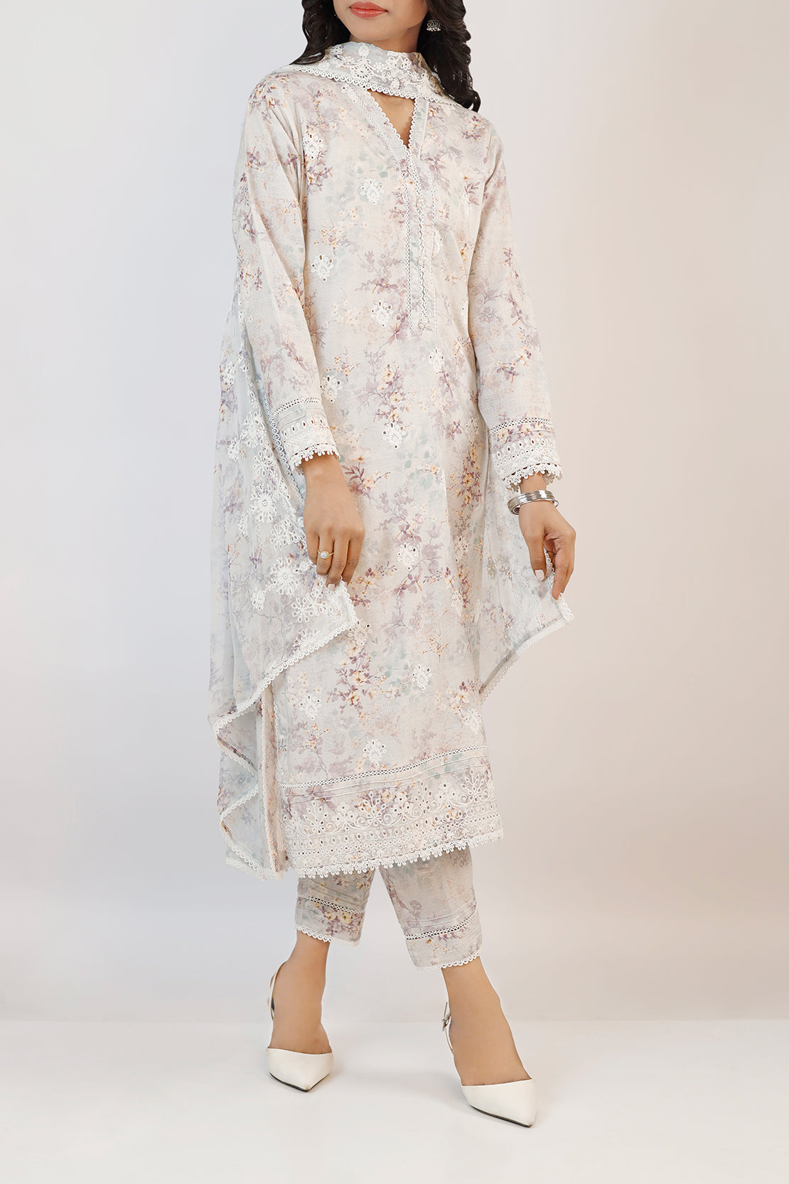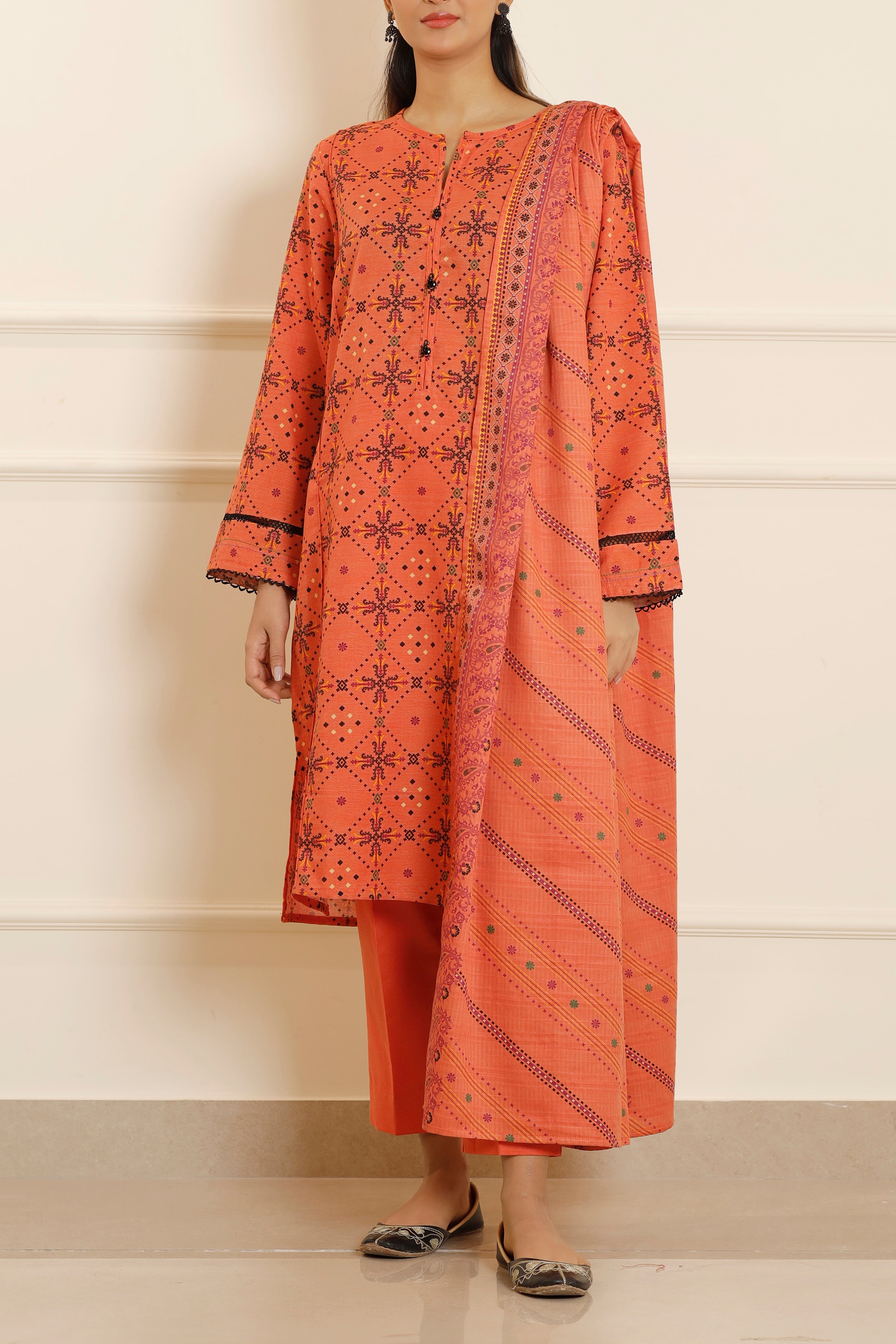 Printed Embroidered Cotton Jacquard Stitched 3 Piece