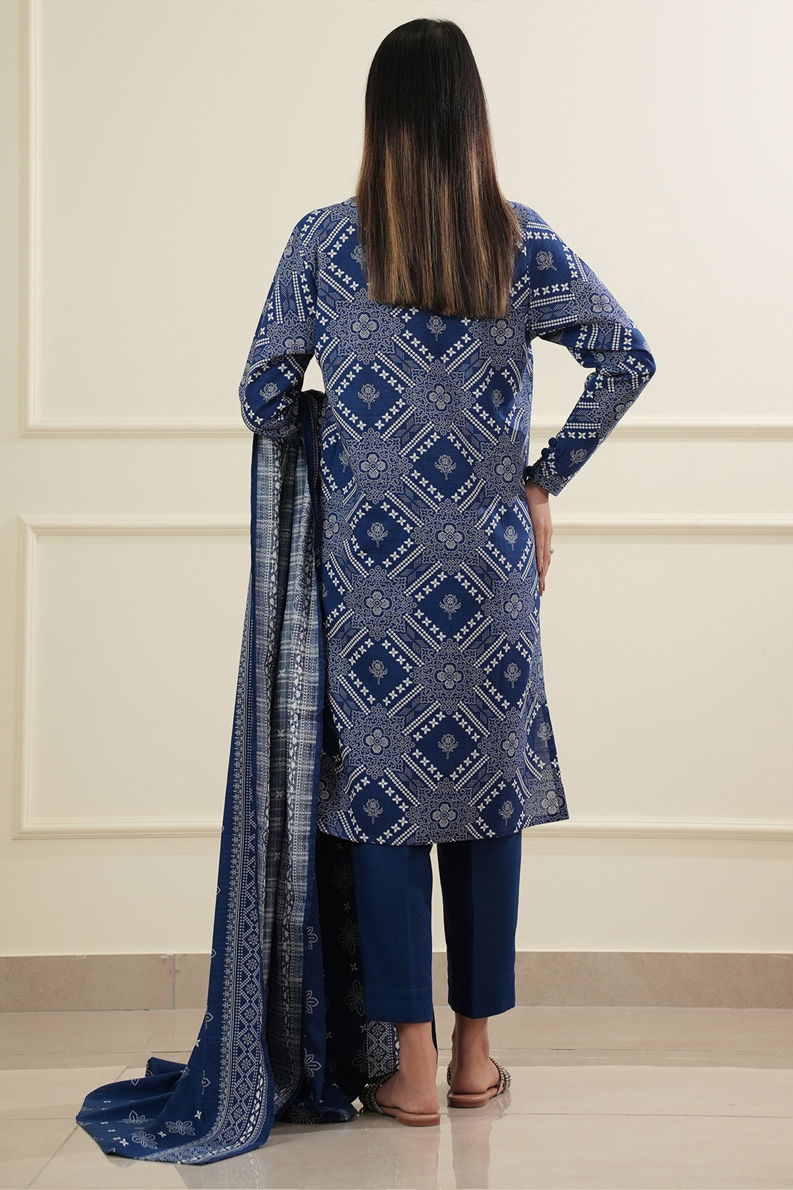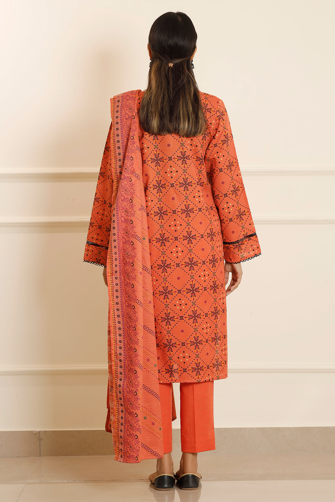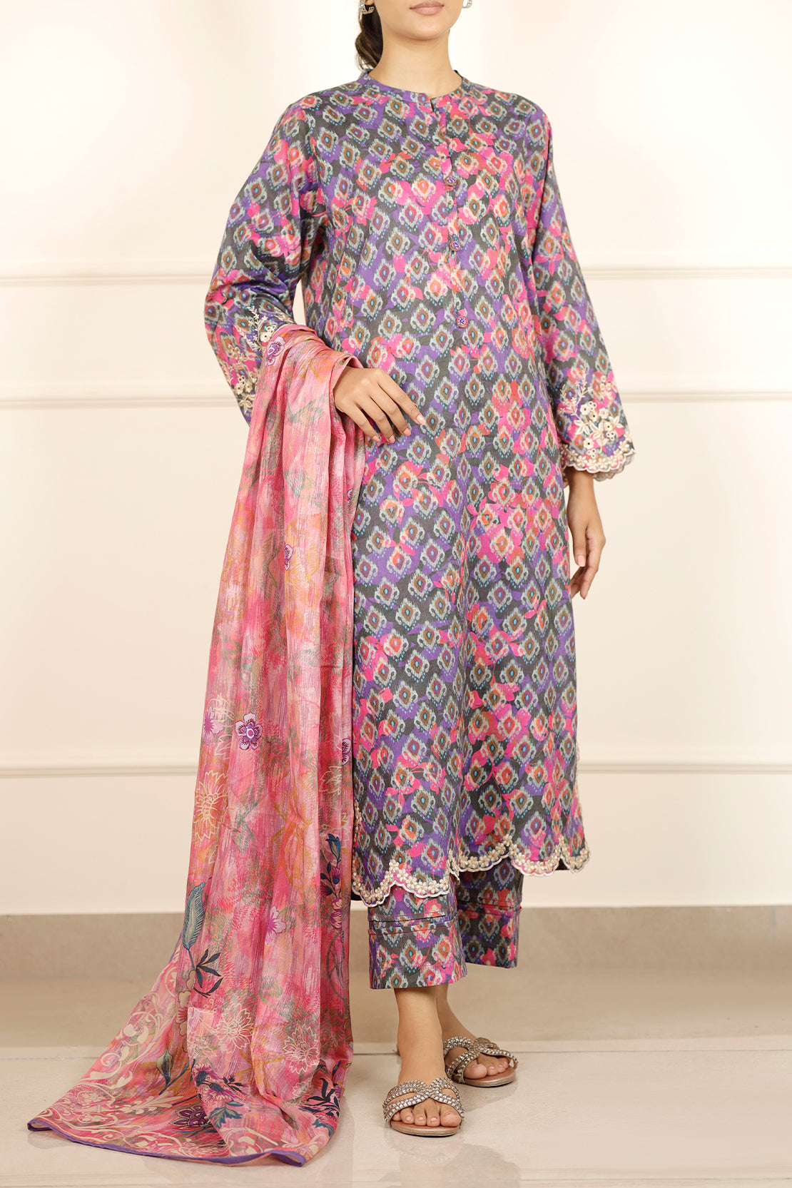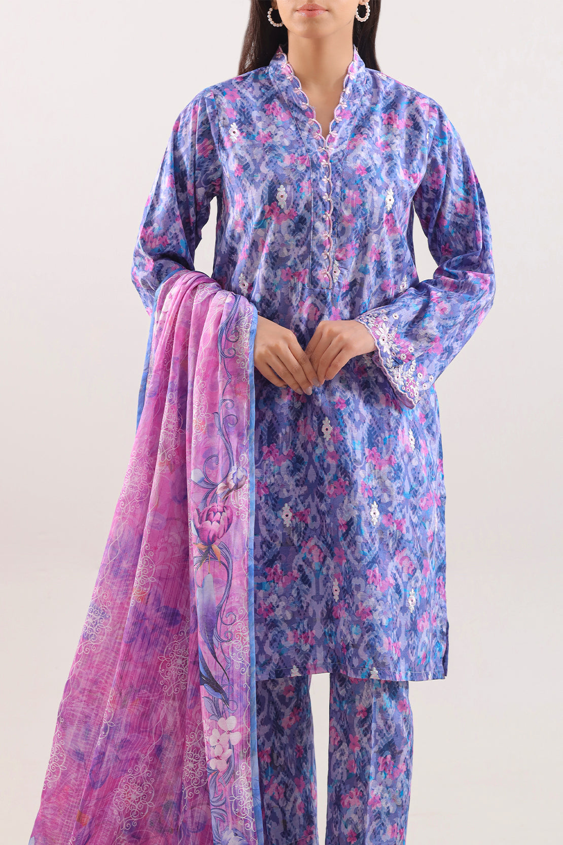 Printed Embroidered Cotton Jacquard Stitched 3 Piece