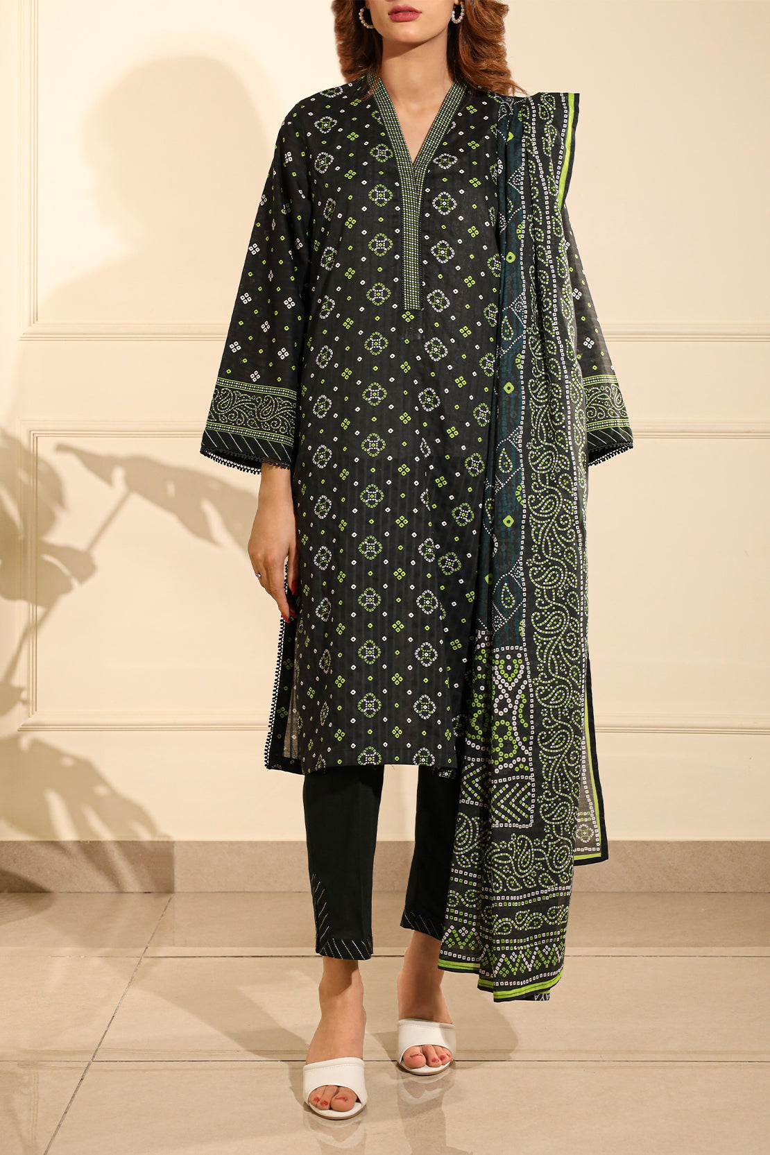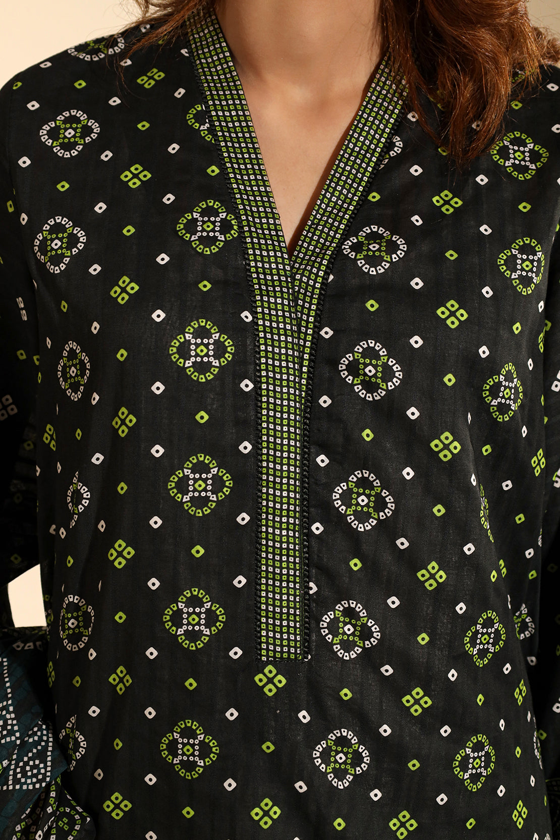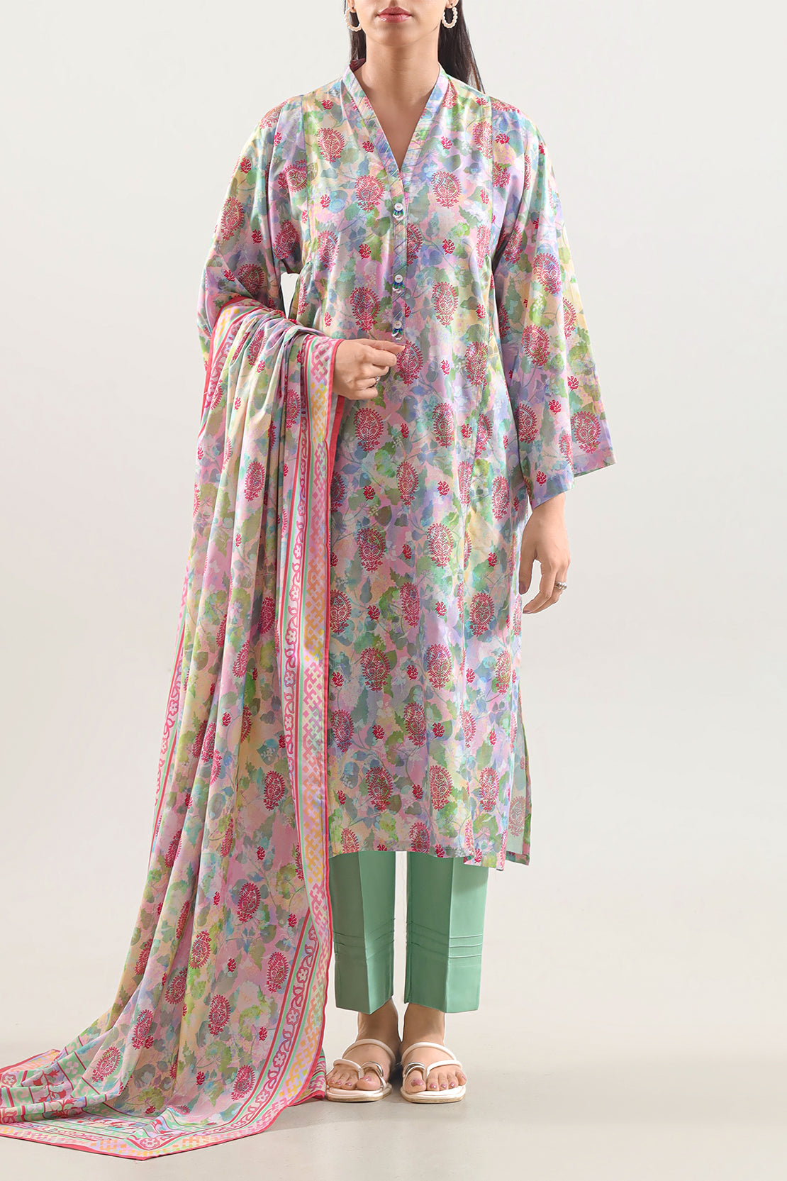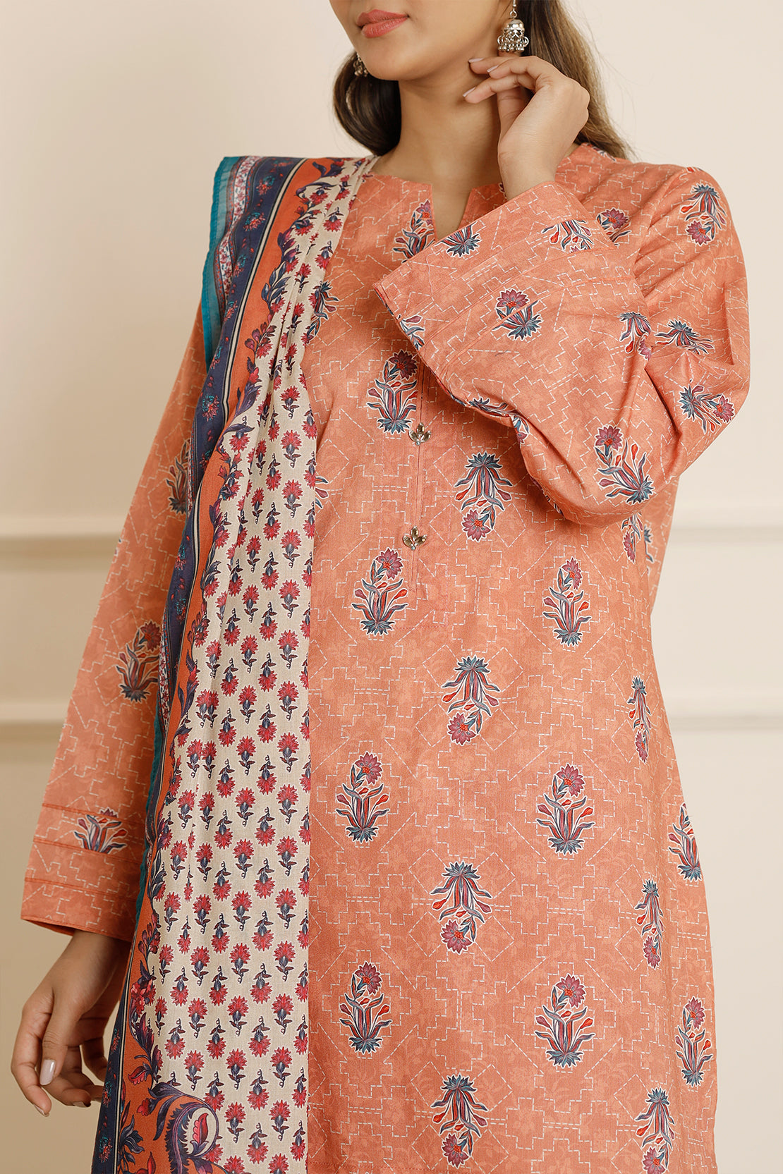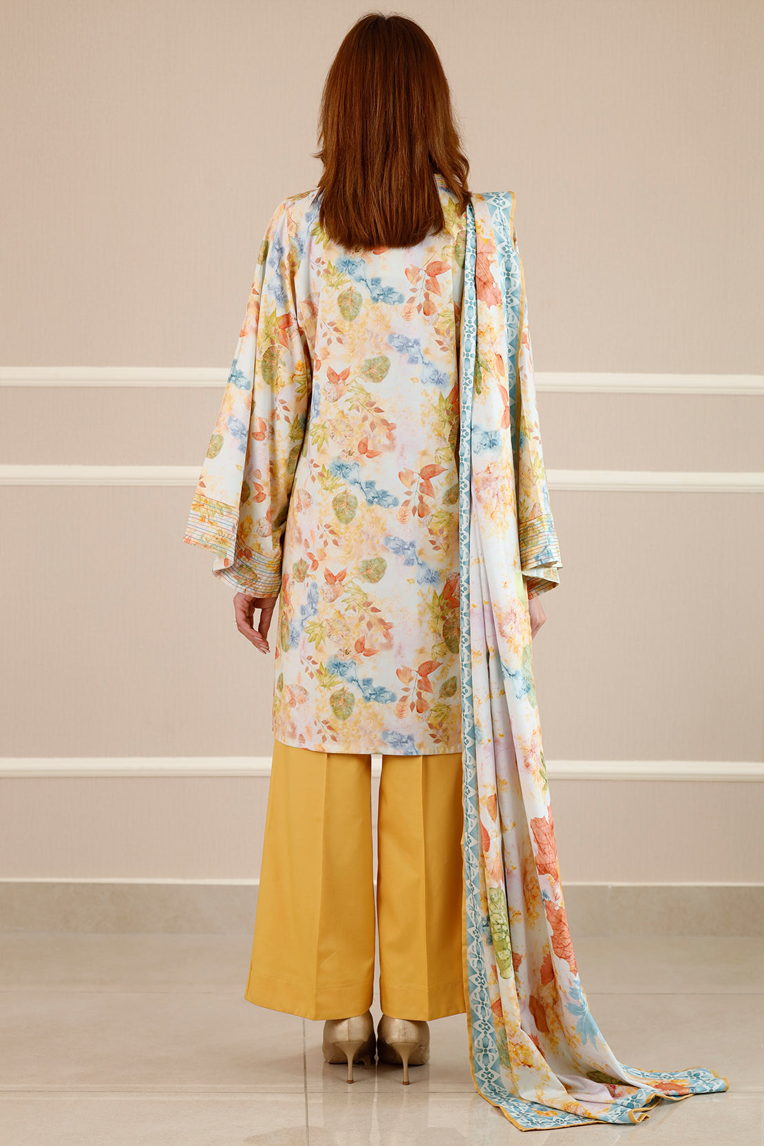 Printed Embroidered Cotton Jacquard Stitched 3 Piece