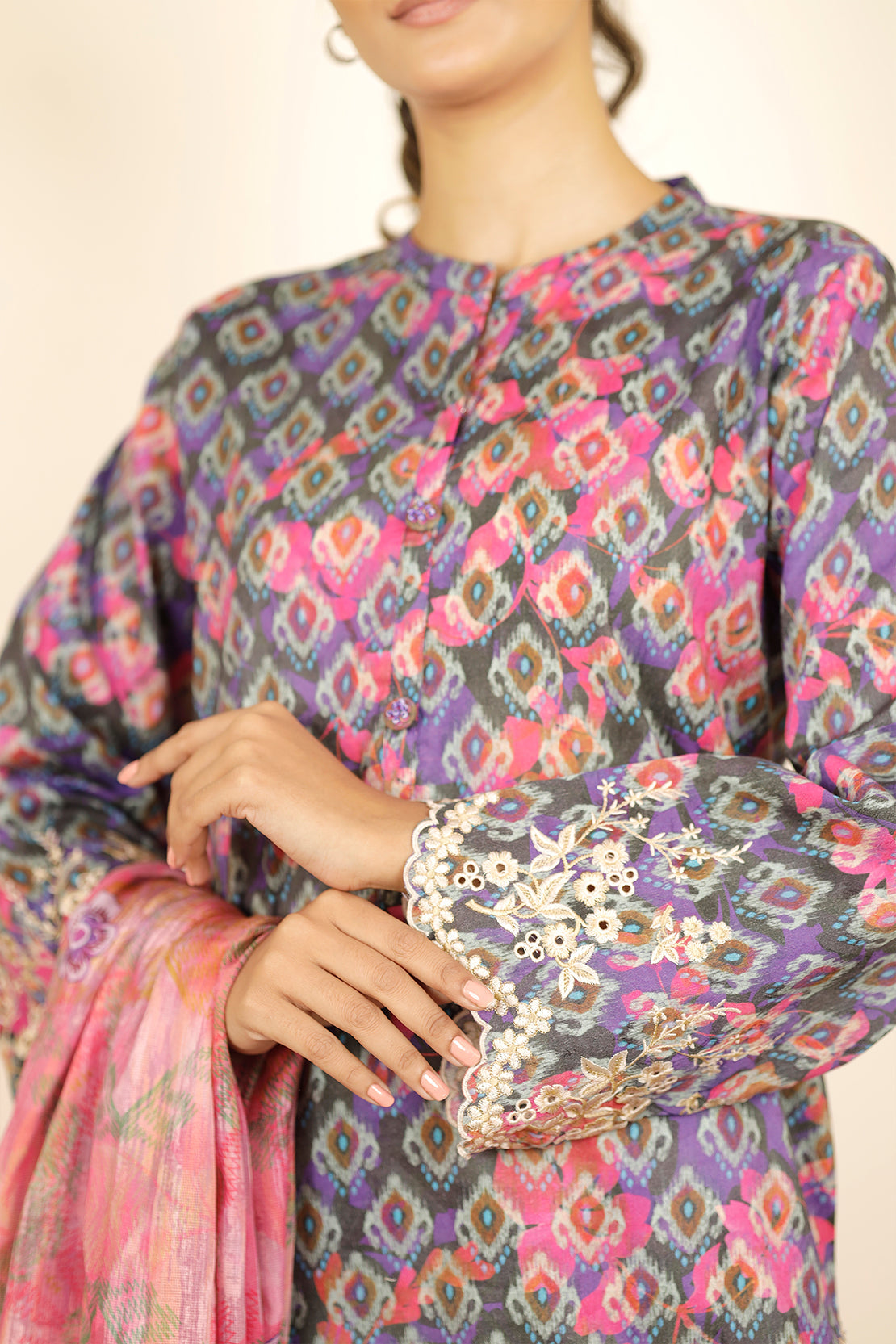 Printed Embroidered Cotton Viscose Stitched 3 Piece