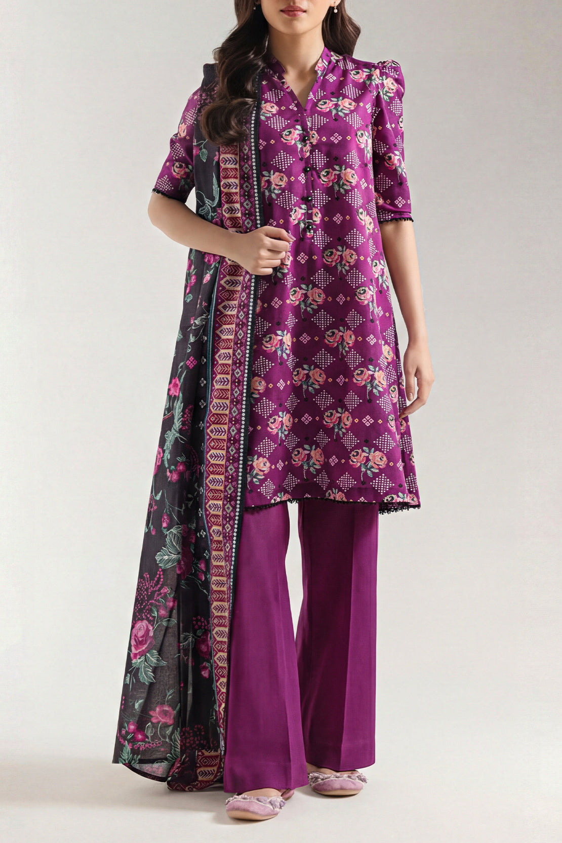 SAYA Unstitched Printed Lawn 2-Piece Shirt & Dupatta is designed for effortless summer styling with a fresh and elegant look. Crafted from lightweight lawn fabric, this unstitched set allows you to customize the fit and silhouette to your preference. The printed shirt is paired with a matching dupatta, creating a balanced and coordinated appearance. Ideal for everyday wear and casual outings, this 2-piece suit offers comfort with timeless appeal.