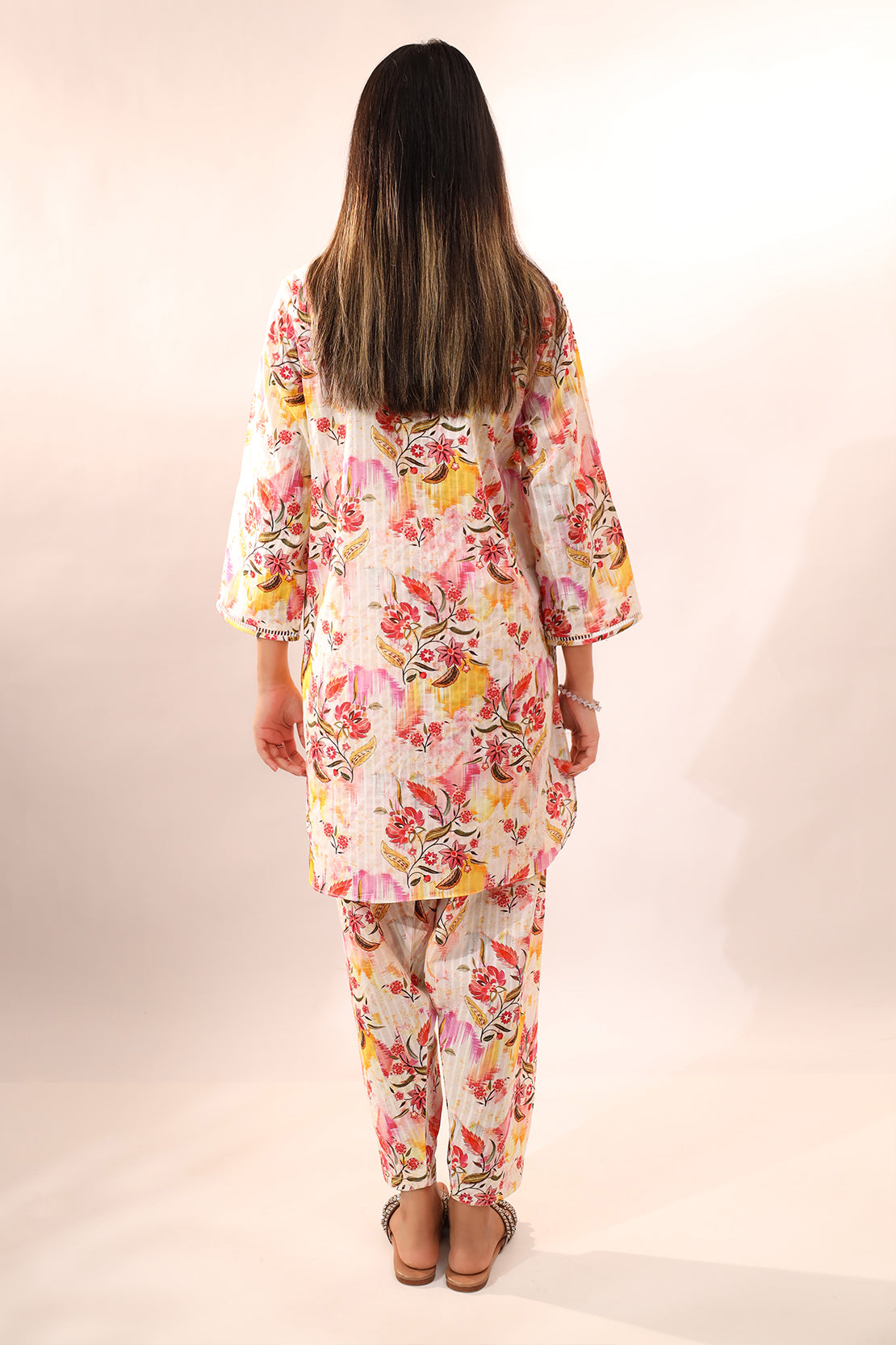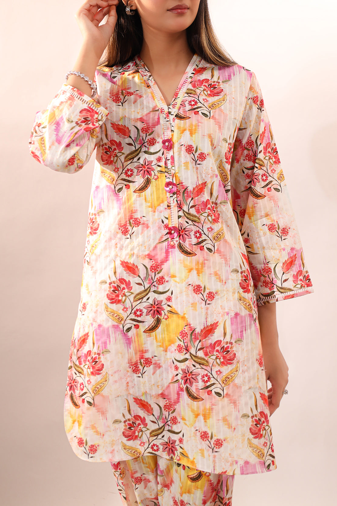 This unstitched printed lawn 2-piece from Saya.pk brings breathable comfort and versatile style to your summer wardrobe. Featuring a soft printed shirt and a coordinating trouser, it’s ideal for custom tailoring and casual everyday elegance.