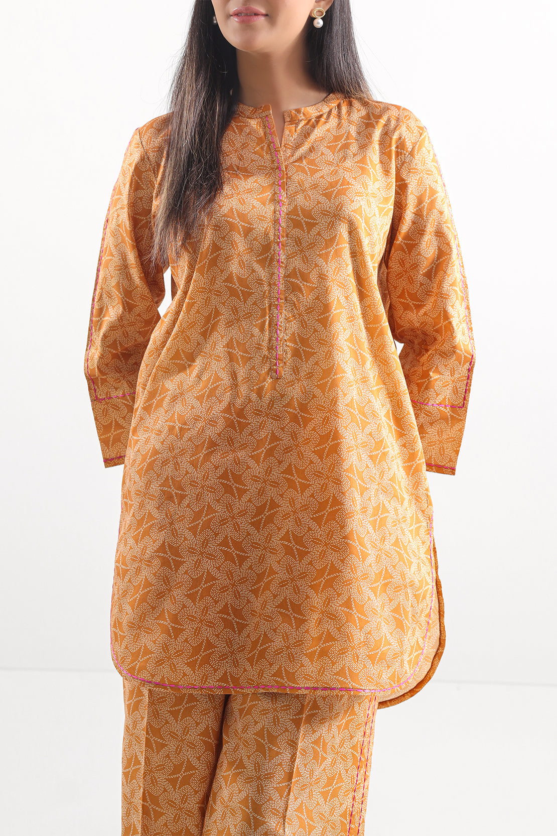 Elevate Your Everyday Style With This Unstitched Printed Lawn 2-Piece Shirt And Trouser Set By SAYA. Crafted From High-Quality Lawn Fabric, The Shirt Showcases A Striking Digital Print That Blends Vibrant Colors With Timeless Elegance. Paired With A Printed Cambric Trouser, This Ensemble Offers A Perfect Balance Of Breathability, Comfort, And Durability. Ideal For Daytime Wear, Office Outfits, Or Casual Gatherings, This Set Allows You To Create A Personalized Look That Reflects Effortless Grace And Modern Sophistication.