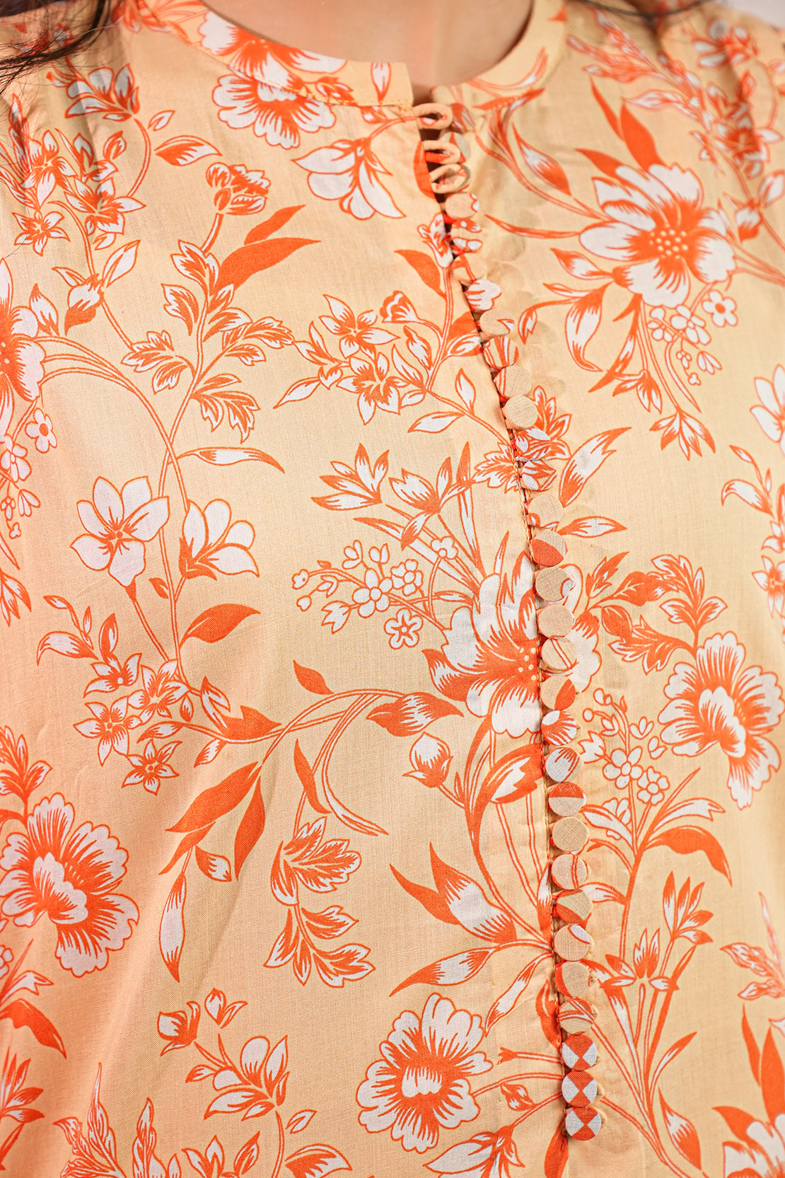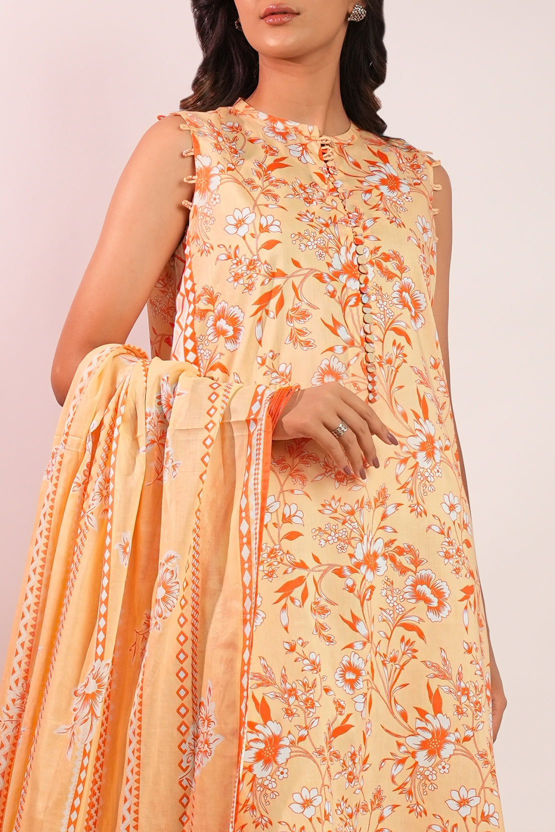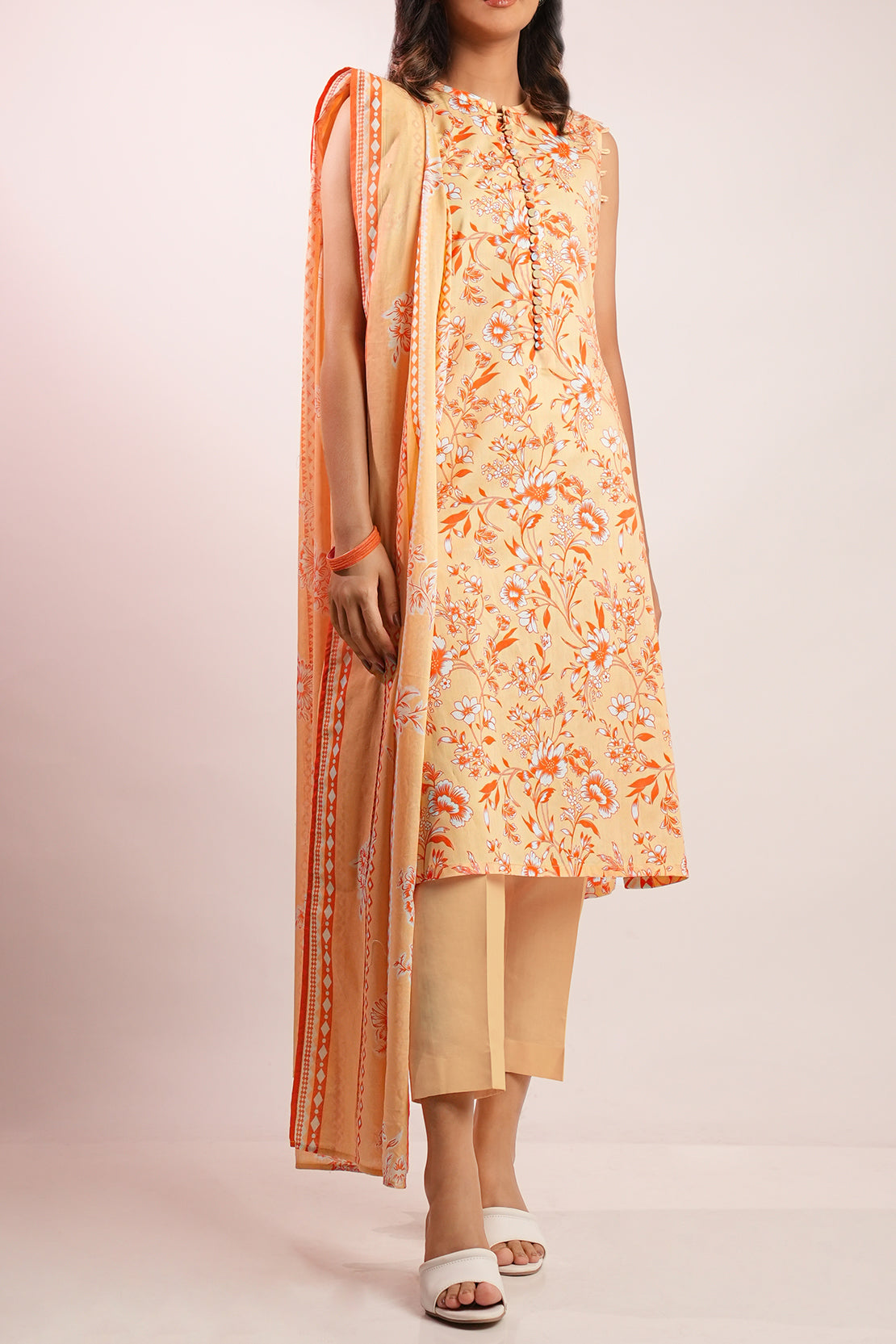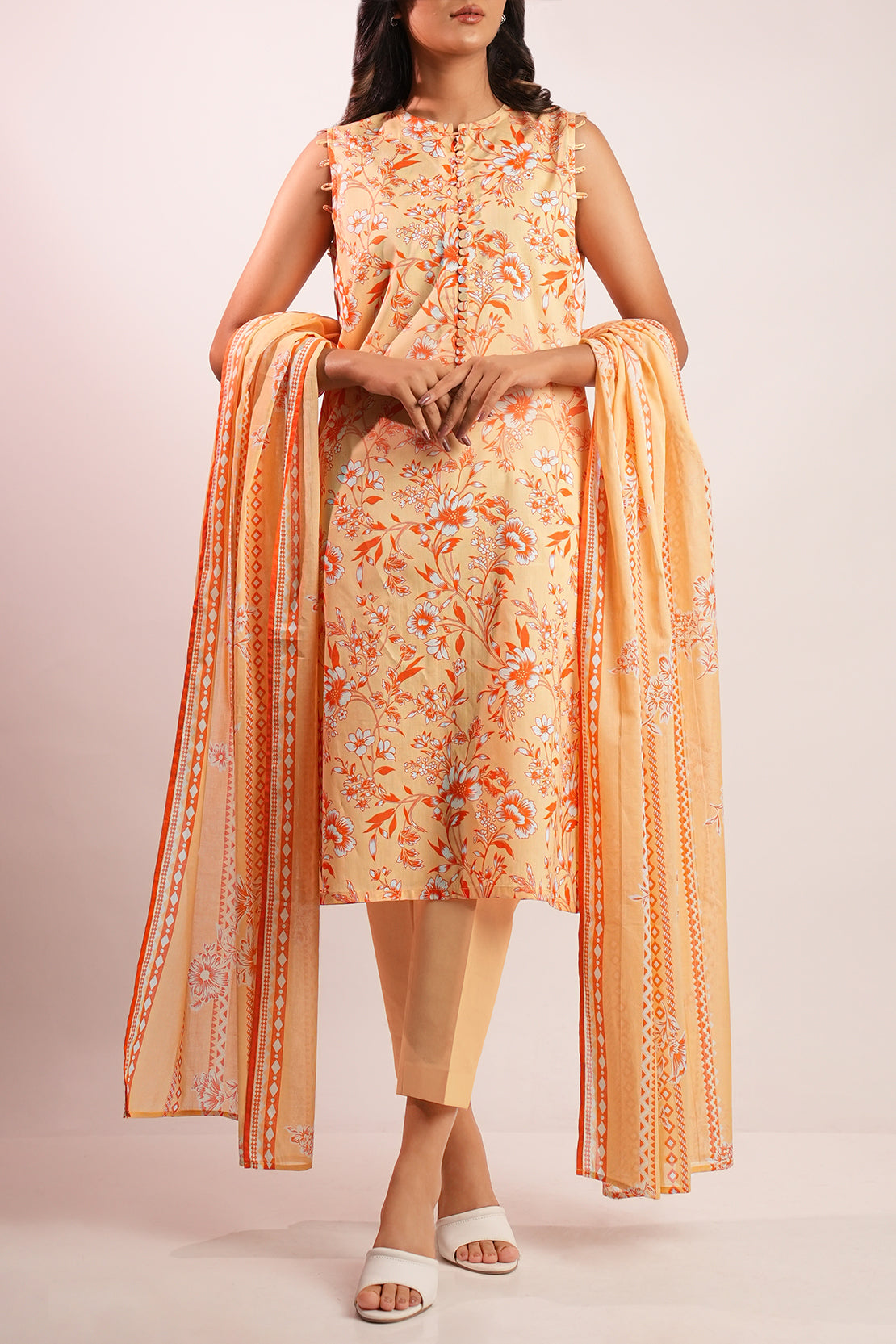 Elevate your summer wardrobe with Saya.pk's Unstitched Printed Lawn 3-Piece ensemble in a refreshing pastel orange hue. Crafted from premium lawn fabric, this set offers both comfort and versatility, making it ideal for casual outings and semi-formal gatherings. The ensemble features a digitally printed lawn shirt and dupatta paired with a dyed cambric trouser, allowing for personalized tailoring to suit your style.