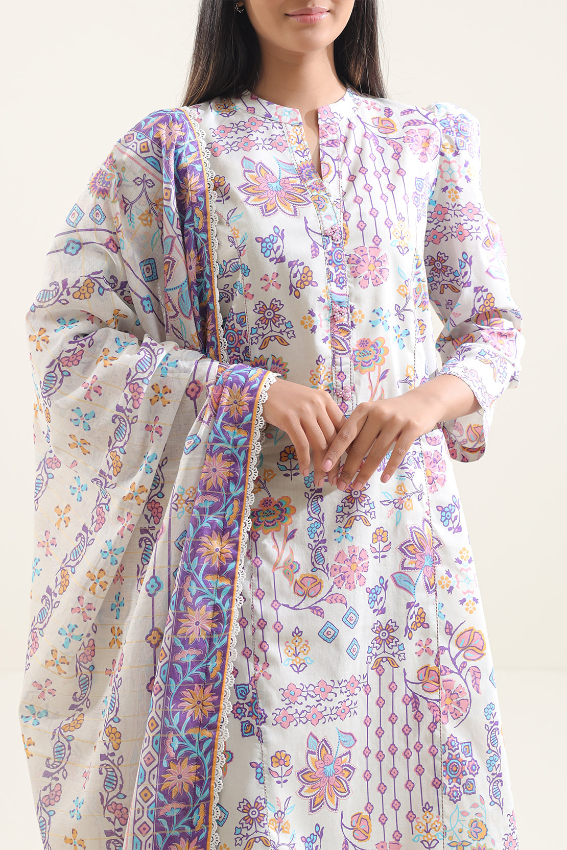 Effortless Elegance Meets Personalized Comfort In This SAYA Unstitched Printed Lawn 3‑Piece Set. Crafted From Premium Spray Lawn, The Shirt Fabric Features A Bold Seasonal Print And Lightweight Breathability. A Matching Lawn Dupatta Adds Graceful Fluidity, While The Dyed Trouser Material Offers Custom Fit Versatility. Ideal For Festive Events, Casual Summer Days, Or Tailored Everyday Wear With Stylish Ease.