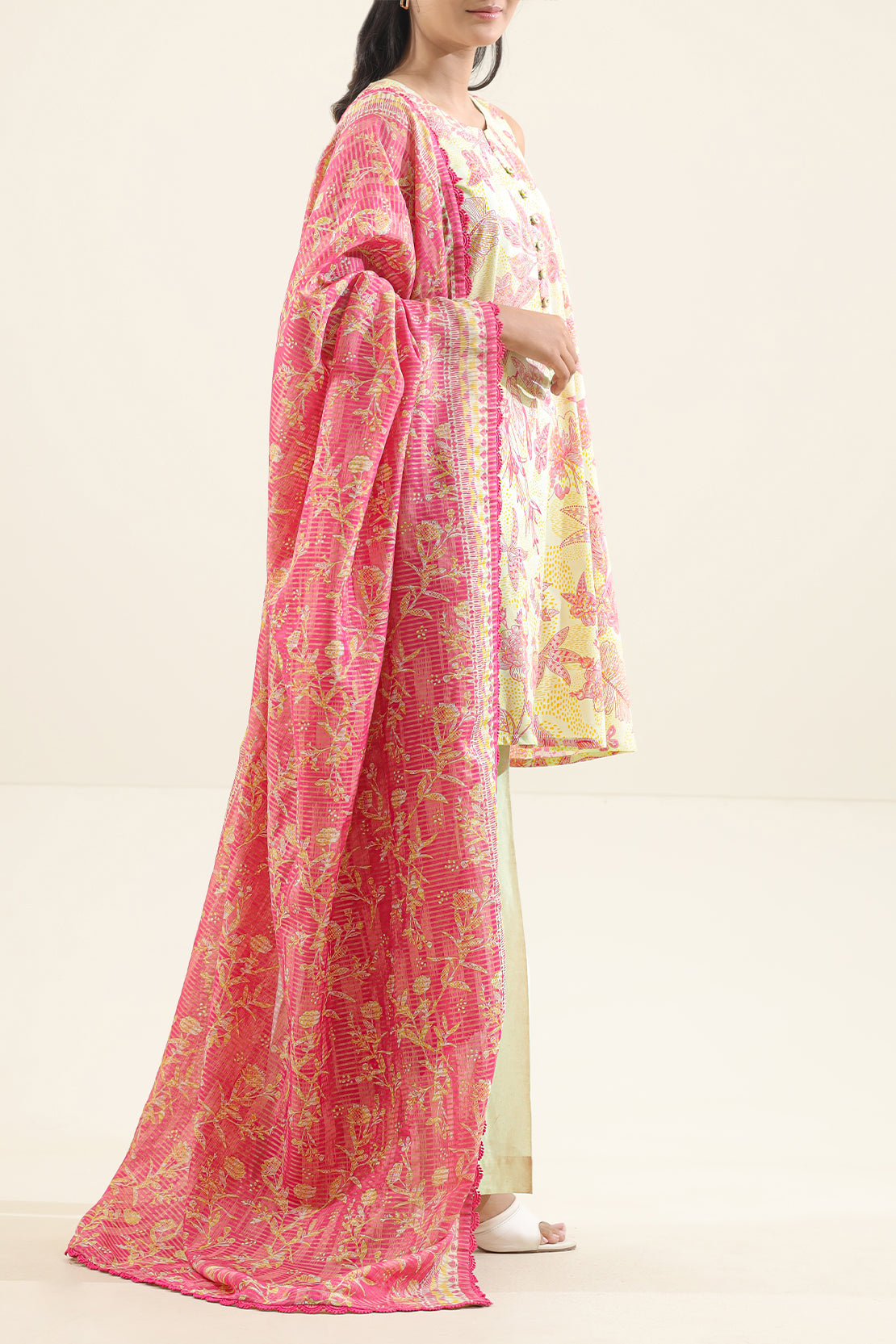 Refresh Your Summer Wardrobe With This SAYA Unstitched Printed Lawn 3‑Piece Set. Crafted From Premium Spray Lawn, The Shirt Features A Contemporary Seasonal Print That Radiates Elegance. It Comes With A Matching Printed Lawn Dupatta And A Dyed Trouser Fabric For Custom Stitching. Ideal For Everyday Style, Casual Outings, Or Festive Comfort With Personal Tailoring.