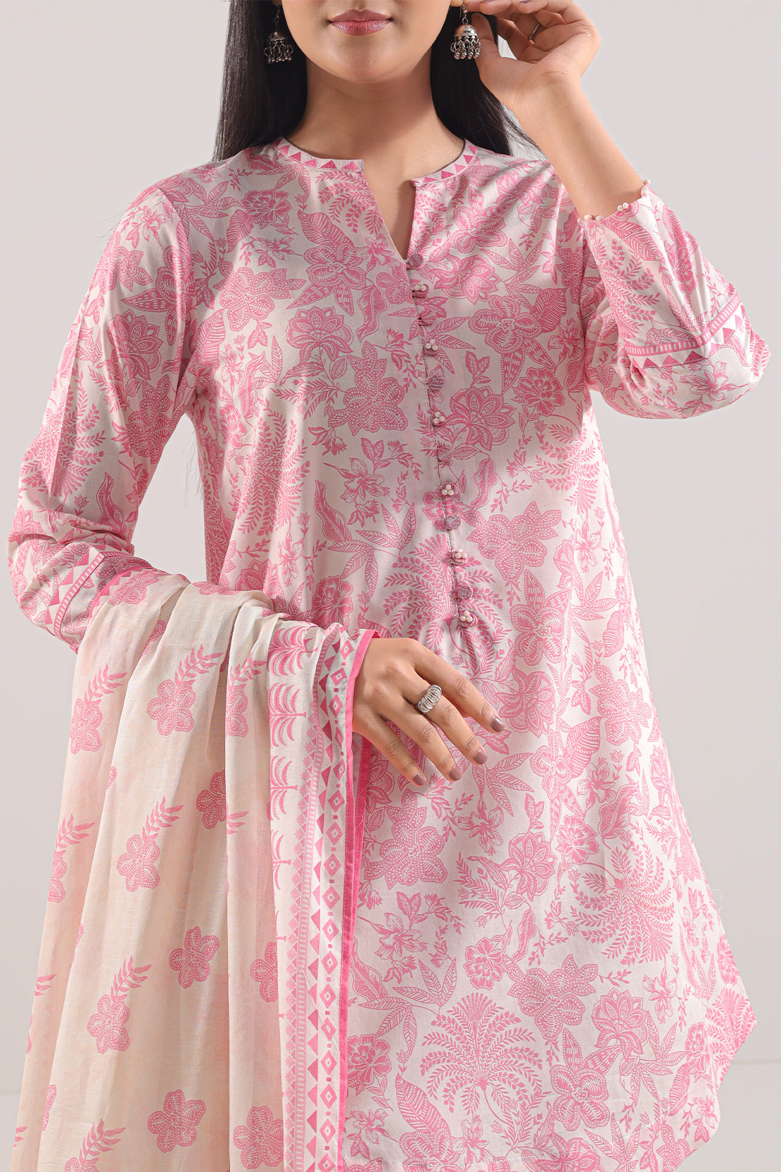 Elevate Your Summer Wardrobe With This Unstitched Printed Lawn 3-Piece By SAYA, Crafted From Ultra-Soft And Breathable Lawn Fabric That Ensures All-Day Comfort. The Shirt Features A Generously Sized Panel For Tailoring Flexibility, Accompanied By A Gracefully Printed Lawn Dupatta That Adds Fluid Drapability. Completed With A Dyed Cambric Trouser Panel That Offers Structure And Ease, This Ensemble Is Ideal For Daytime Styling, Light Festive Wear, Or Personalized Stitching That Effortlessly Blends Seasonal Comfort With Refined Expression.