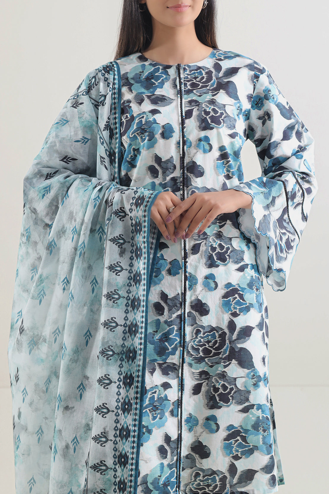 Elevate Your Summer Wardrobe With This Elegant Unstitched Printed Lawn 3-Piece By SAYA, Crafted From Soft And Breathable Lawn Fabric To Ensure All-Day Comfort. The Premium Printed Lawn Shirt Features A Generously Sized Panel Perfect For Tailored Precision. Complementing This Is A Graceful Printed Lawn Dupatta That Adds Fluidity And Movement To Your Look, While The Dyed Cambric Trouser Provides Structure And Versatile Styling Options. Rendered In A Refreshing Teal Tone, This Ensemble Is Tailoring-Ready And Ideal For Creating Casual Daywear, Refined Festive Pieces, Or Personalized Summer Ensembles That Seamlessly Blend Ease With Timeless Style.